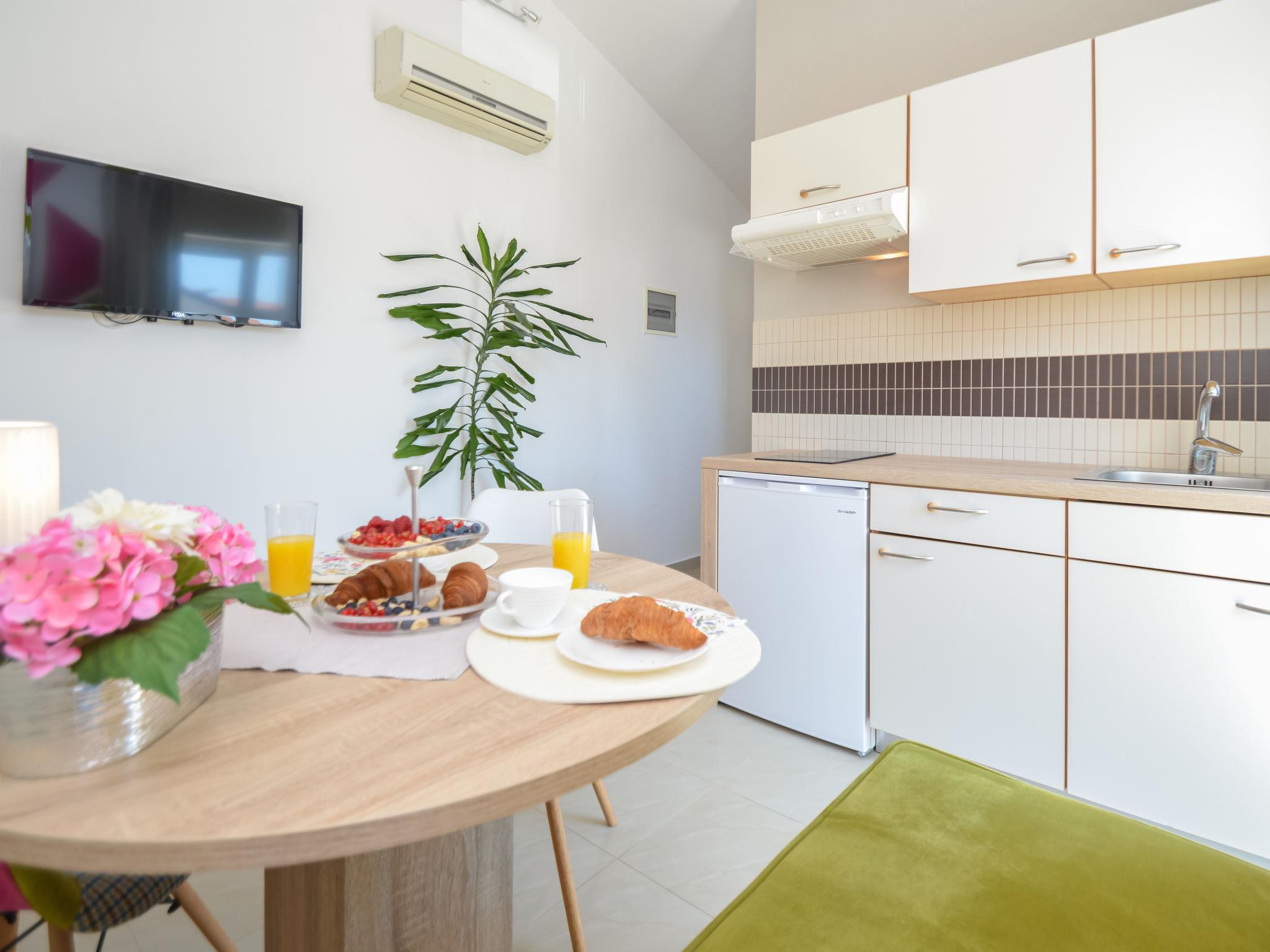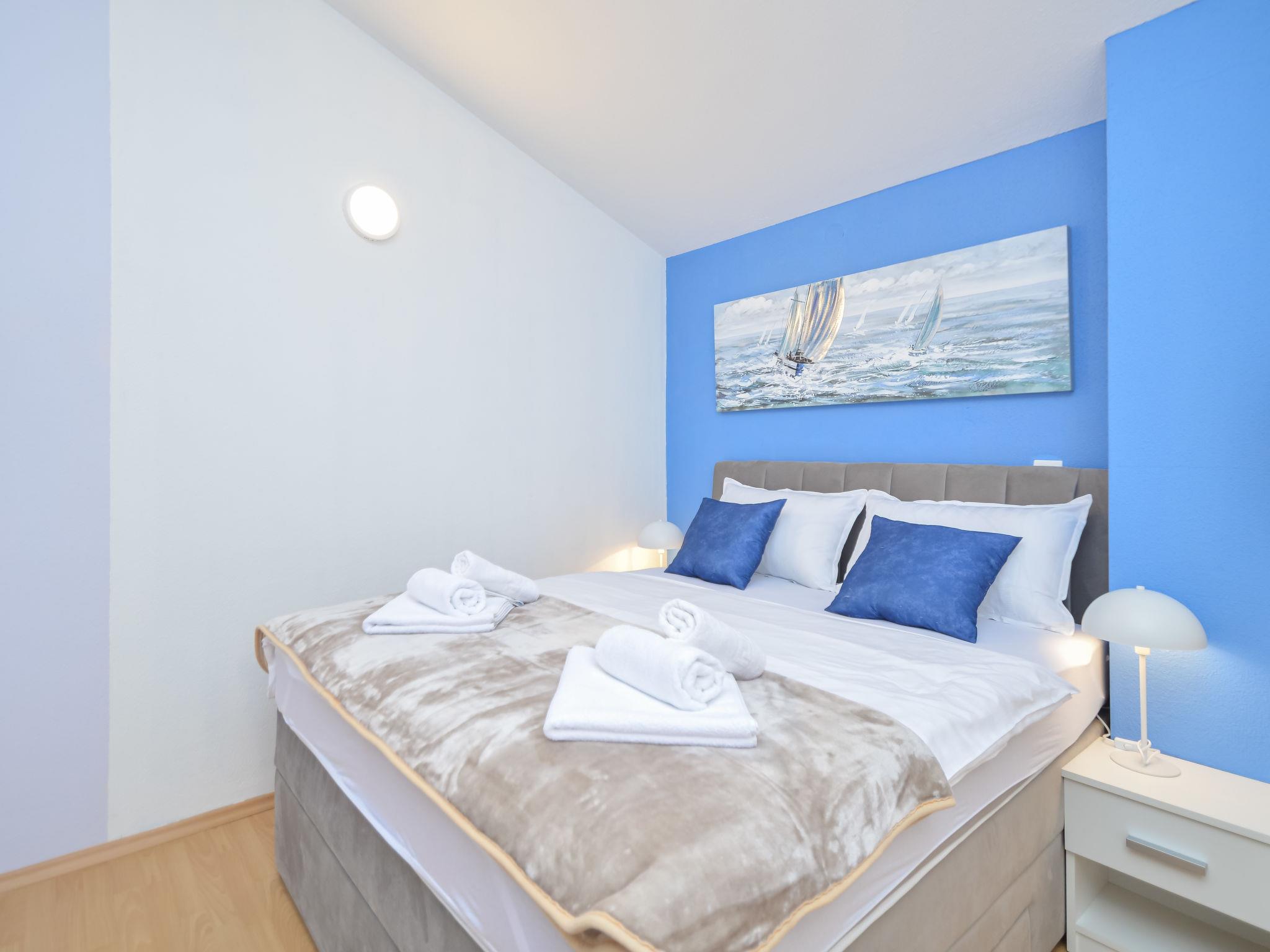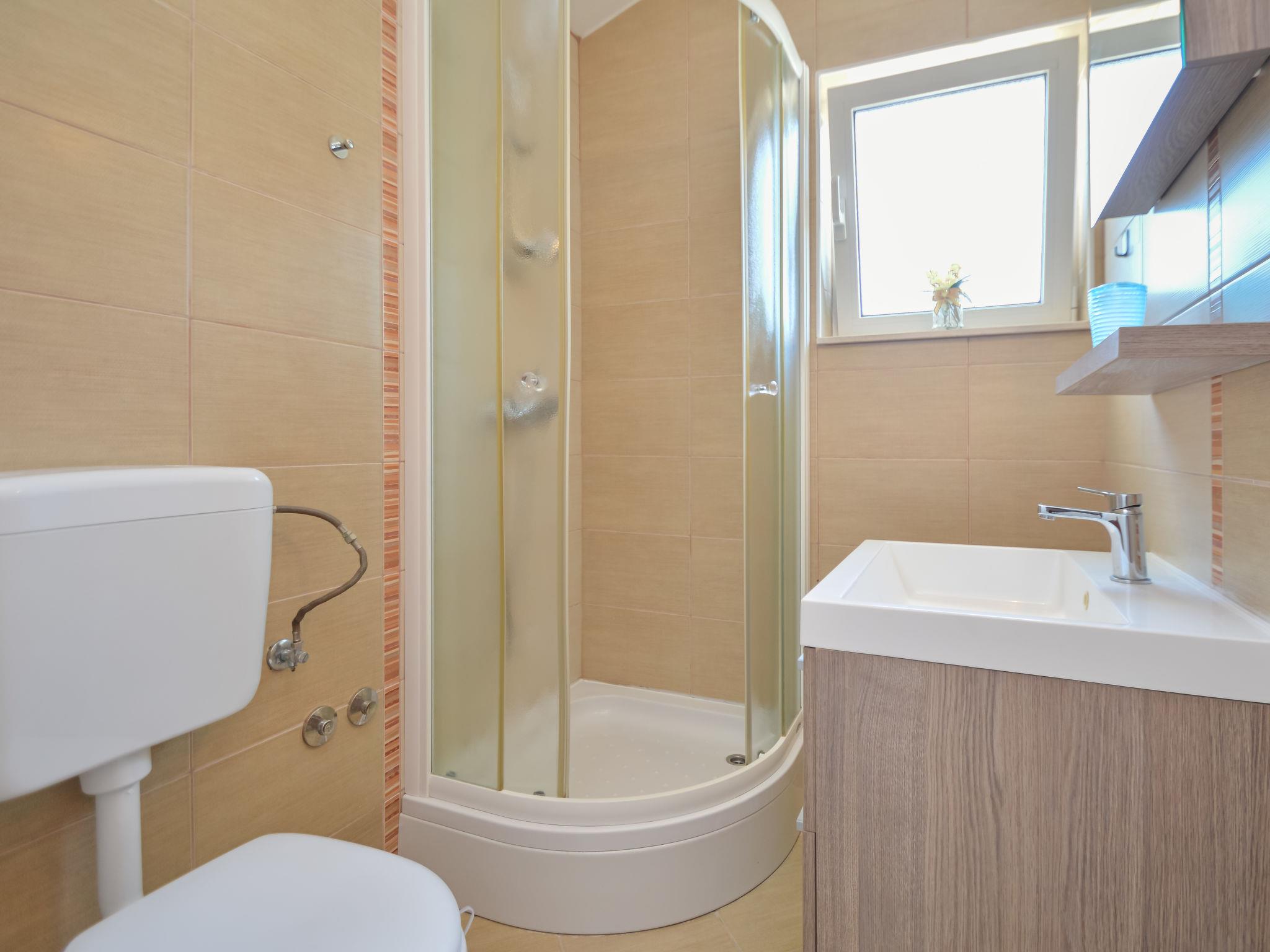 Tribunj 3 km from Vodice: Semi-detached house "Valdor", 2 storeys. In the hamlet Sovlje 1.5 km from the centre of Tribunj, in a quiet, sunny position, 500 m from the sea, 500 m from the beach, in a cul-de-sac. Private: property (fenced) with lawn, swimming pool round (5 m diameter, depth 110 cm, seasonal availability: 01.May. - 15.Oct.). Outdoor shower, terrace (12 m2), garden furniture, barbecue. In the house: internet access, washing machine. Parking at the house on the premises. Shop 1.5 km, restaurant 150 m, bus stop 4.8 km, pebble beach, rocky beach, concrete beach 500 m. The owner does not accept any youth groups. Neighbourhood highly sensitive to noise. Quietness and good behaviour expected. Concrete beach with showers in the bay of Sovlje, 500 m from the house.