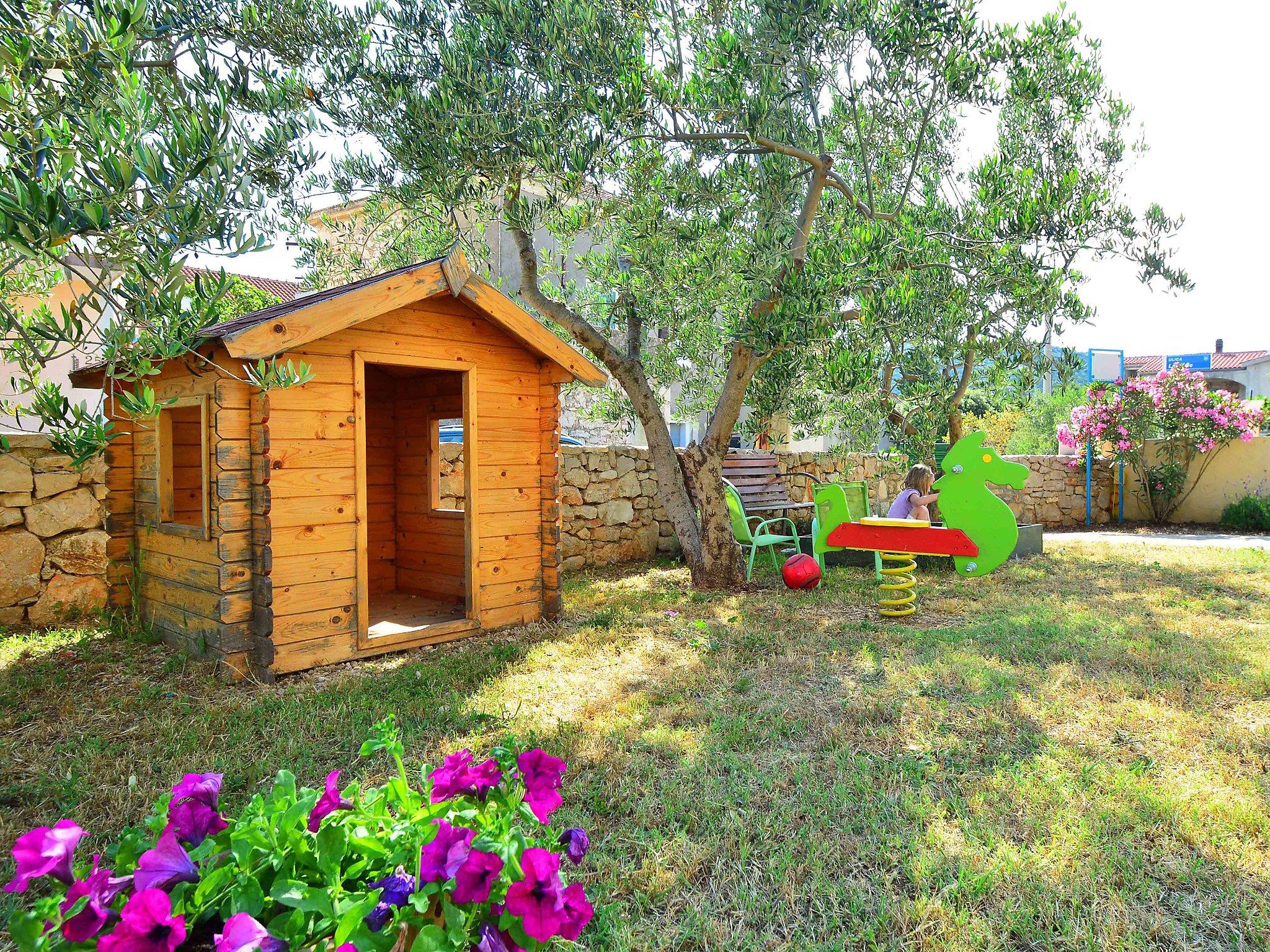Sovlje 5 km from Vodice: 3-family house "Cvita". In a quiet, sunny, elevated position, 300 m from the sea, 300 m from the beach. For shared use: property 680 m2 (fenced). Garden furniture, barbecue, children's playground (swing, sandbox). In the house: internet access. Parking at the house on the premises. Shop 1.5 km, restaurant, café 80 m, bus stop 4.9 km, pebble beach, concrete beach 300 m.