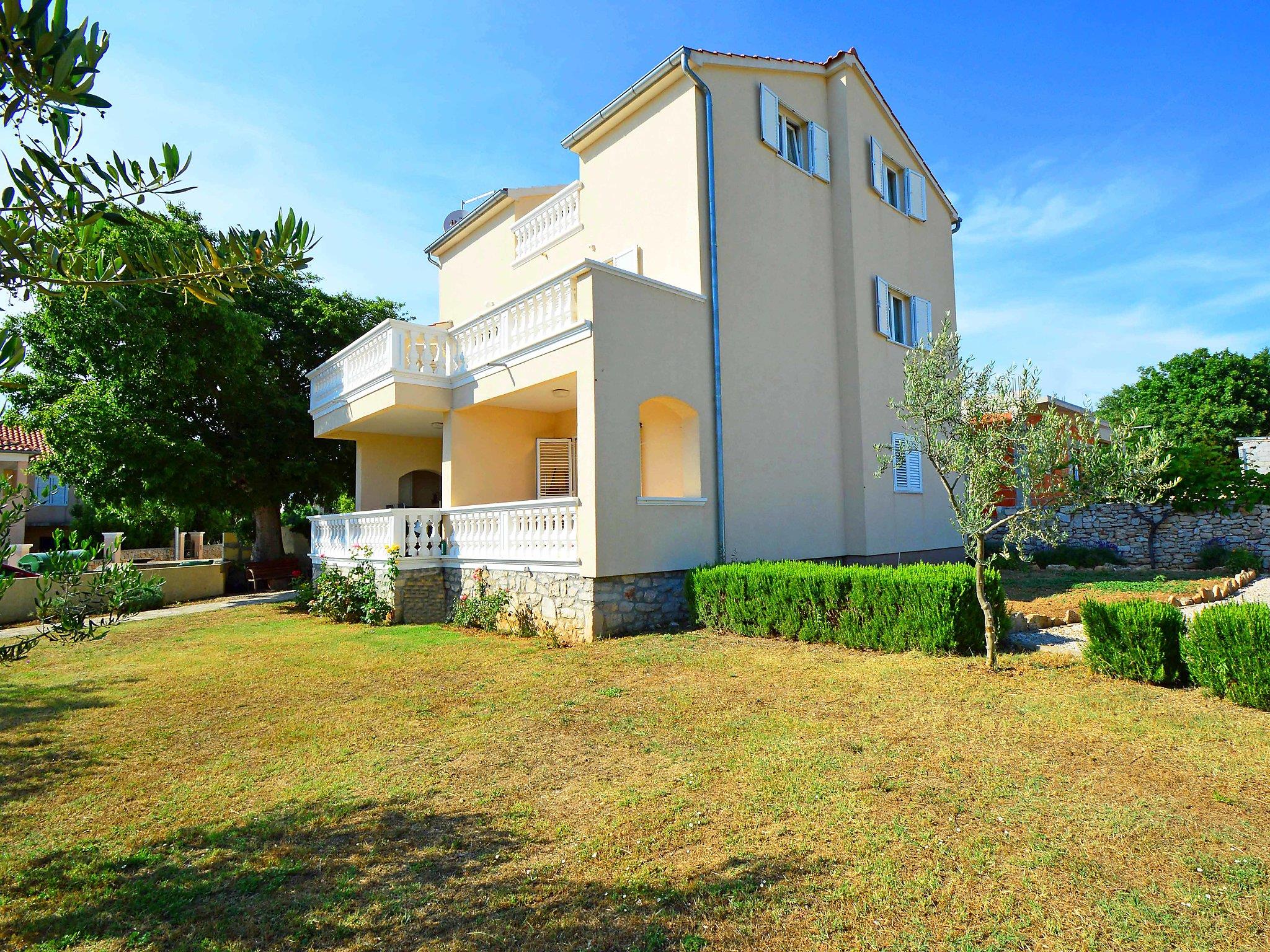 Sovlje 5 km from Vodice: 3-family house "Cvita". In a quiet, sunny, elevated position, 300 m from the sea, 300 m from the beach. For shared use: property 680 m2 (fenced). Garden furniture, barbecue, children's playground (swing, sandbox). In the house: internet access. Parking at the house on the premises. Shop 1.5 km, restaurant, café 80 m, bus stop 4.9 km, pebble beach, concrete beach 300 m.
