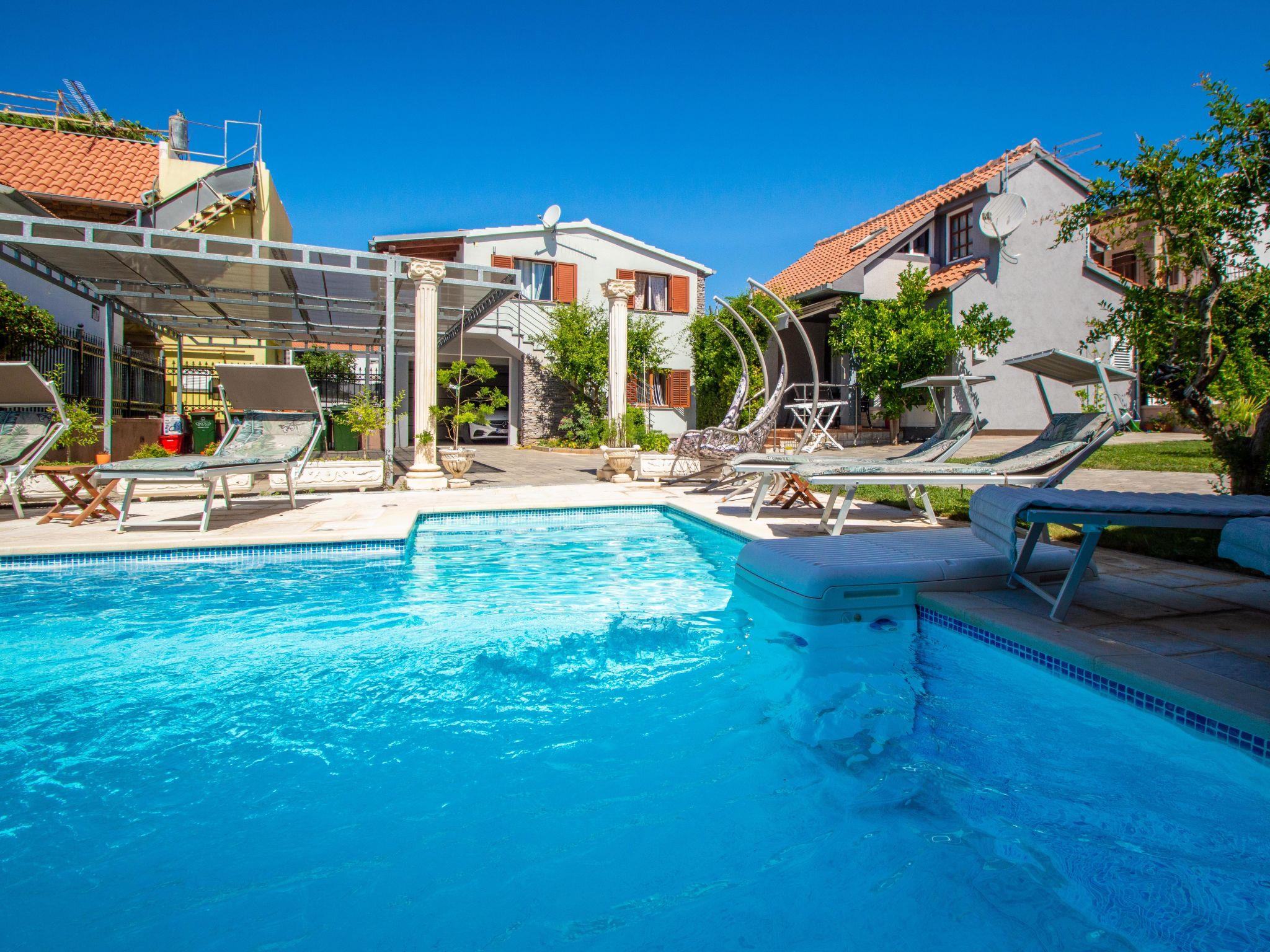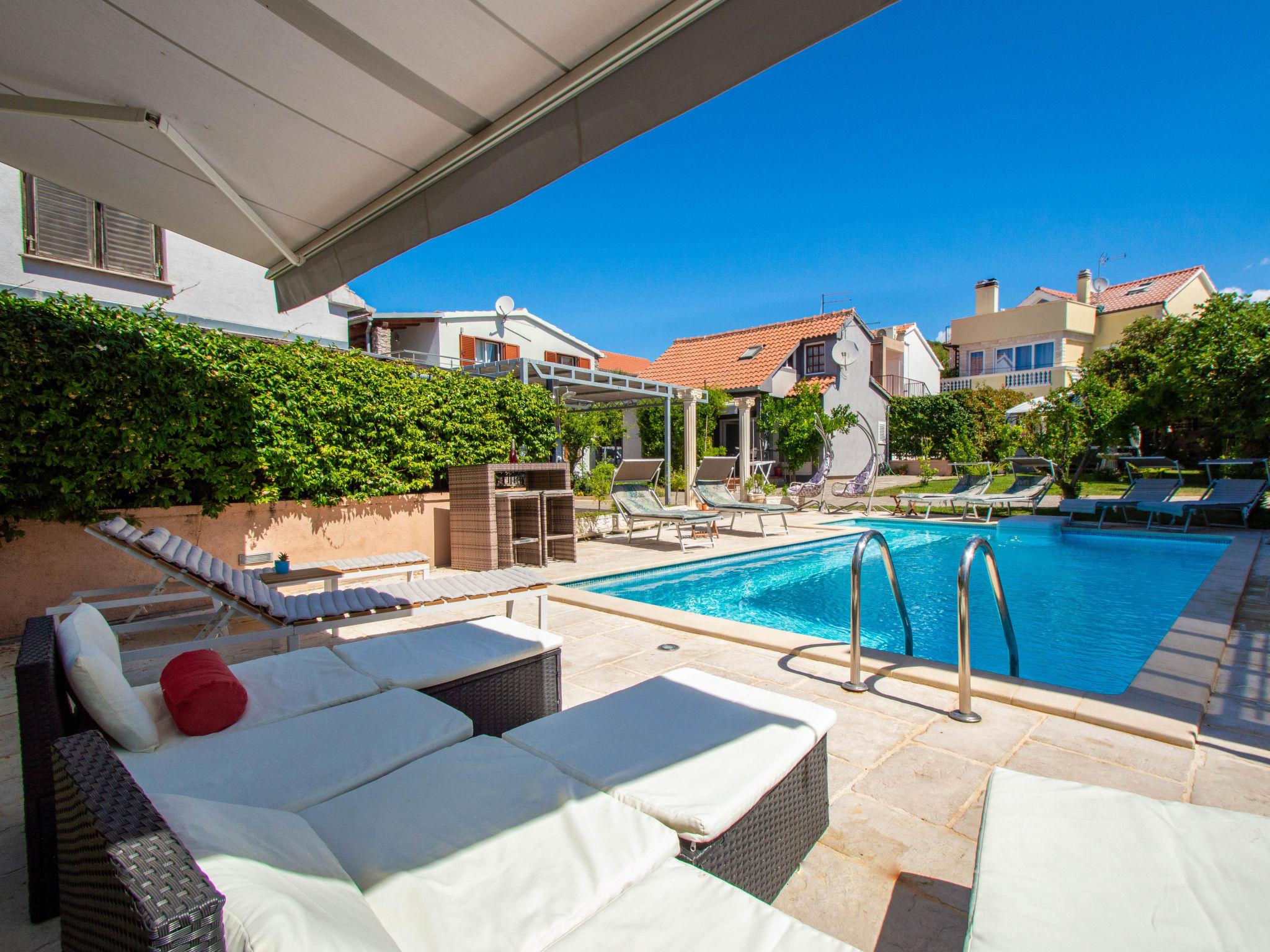 Tribunj 3 km from Vodice: 2-family house "Johanna". In a quiet, sunny position, 450 m from the sea, 550 m from the beach. For shared use: property 2'000 m2 (fenced), swimming pool angular (8 x 4 m, depth 130 - 160 cm, seasonal availability: 11.May. - 12.Oct.) with internal staircase. Outdoor shower, hot tub, tennis, basketball, barbecue. In the house: internet access. Airport transfer. Parking at the house on the premises. Shop 350 m, restaurant 400 m, bus stop 3.7 km, pebble beach 950 m, rocky beach, concrete beach 550 m. Marina 550 m. Nearby attractions: NP Krka 25 km. Please note: Property ref. HR4405.129,130 is situated on the same property. Swimming pool with hydromassage. Hot tub (extra). On the ground floor: passage for cars for the objects:HR4405.128, 129,130.