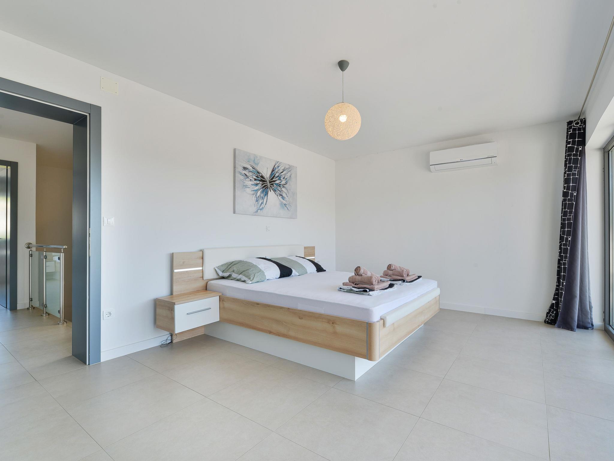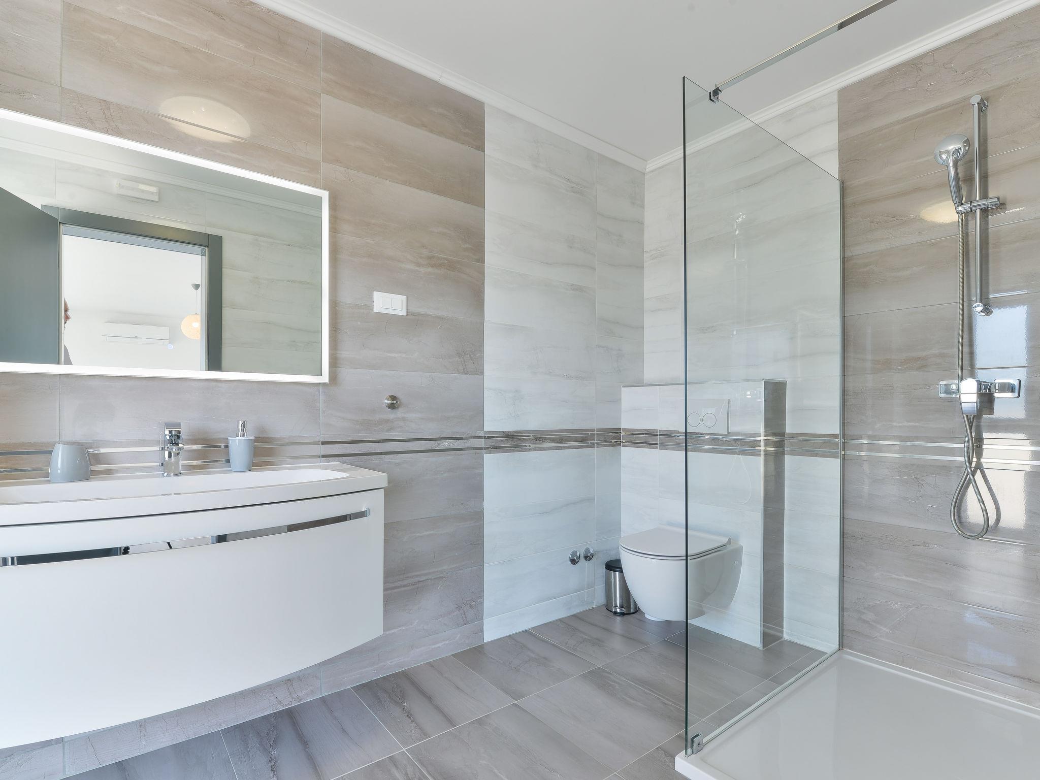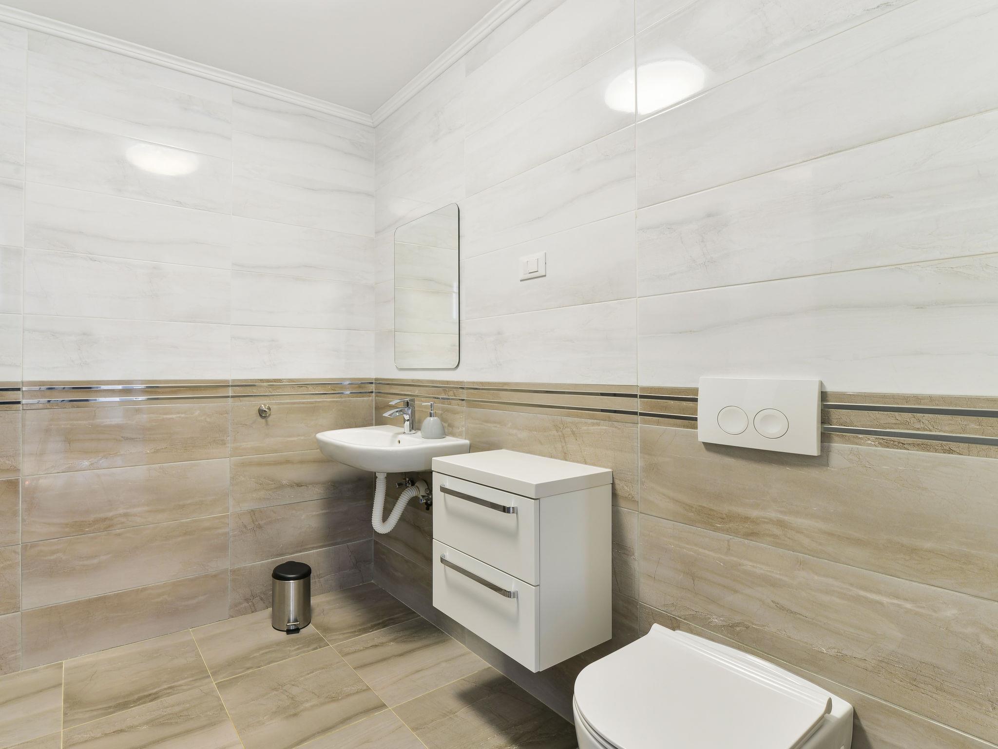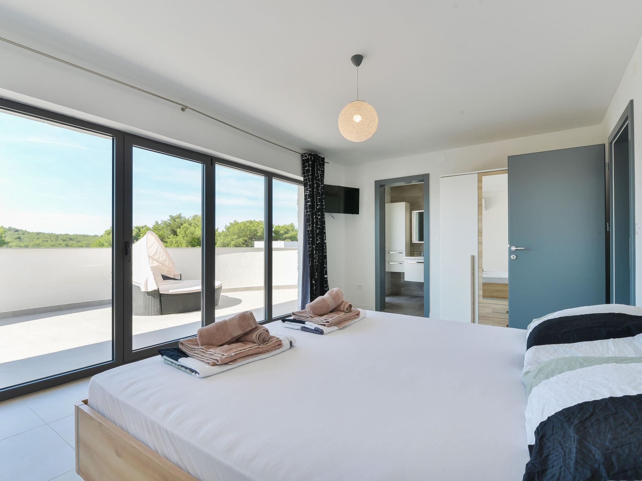 Tribunj 5 km from Vodice: Semi-detached house "East", 2 storeys, built in 2018. In the hamlet Sovlje 1.5 km from the centre of Tribunj, in a quiet, sunny position, 250 m from the sea, 450 m from the beach. For shared use: property 400 m2. Garden furniture, barbecue, children's playground (slide, swing). Private: swimming pool heated (20 m2, depth 150 cm, seasonal availability: 01.May. - 31.Oct.) with internal staircase. Unconventional pool shape. WC in the pool area, outdoor shower. In the house: internet access, washing machine, tumble dryer. Cook on request (extra). Parking (for 3 cars) at the house on the premises. Shop 1 km, restaurant 200 m, bus stop 5.2 km, pebble beach, concrete beach 450 m.