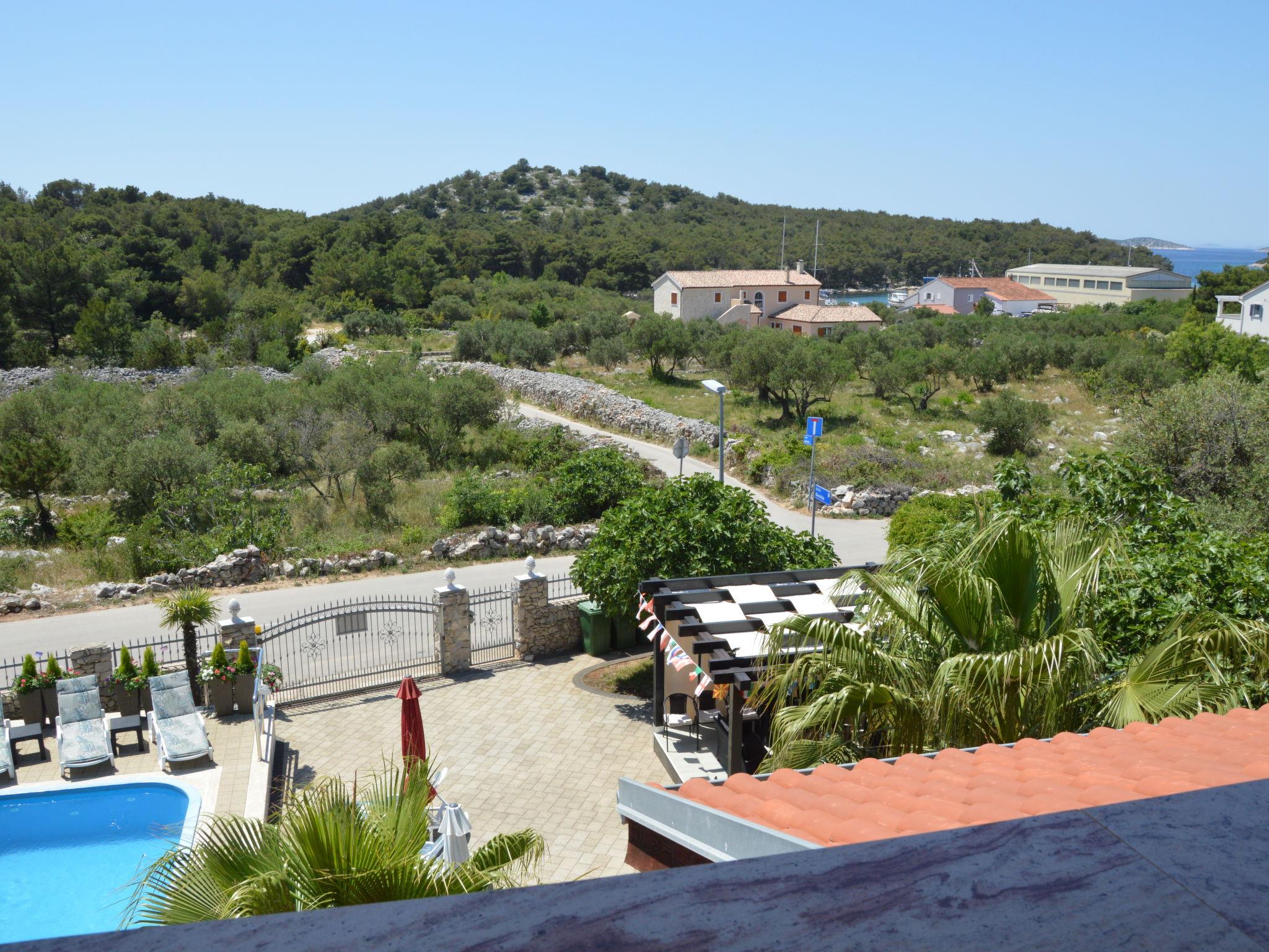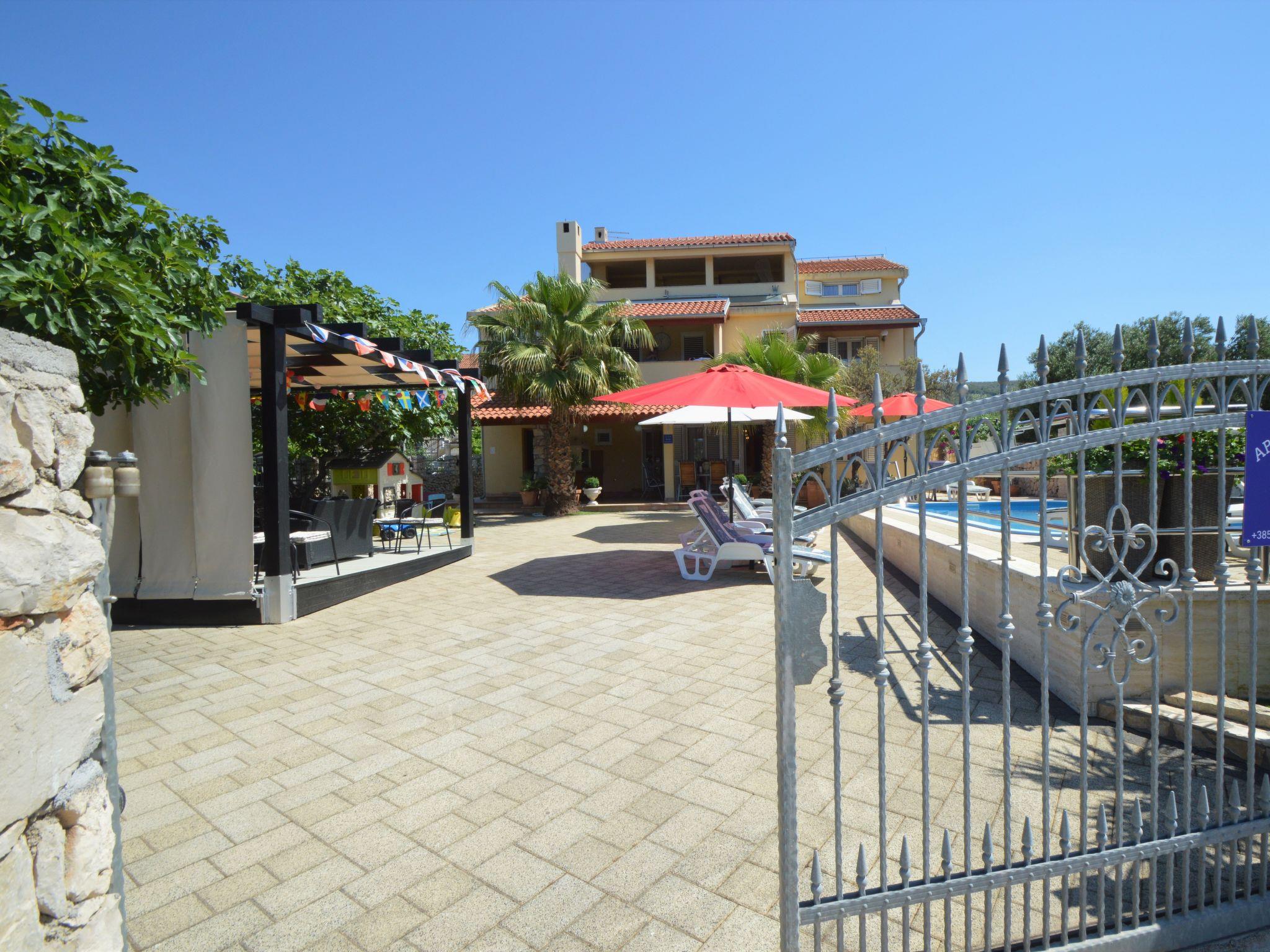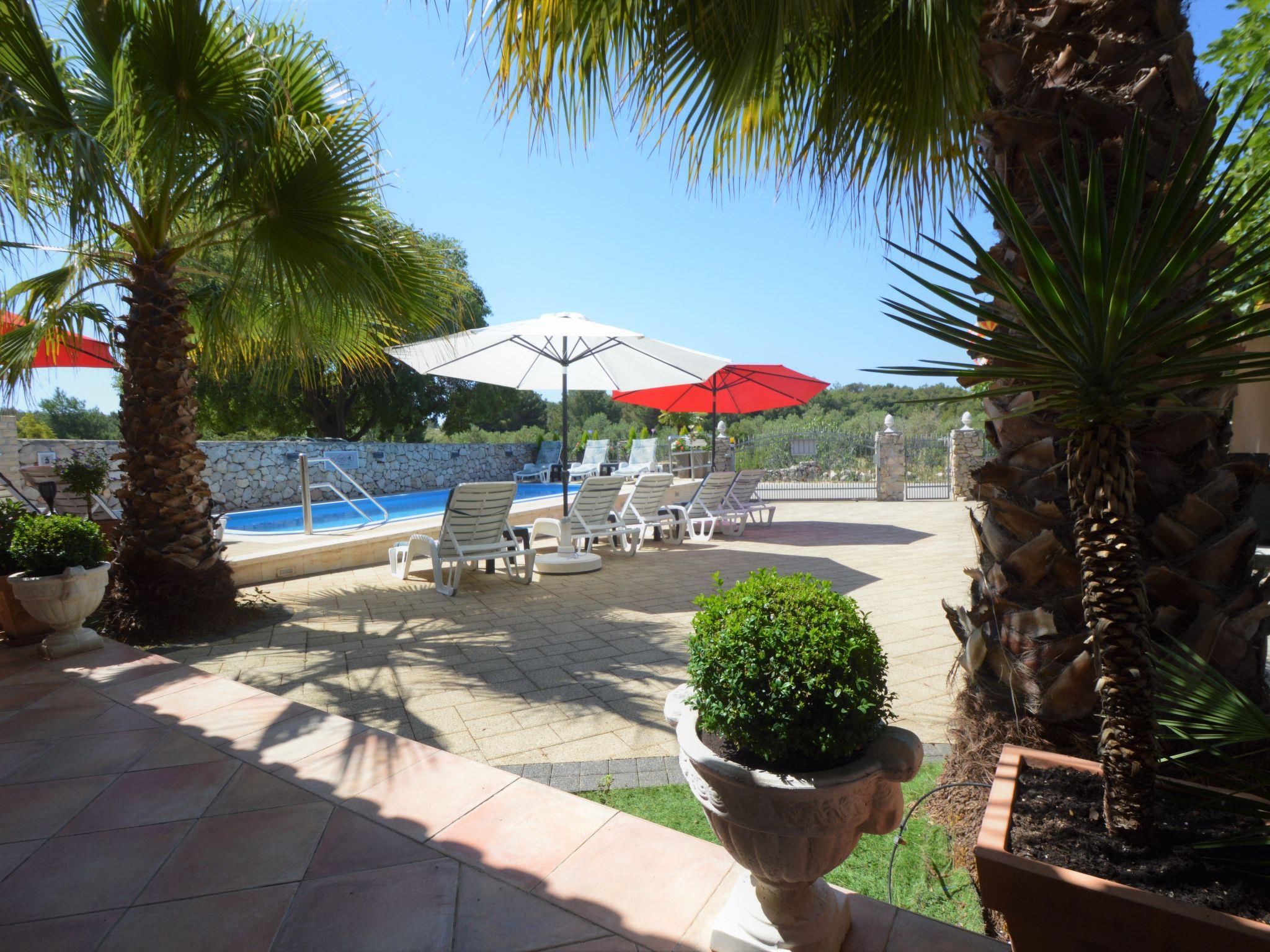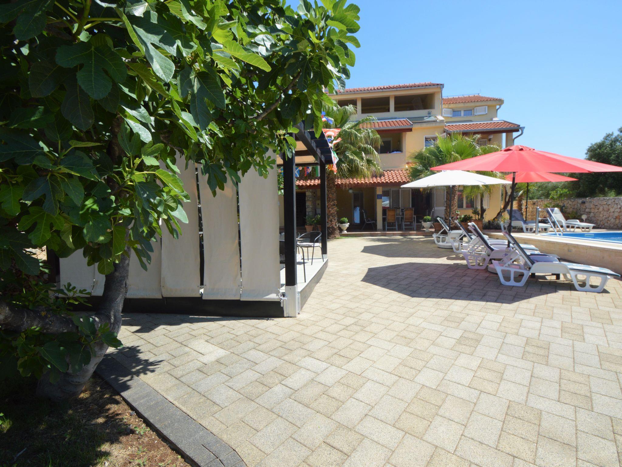 Tribunj 3 km from Vodice: Beautiful apartment house "Friedrich". In the hamlet Sovlje 1.5 km from the centre of Tribunj, in a quiet, sunny position, 250 m from the sea, 300 m from the beach. For shared use: well-kept garden (fenced), swimming pool (24 m2, depth 150 cm, seasonal availability: 01.May. - 22.Oct.) with internal staircase. Outdoor shower, arbour, garden furniture, children's playground. In the house: internet access, washing machine (for shared use, extra). Parking at the house. Shop 1.3 km, restaurant 350 m, bus stop 5.4 km, pebble beach 400 m, rocky beach 300 m, concrete beach 400 m. For shared use: deck chairs and parasols. Parking for trailer available.