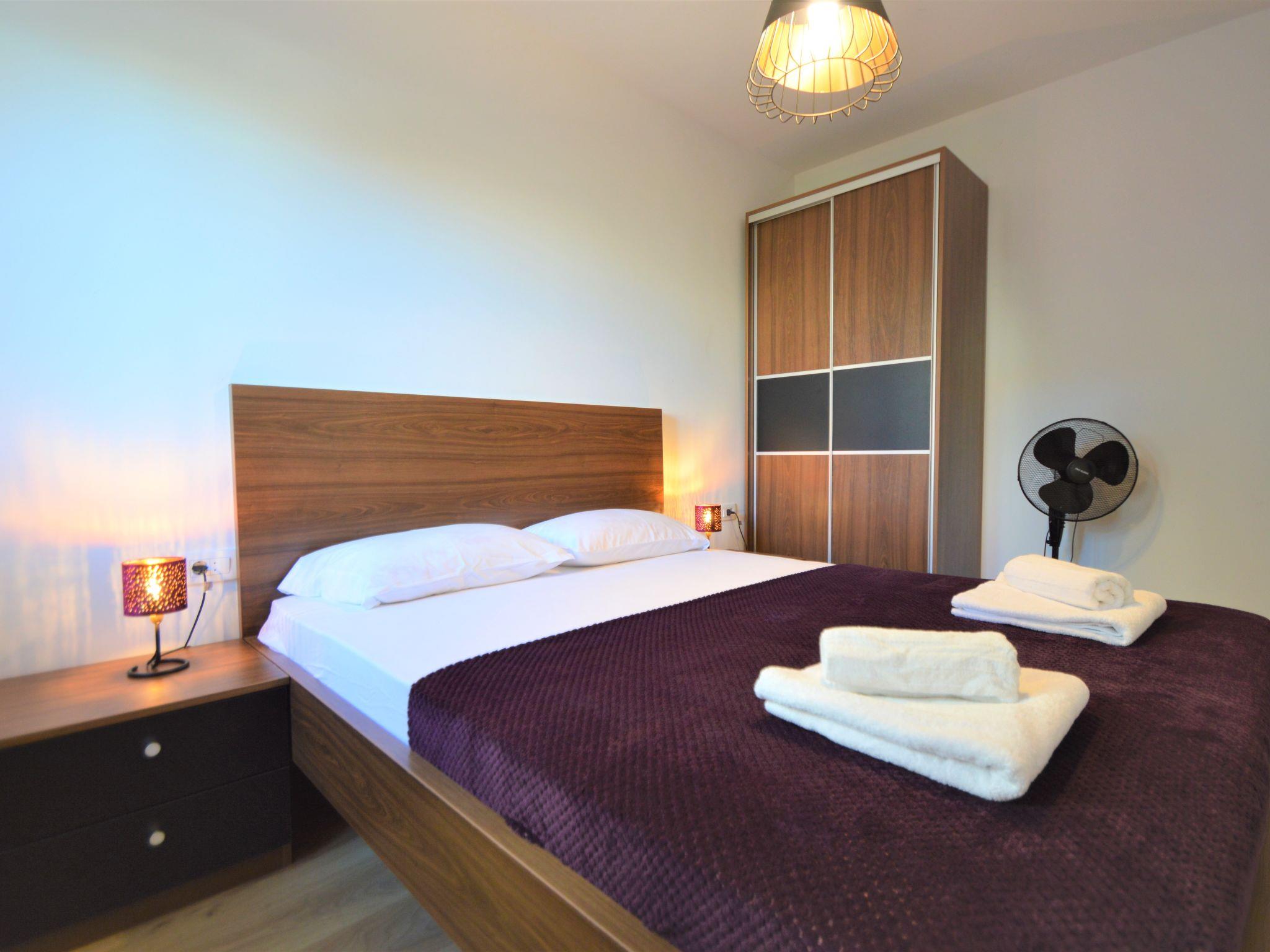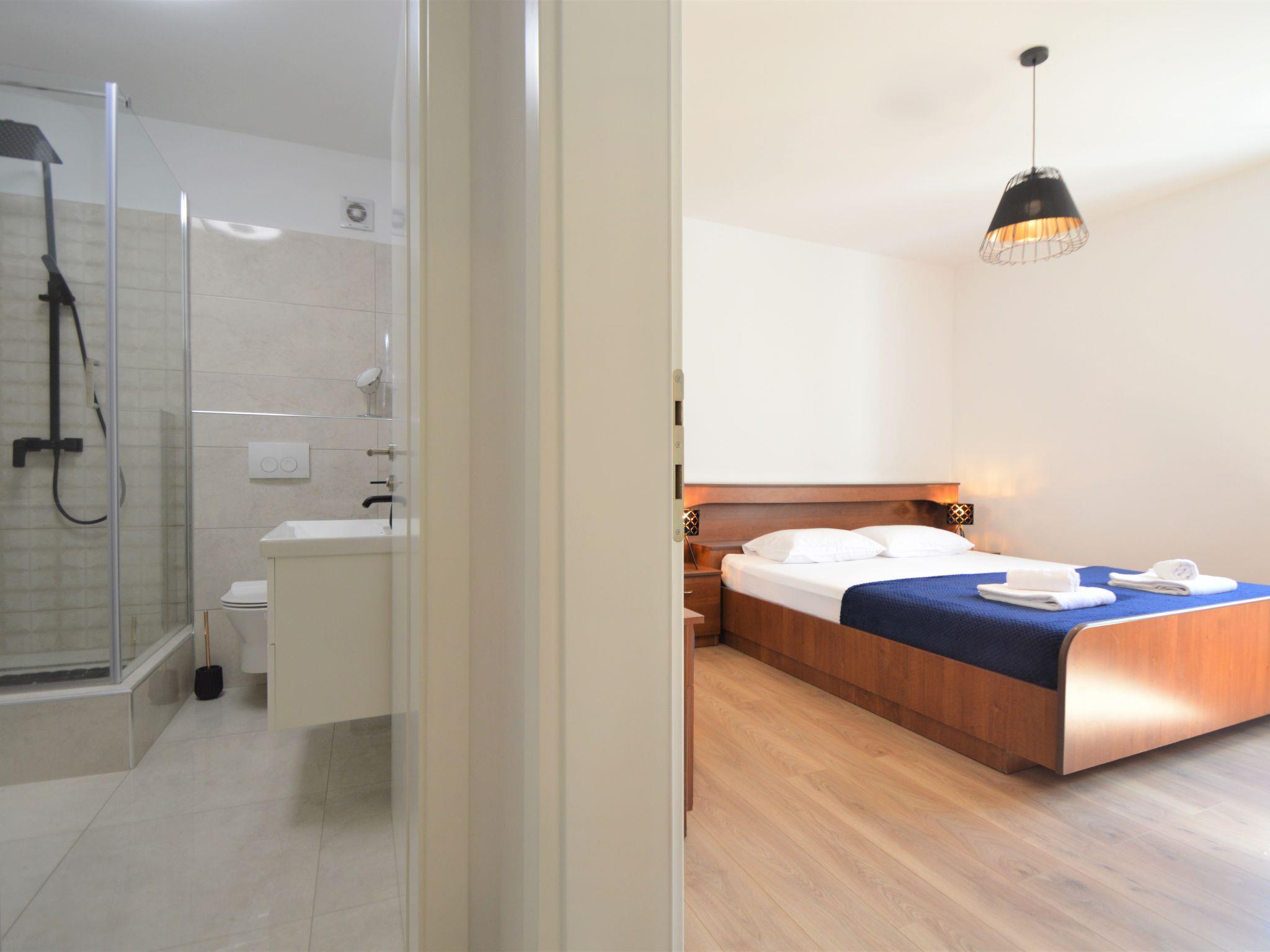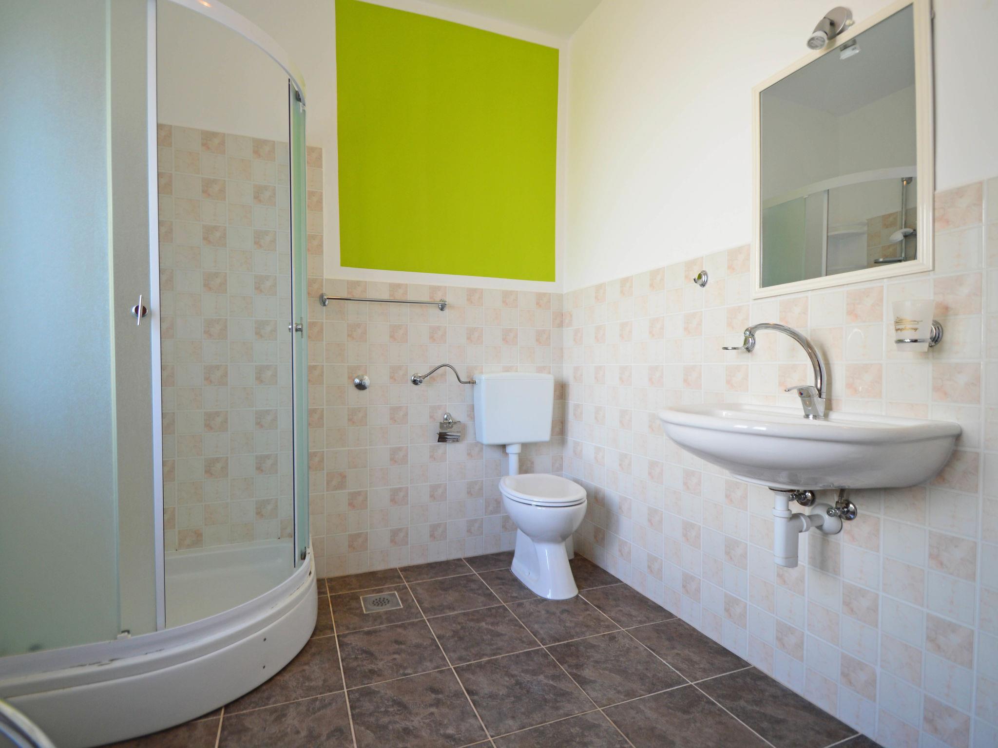 8-room apartment 185 m2 on 2 levels, south facing position. Beautiful and cosy furnishings: living/dining room 40 m2 with satellite TV (flat screen), air conditioning. Exit to the terrace. 1 room with 1 double bed (2 x 90 cm, length 200 cm), shower/WC. 1 room with 1 double bed (2 x 90 cm, length 200 cm). Open kitchen (2 hot plates, oven, 2 ceramic glass hob hotplates, Gas stove, microwave, freezer, electric coffee machine). Shower/WC. Upper floor: (exterior staircase) living/dining room with 1 sofabed (80 cm, length 200 cm), kitchen corner and satellite TV (flat screen), air conditioning. Exit to the balcony. 1 room with 1 french bed (180 cm, length 200 cm). Living/dining room with 1 sofabed (80 cm, length 200 cm), kitchen corner and satellite TV (flat screen), air conditioning. Exit to the balcony. 1 room with 1 french bed (180 cm, length 200 cm). Exit to the balcony. 1 room with 1 french bed (180 cm, length 200 cm), shower/WC. Exit to the balcony. 2 showers/WC. No heating option. 3 balconies 6 m2, terrace 40 m2 partly roofed. Terrace furniture, deck chairs. View of the swimming pool. Facilities: washing machine, children's high chair, baby cot, hair dryer. Internet (WiFi, free). Please note: one double bedroom is outside the apartment. The apartment consists of 3 apartments rented as one unit. Apartment on the ground floor (separate entrance): living/dining area, open kitchen, 2 bedrooms. On the first floor (separate entrance, exterior staircase): 2 apartments, each apartment with living/dining area, kitchen corner and bedroom. On the first floor also available 1 bedroom with separate entrance.