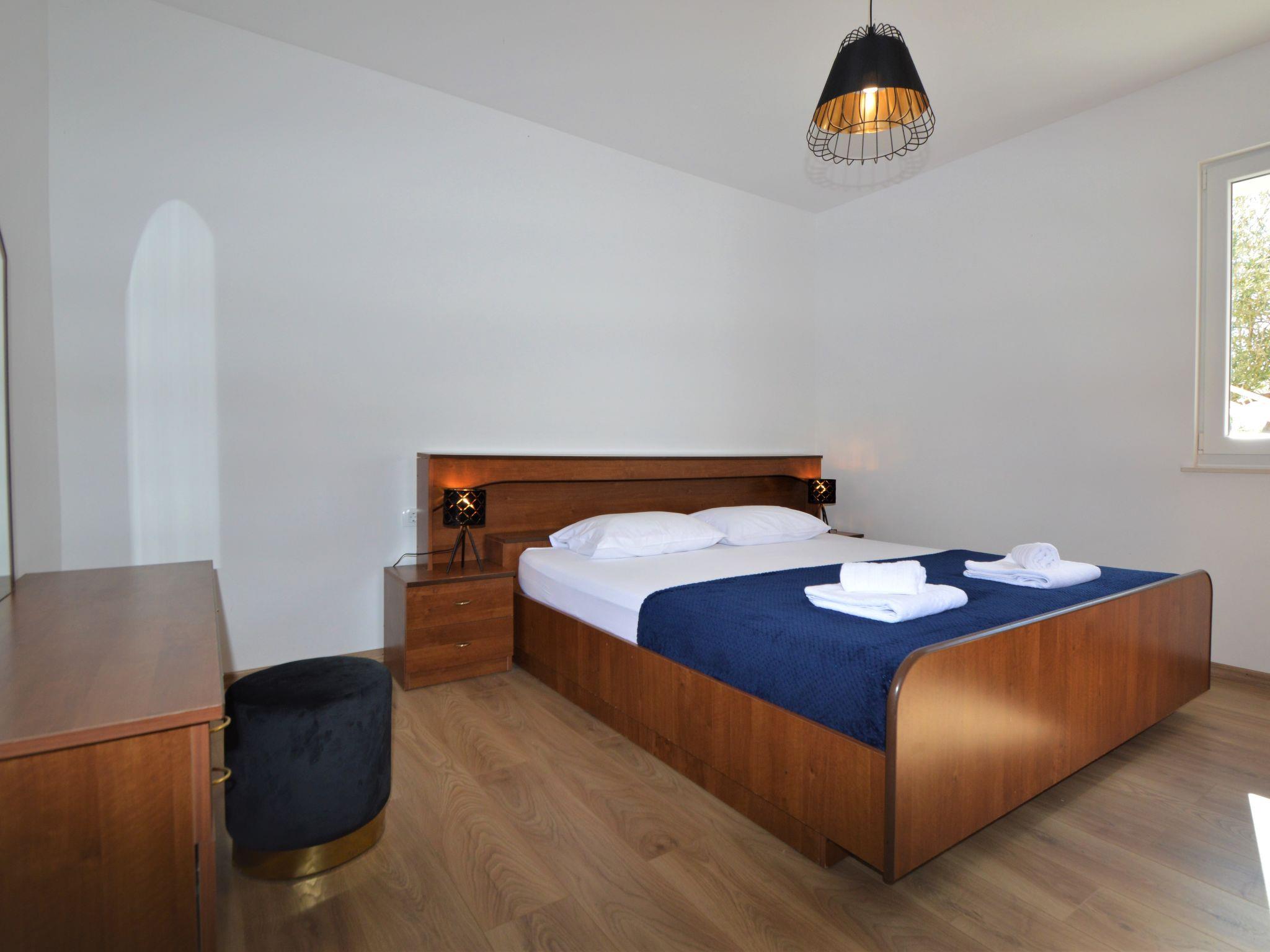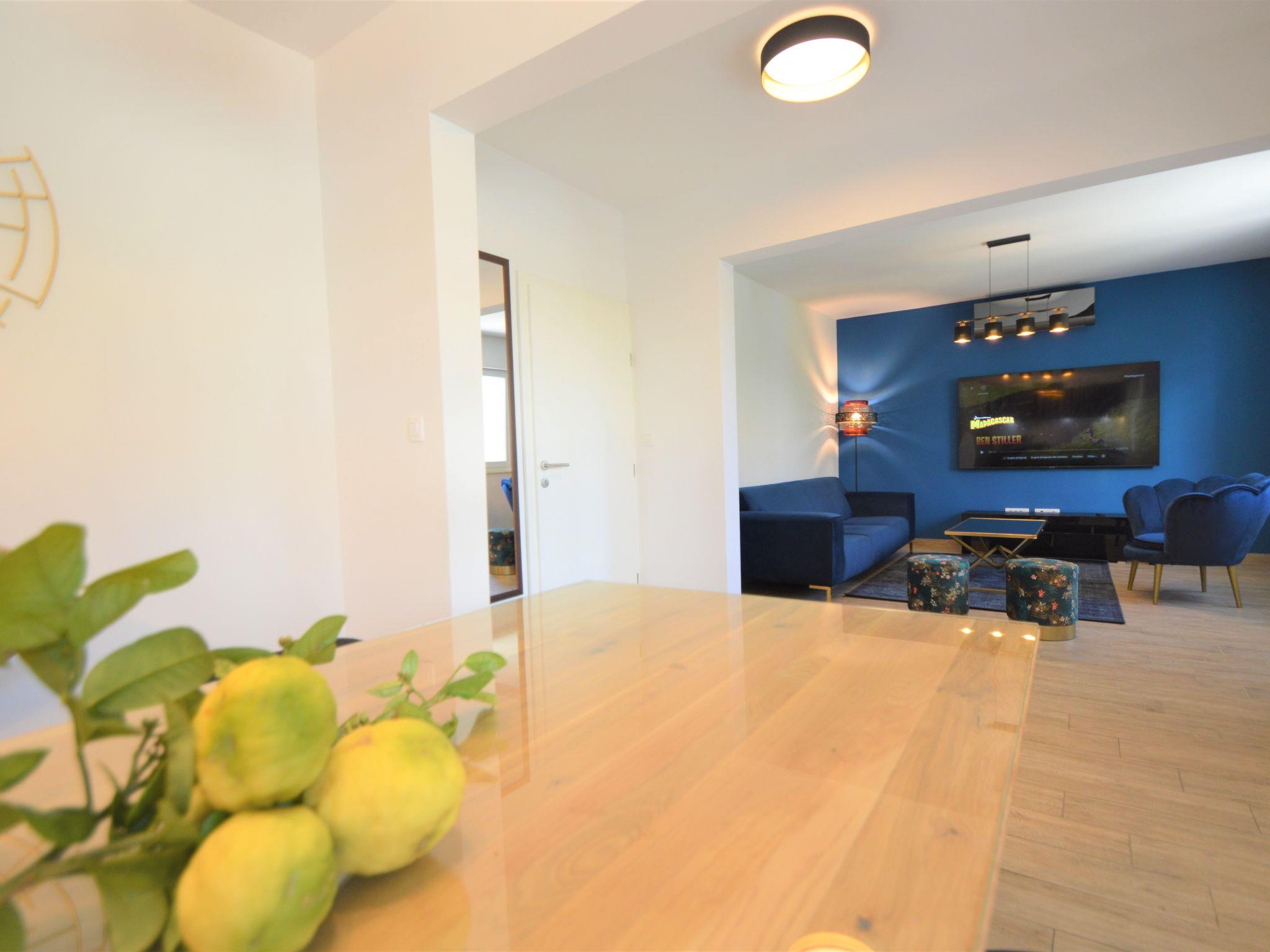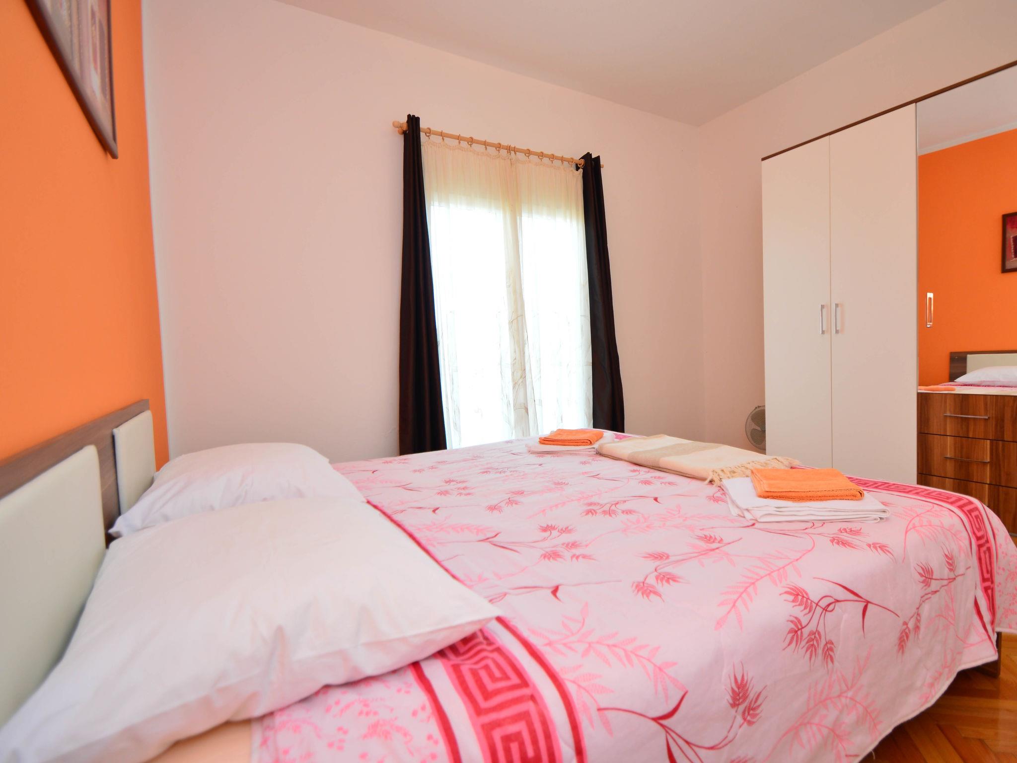 8-room apartment 185 m2 on 2 levels, south facing position. Beautiful and cosy furnishings: living/dining room 40 m2 with satellite TV (flat screen), air conditioning. Exit to the terrace. 1 room with 1 double bed (2 x 90 cm, length 200 cm), shower/WC. 1 room with 1 double bed (2 x 90 cm, length 200 cm). Open kitchen (2 hot plates, oven, 2 ceramic glass hob hotplates, Gas stove, microwave, freezer, electric coffee machine). Shower/WC. Upper floor: (exterior staircase) living/dining room with 1 sofabed (80 cm, length 200 cm), kitchen corner and satellite TV (flat screen), air conditioning. Exit to the balcony. 1 room with 1 french bed (180 cm, length 200 cm). Living/dining room with 1 sofabed (80 cm, length 200 cm), kitchen corner and satellite TV (flat screen), air conditioning. Exit to the balcony. 1 room with 1 french bed (180 cm, length 200 cm). Exit to the balcony. 1 room with 1 french bed (180 cm, length 200 cm), shower/WC. Exit to the balcony. 2 showers/WC. No heating option. 3 balconies 6 m2, terrace 40 m2 partly roofed. Terrace furniture, deck chairs. View of the swimming pool. Facilities: washing machine, children's high chair, baby cot, hair dryer. Internet (WiFi, free). Please note: one double bedroom is outside the apartment. The apartment consists of 3 apartments rented as one unit. Apartment on the ground floor (separate entrance): living/dining area, open kitchen, 2 bedrooms. On the first floor (separate entrance, exterior staircase): 2 apartments, each apartment with living/dining area, kitchen corner and bedroom. On the first floor also available 1 bedroom with separate entrance.