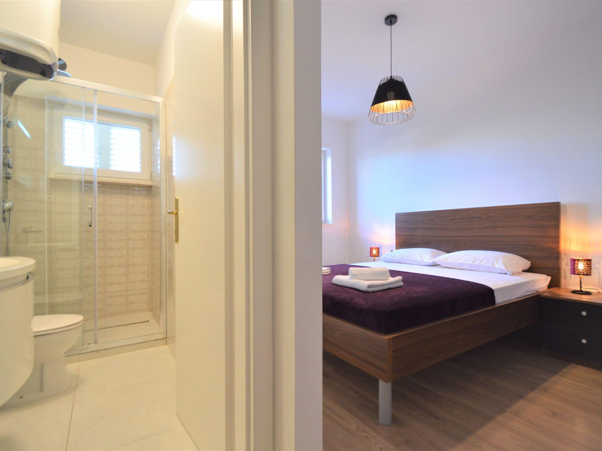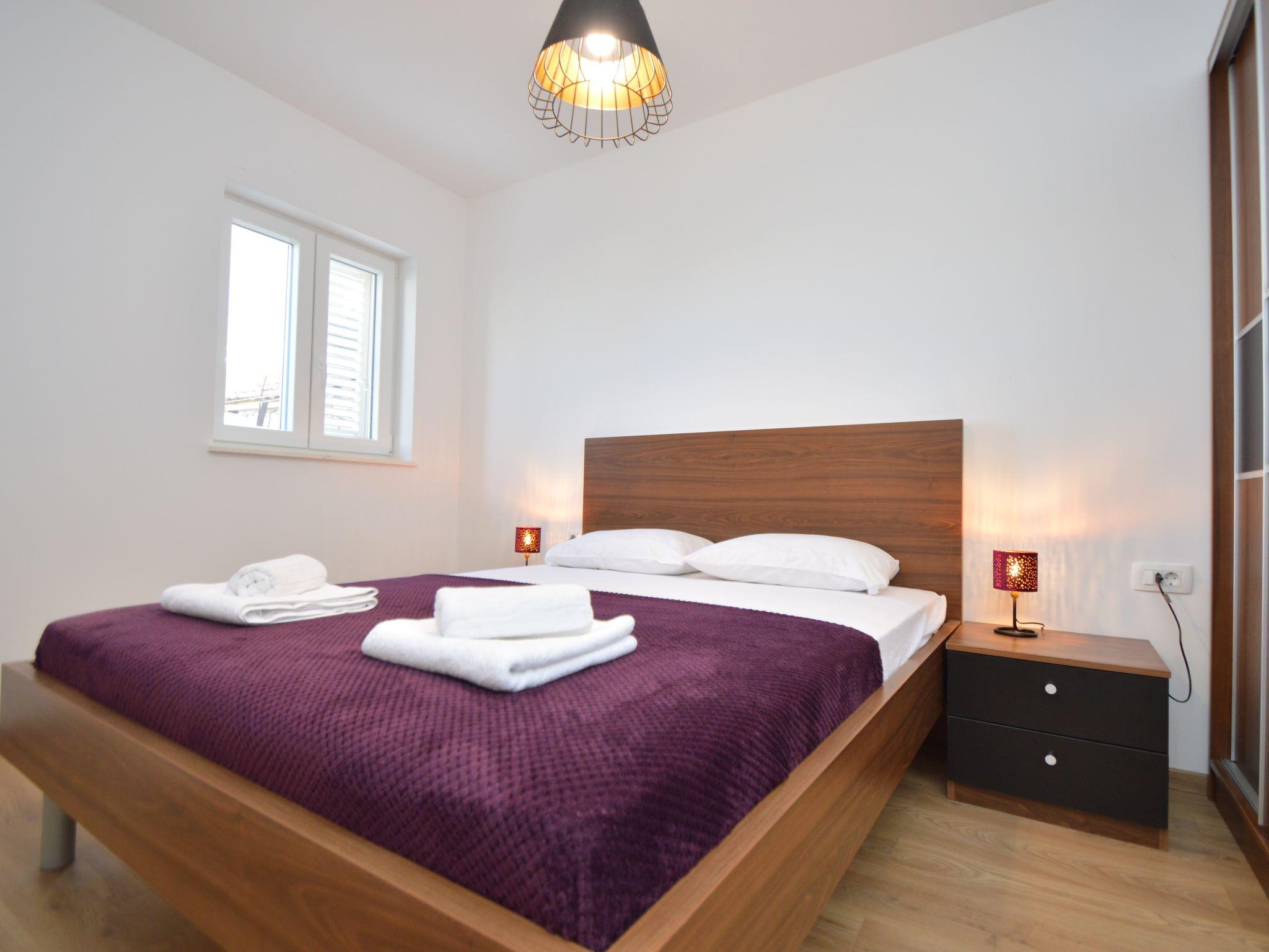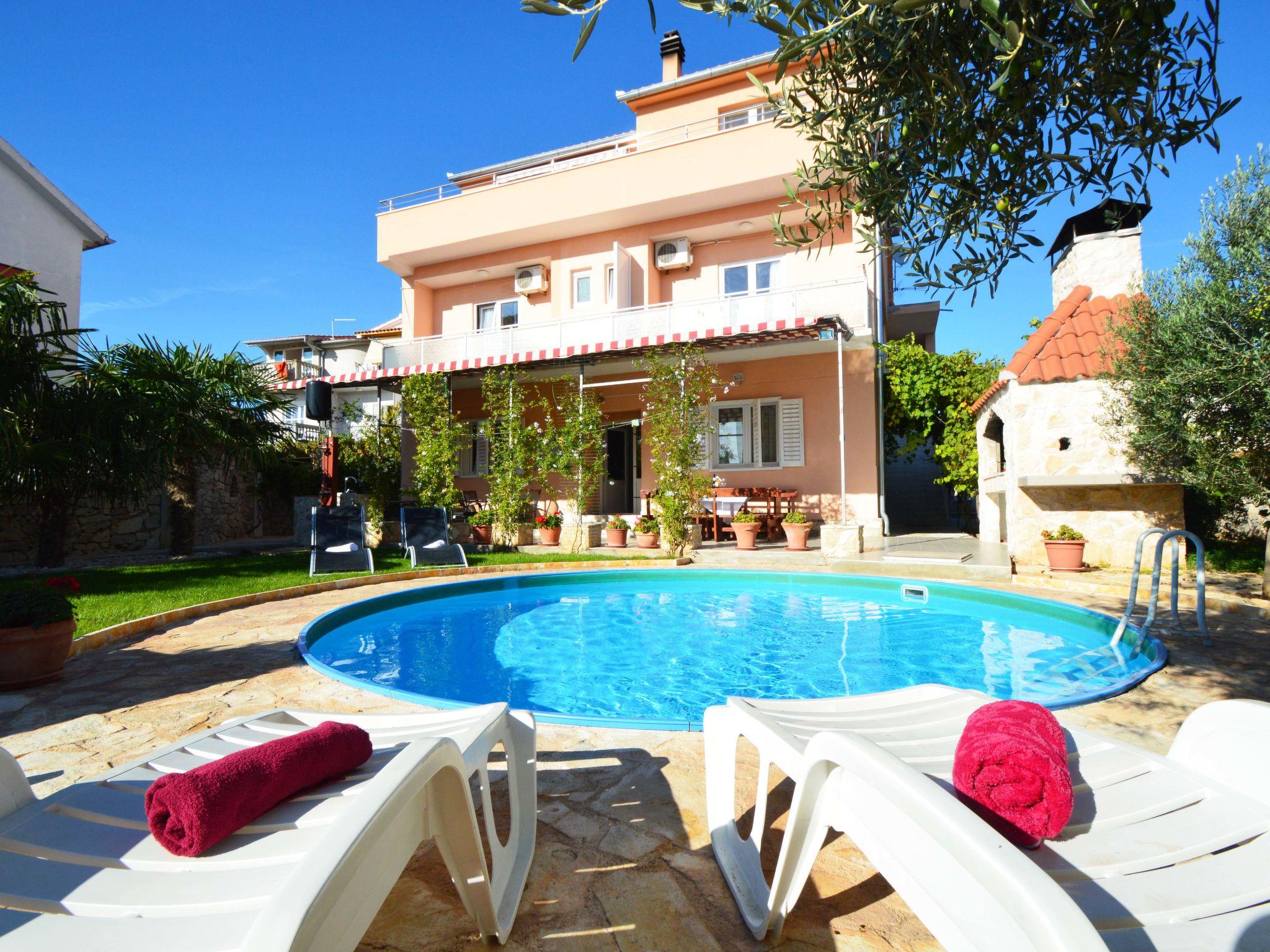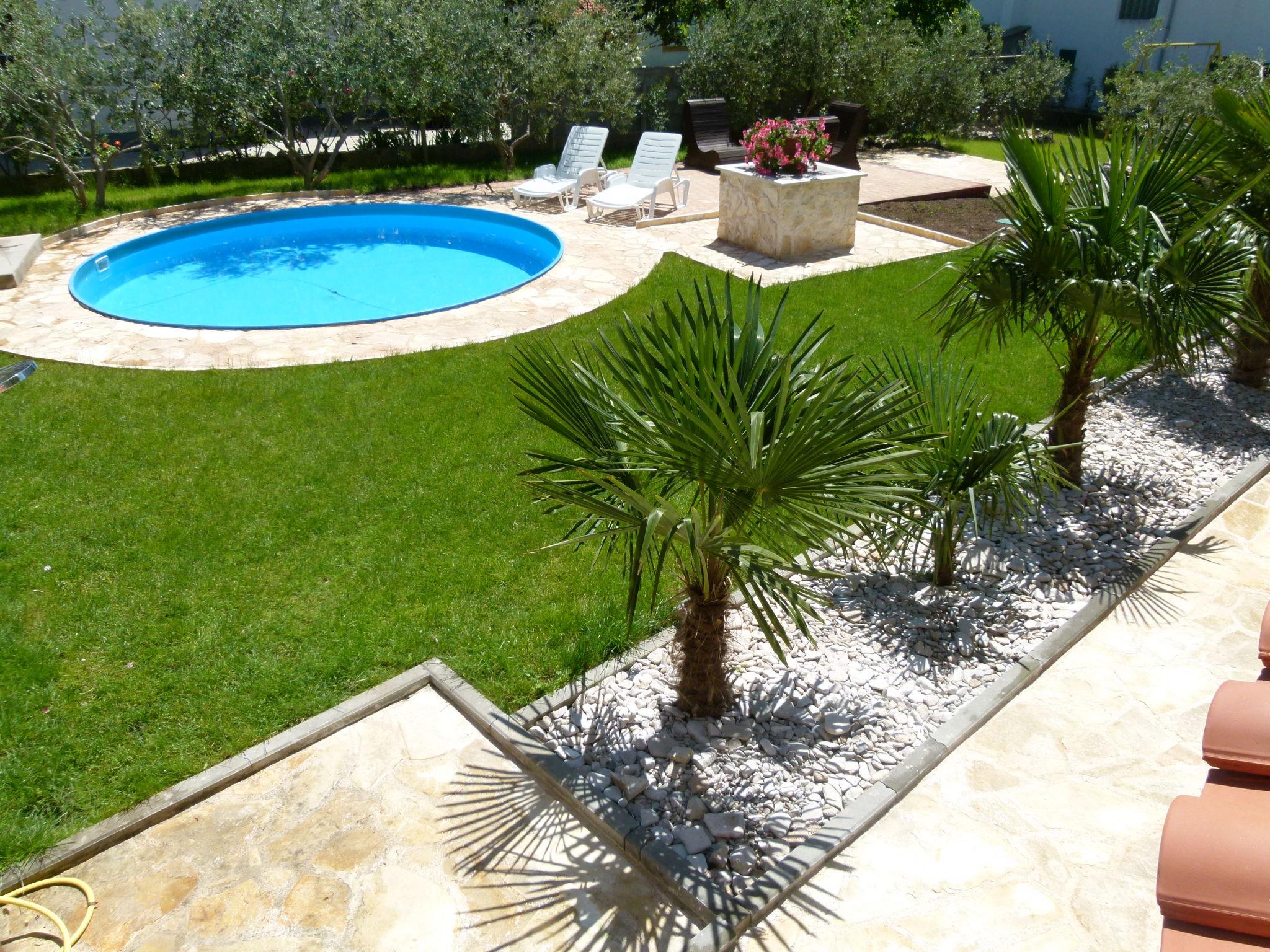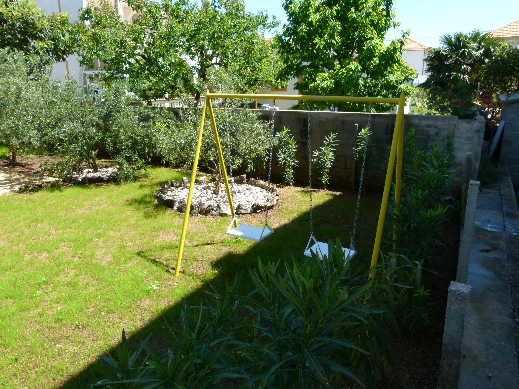 Tribunj 3 km from Vodice: Apartment house "Ukic". 300 m from the centre of Tribunj, in a quiet, sunny position, 250 m from the sea, 700 m from the beach. For shared use: property 400 m2. Private: with lawn, swimming pool (5 m diameter, depth 120 cm, seasonal availability: 01.May. - 31.Oct.). Outdoor shower, garden furniture, barbecue (swing). In the house: internet access, washing machine. Parking (for 3 cars) at 20 m. Shop 200 m, restaurant 300 m, bus stop 3.5 km, pebble beach, rocky beach 700 m. Marina 250 m.