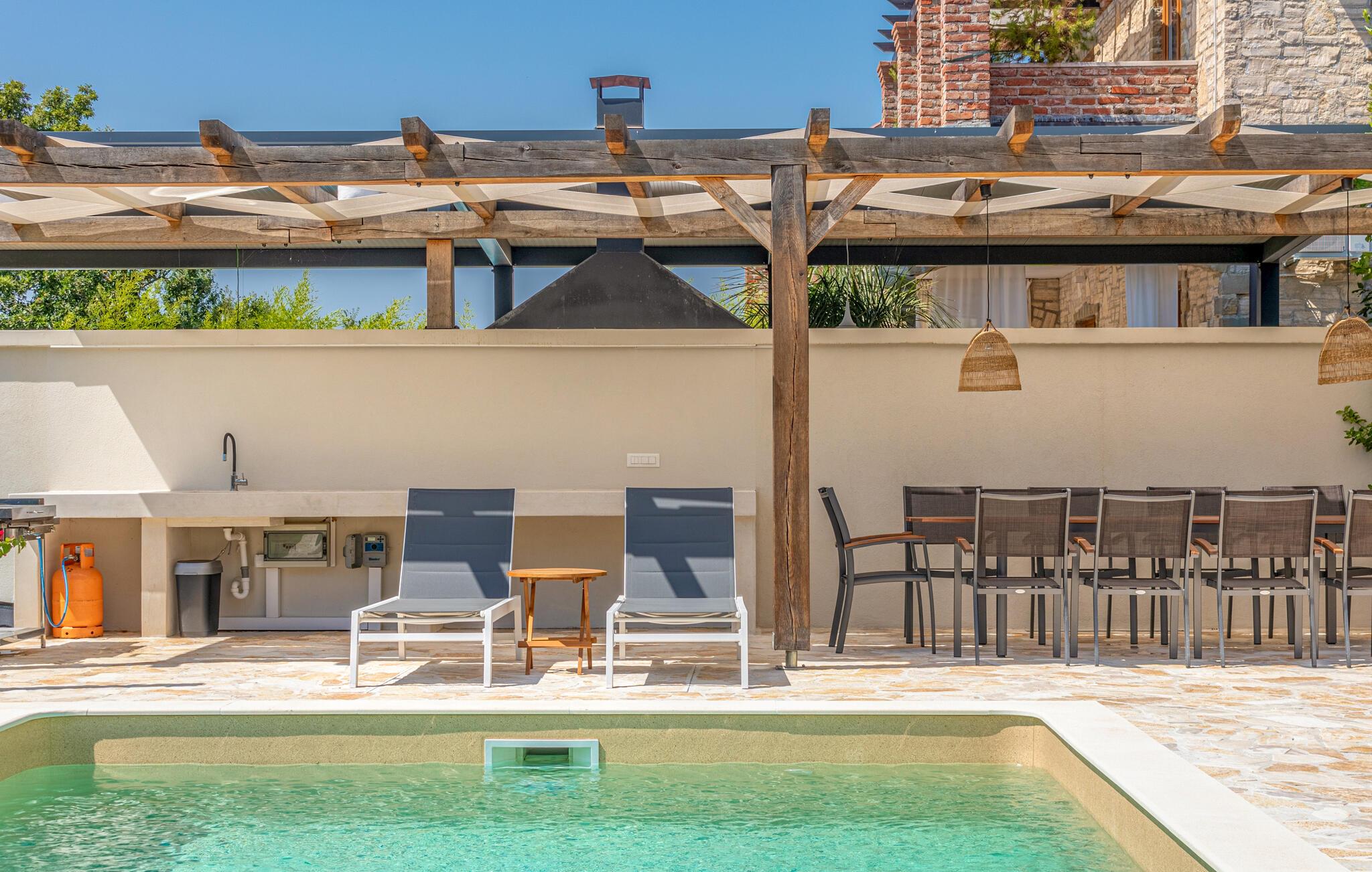 Glæd jer til en ferie med sus, dus og masser af komfort i denne lækre villa med pool.