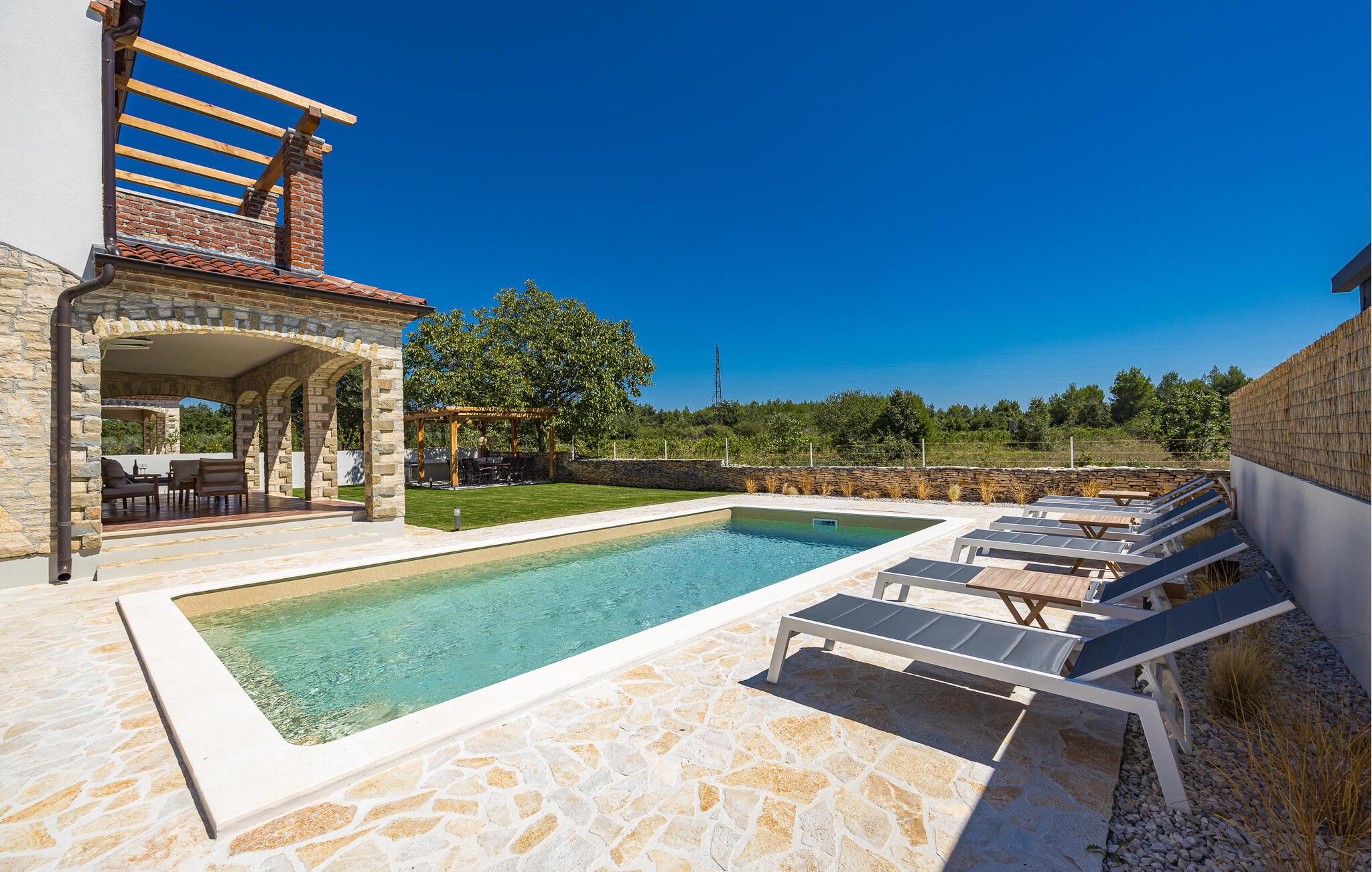 Glæd jer til en ferie med sus, dus og masser af komfort i denne lækre villa med pool.