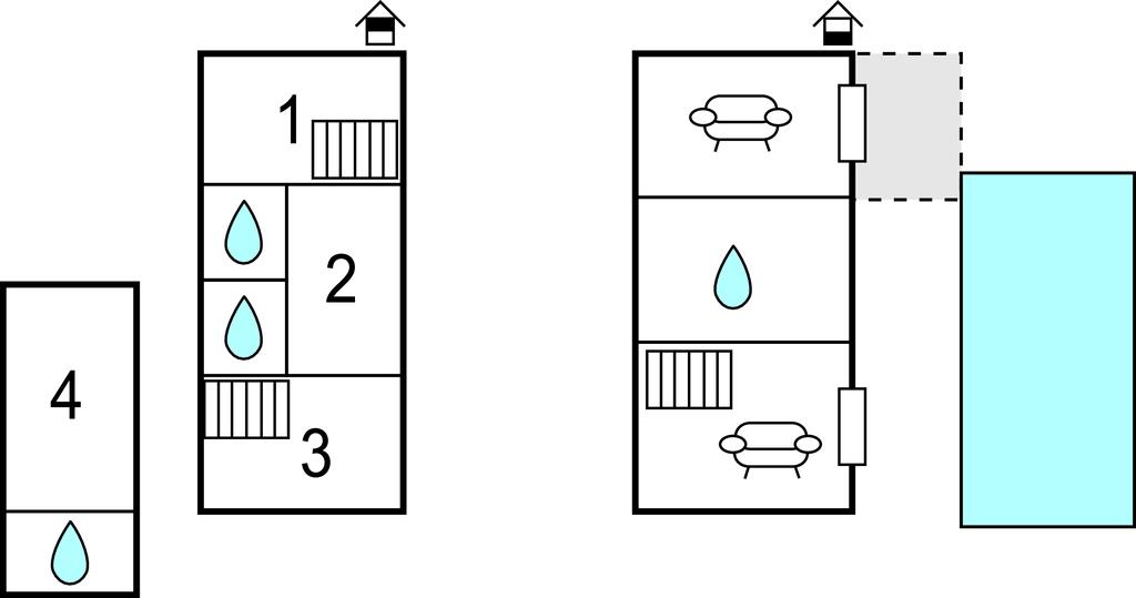 Badeværelse 6m2 (nr. 1) - WC. Varmt og koldt vand. Bruser