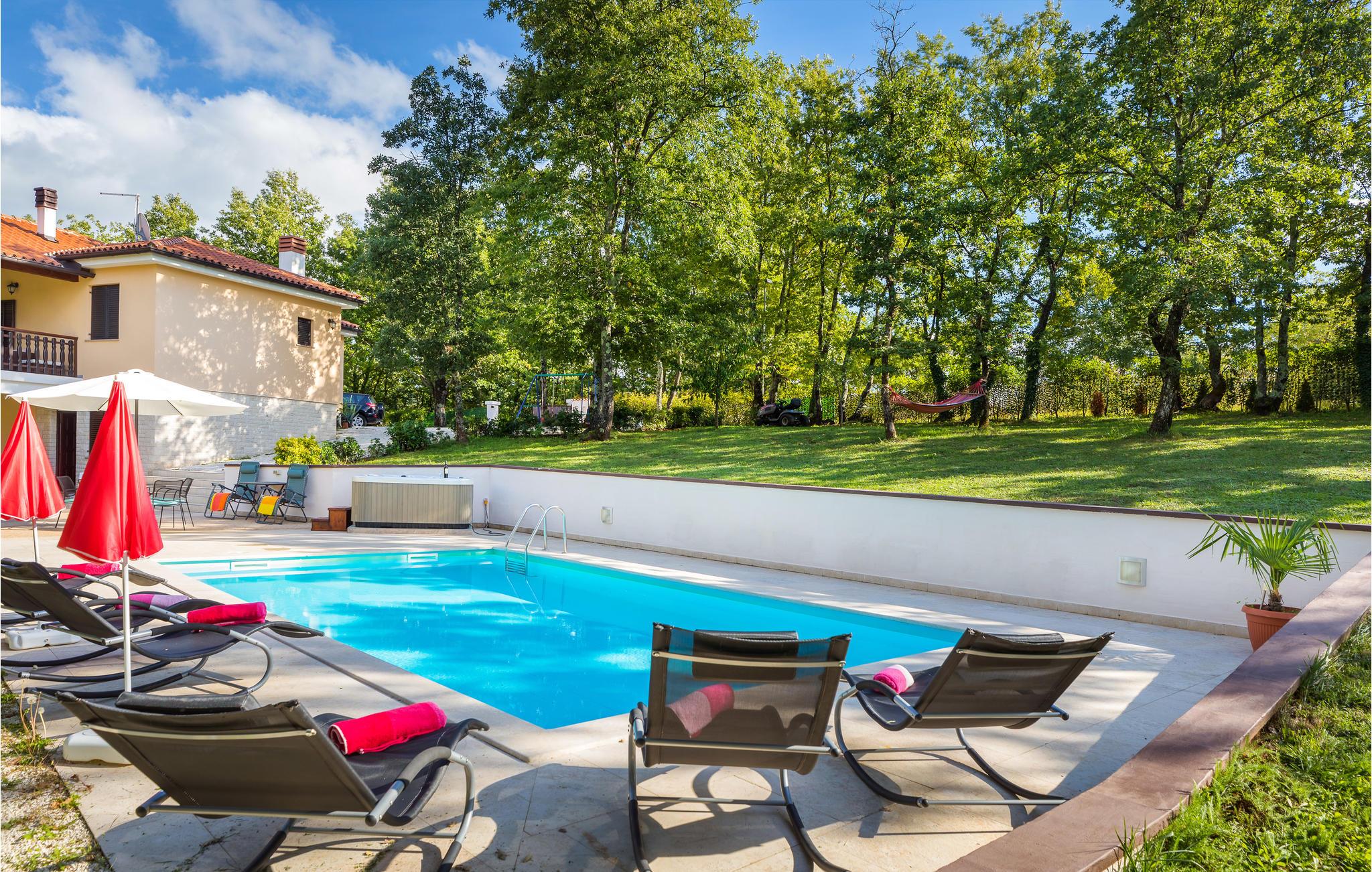 På jagt efter et feriehus omgivet af frodig grøn natur – så er dette hus det helt rigtige. Huset ligger på en dejlig stor grund, der indbyder til afslapning og spadsereture og med god plads til at børnene kan lege, spille bold og tumle sig uden at forstyrre. Ved huset, der rummer to separate boliger, er der også en swimmingpool, hvor I kan forfriske jer på de hede sommerdage. Feriehuset ligger desuden i det centrale Istrien, hvorfor det kun tager en halv time i bil, at komme til halvøens meste populære seværdigheder.