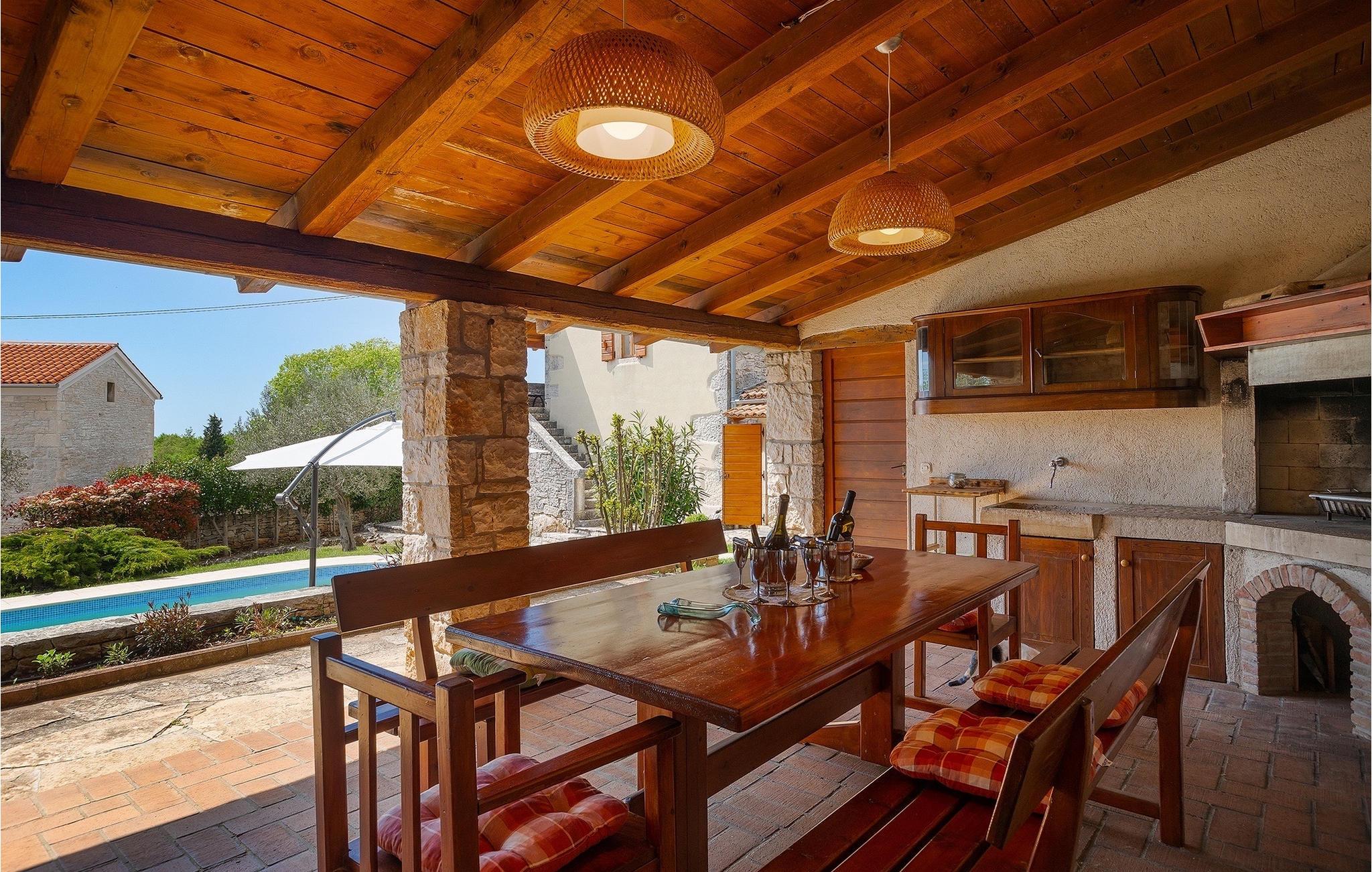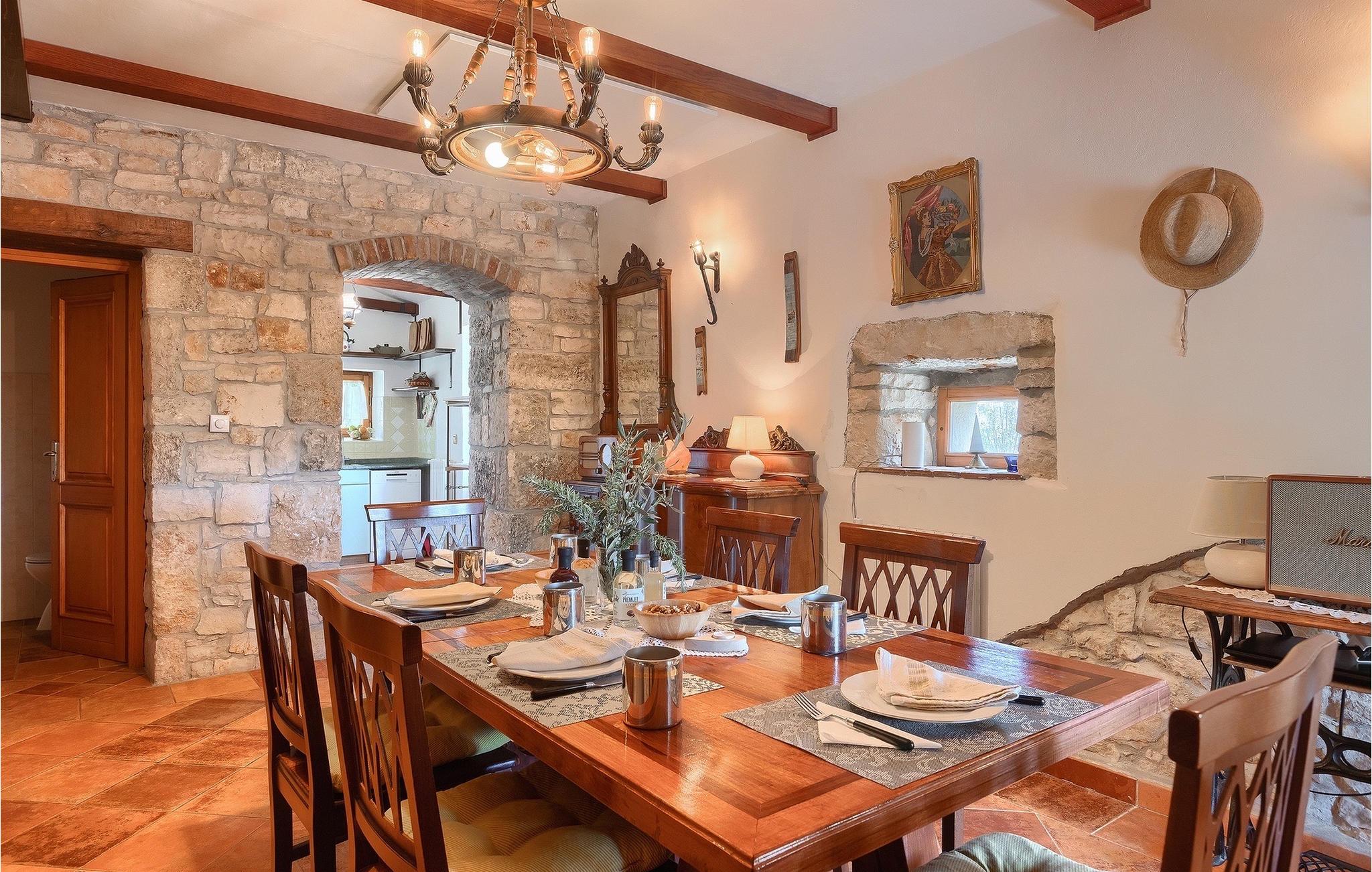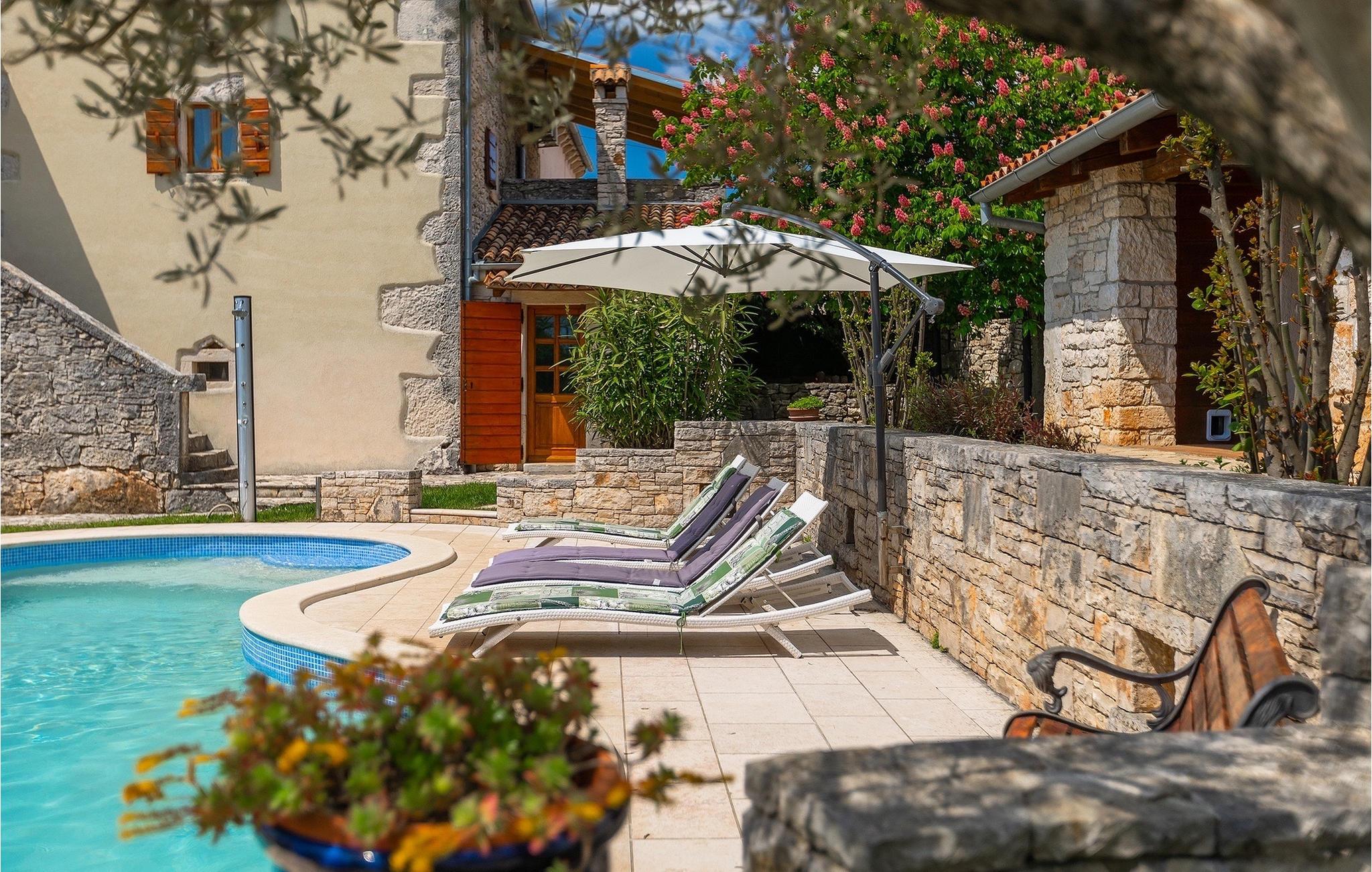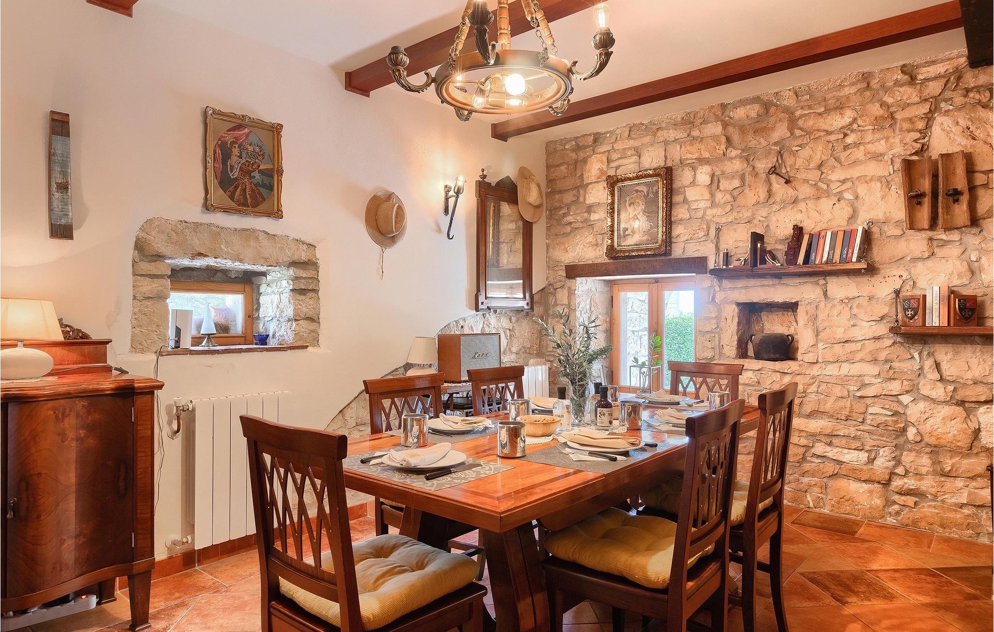 Hvad gør det centrale Istrien så specielt, og hvorfor er det så populært? Hemmeligheden er landsbyernes romantiske arkitektur og den omkringliggende uspolerede natur, som gør det til det perfekte sted for en afslappende ferie med familie og venner. Villa Di Vino ligger i en lille traditionel landsby kaldet Pacici i kommunen Svetvincenat. Stenvillaen blev fuldstændig restaureret i 2005 og renoveret i 2022/2023. Villa Di Vino består af 3 etager og er indrettet i en varm stil, der får dig til at føle dig hjemme. I stueetagen finder du et fuldt udstyret køkken, en spiseplads, en stue med tv og et gæstetoilet. Her finder du også villaens højdepunkt - den smukke vinkælder med 200 flasker af de bedste istriske vine, såsom Malavazija. Første og anden sal er reserveret til afslapning, hvor du kan finde to soveværelser og et badeværelse på hver etage. Et af soveværelserne på første sal har også direkte udgang til en lille terrasse og et opholdsområde, hvor du kan nyde din morgenkaffe. Foran villaen ligger den store, indbydende pool, hvor du kan forfriske dig på varme sommerdage eller blot slappe af på en af de komfortable liggestole. Kun få skridt væk ligger det overdækkede sommerkøkken - det perfekte sted for en familiesammenkomst, hvor I sammen kan tilberede lækre måltider på kulgrillen. Gå ikke glip af denne mulighed og book Villa Di Vino nu, begynd at planlægge din ferie og få den bedste tid i dit liv! Den smukke stenvilla Di Vino ligger i den lille landsby Pacici i Svetvincenat kommune. Villaen er et ideelt udgangspunkt for adskillige udflugter, uanset hvor du skal hen. Hvis du tager mod kysten, kommer du til de smukke byer Pula og dets unikke amfiteater, Rovinj med sine fortryllende farverige huse og smalle gader, og Porec og den berømte Euphrasius-basilika. Det centrale Istrien vil glæde dig med adskillige middelalderbyer, der ligger på bakker, såsom Buje, Grožnjan og Motovun. Nyd det brede gastronomiske tilbud i Istrien, uanset om du foretrækker kød eller fisk eller er vegetar, kan Istrien tilfredsstille enhver smag. Prøv den traditionelle istriske pasta med trøfler, istrisk boškarin (en type oksekød) eller frisk skaldyr og fisk. Vi anbefaler bestemt et besøg i Brijuni National Park, en gruppe af øer og holme, hvis forskelligartede flora og fauna vil glæde dig. Glæd dig til smukke stenstrande, talrige arkæologiske steder og en safaripark med talrige dyr. Efter en begivenhedsrig dag er det tid til at vende tilbage til villaen, hvor du kan slappe af omgivet af fred og ro. Temperaturen i den opvarmede swimmingpool er afhængig af eksterne faktorer, herunder vejrforhold, og som sådan kan temperaturen på vandet ikke garanteres.