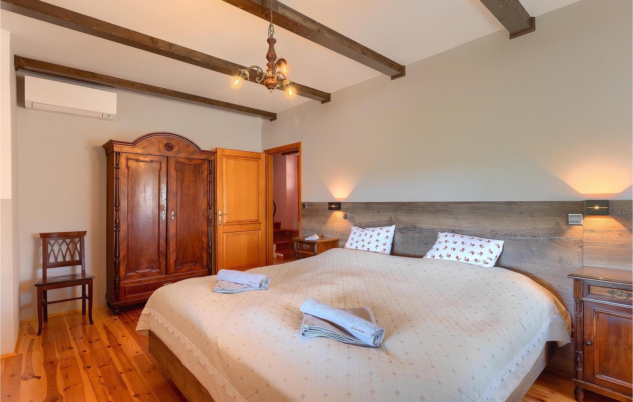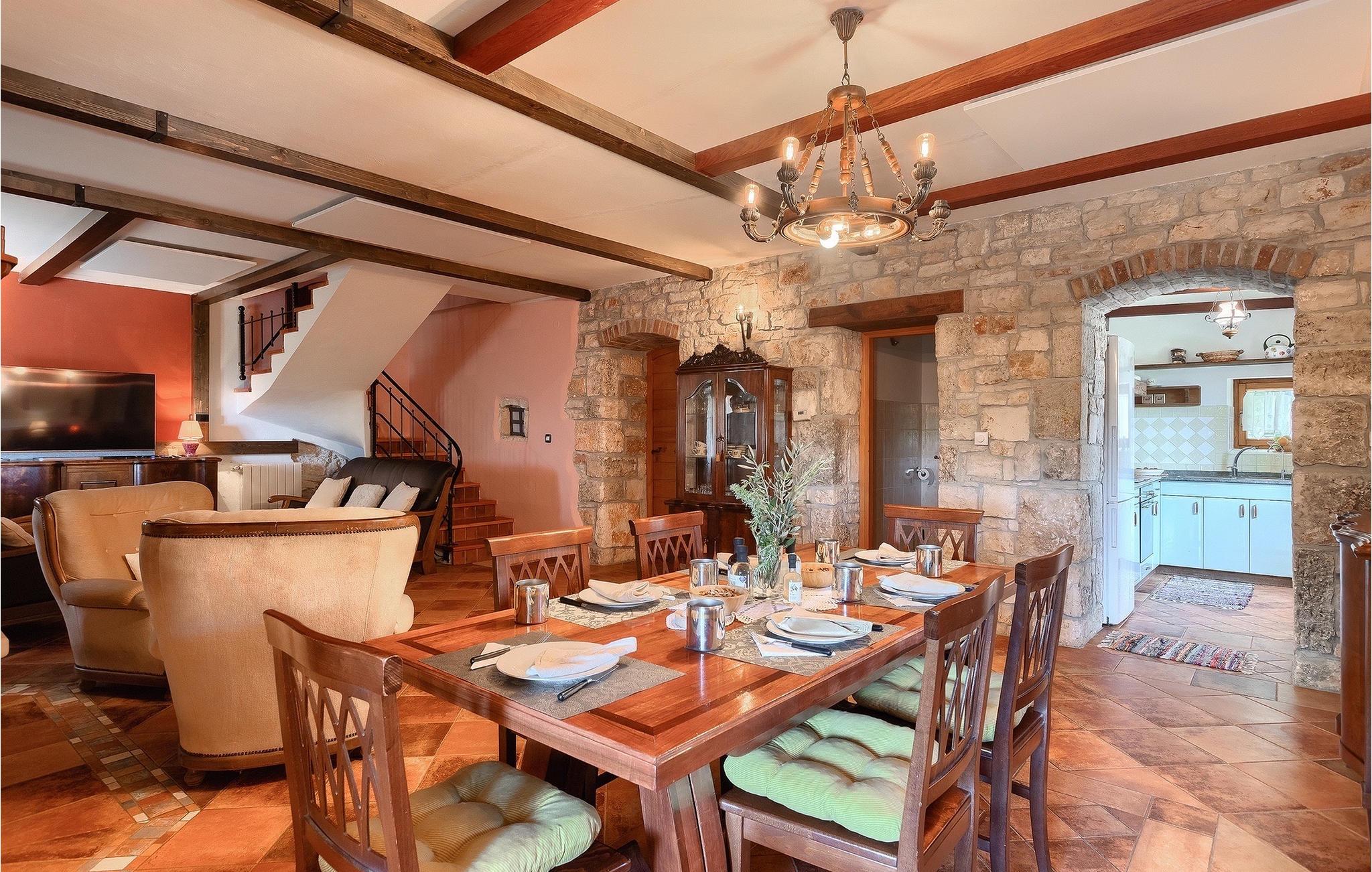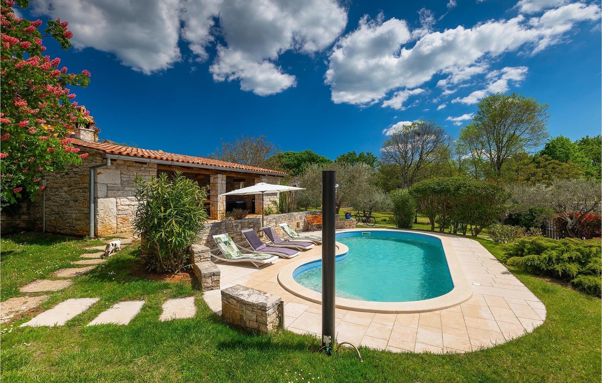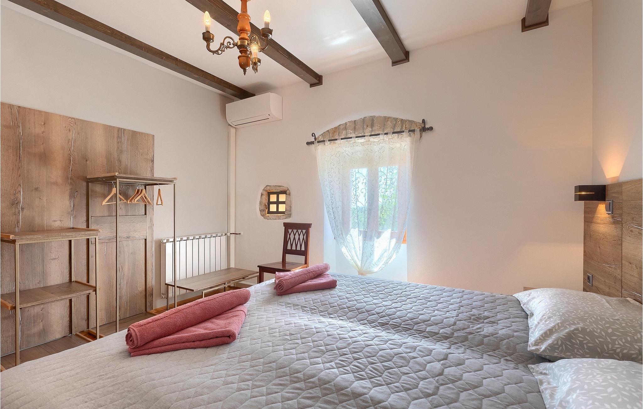 Hvad gør det centrale Istrien så specielt, og hvorfor er det så populært? Hemmeligheden er landsbyernes romantiske arkitektur og den omkringliggende uspolerede natur, som gør det til det perfekte sted for en afslappende ferie med familie og venner. Villa Di Vino ligger i en lille traditionel landsby kaldet Pacici i kommunen Svetvincenat. Stenvillaen blev fuldstændig restaureret i 2005 og renoveret i 2022/2023. Villa Di Vino består af 3 etager og er indrettet i en varm stil, der får dig til at føle dig hjemme. I stueetagen finder du et fuldt udstyret køkken, en spiseplads, en stue med tv og et gæstetoilet. Her finder du også villaens højdepunkt - den smukke vinkælder med 200 flasker af de bedste istriske vine, såsom Malavazija. Første og anden sal er reserveret til afslapning, hvor du kan finde to soveværelser og et badeværelse på hver etage. Et af soveværelserne på første sal har også direkte udgang til en lille terrasse og et opholdsområde, hvor du kan nyde din morgenkaffe. Foran villaen ligger den store, indbydende pool, hvor du kan forfriske dig på varme sommerdage eller blot slappe af på en af de komfortable liggestole. Kun få skridt væk ligger det overdækkede sommerkøkken - det perfekte sted for en familiesammenkomst, hvor I sammen kan tilberede lækre måltider på kulgrillen. Gå ikke glip af denne mulighed og book Villa Di Vino nu, begynd at planlægge din ferie og få den bedste tid i dit liv! Den smukke stenvilla Di Vino ligger i den lille landsby Pacici i Svetvincenat kommune. Villaen er et ideelt udgangspunkt for adskillige udflugter, uanset hvor du skal hen. Hvis du tager mod kysten, kommer du til de smukke byer Pula og dets unikke amfiteater, Rovinj med sine fortryllende farverige huse og smalle gader, og Porec og den berømte Euphrasius-basilika. Det centrale Istrien vil glæde dig med adskillige middelalderbyer, der ligger på bakker, såsom Buje, Grožnjan og Motovun. Nyd det brede gastronomiske tilbud i Istrien, uanset om du foretrækker kød eller fisk eller er vegetar, kan Istrien tilfredsstille enhver smag. Prøv den traditionelle istriske pasta med trøfler, istrisk boškarin (en type oksekød) eller frisk skaldyr og fisk. Vi anbefaler bestemt et besøg i Brijuni National Park, en gruppe af øer og holme, hvis forskelligartede flora og fauna vil glæde dig. Glæd dig til smukke stenstrande, talrige arkæologiske steder og en safaripark med talrige dyr. Efter en begivenhedsrig dag er det tid til at vende tilbage til villaen, hvor du kan slappe af omgivet af fred og ro. Temperaturen i den opvarmede swimmingpool er afhængig af eksterne faktorer, herunder vejrforhold, og som sådan kan temperaturen på vandet ikke garanteres.