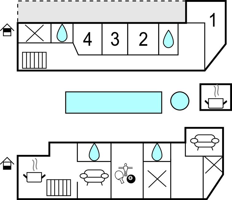 Badeværelse 5m2 (nr. 1) - WC. Varmt og koldt vand. Bruser