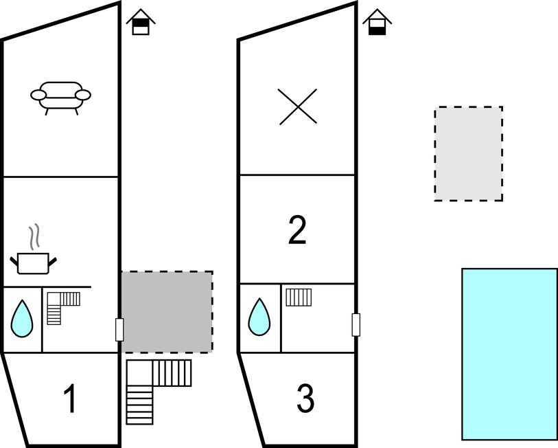 Huset fordeler sig på to etager, er ideelt til en afslappet ferie med en stor familie eller med mange venner. På den øverste etage ligger en rummelig stue og køkkenet. Soveværelse og badeværelse ligger på begge etager. Fra stueplan kommer I ud til poolen, som er skøn at plaske og svømme i, især når det er rigtigt varmt. Nyd hyggelige timer på terrassen, imponer hinanden med lækre retter fra husets udendørs grill.