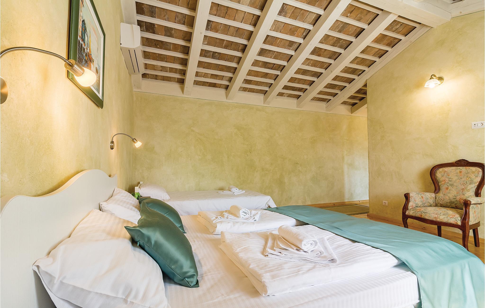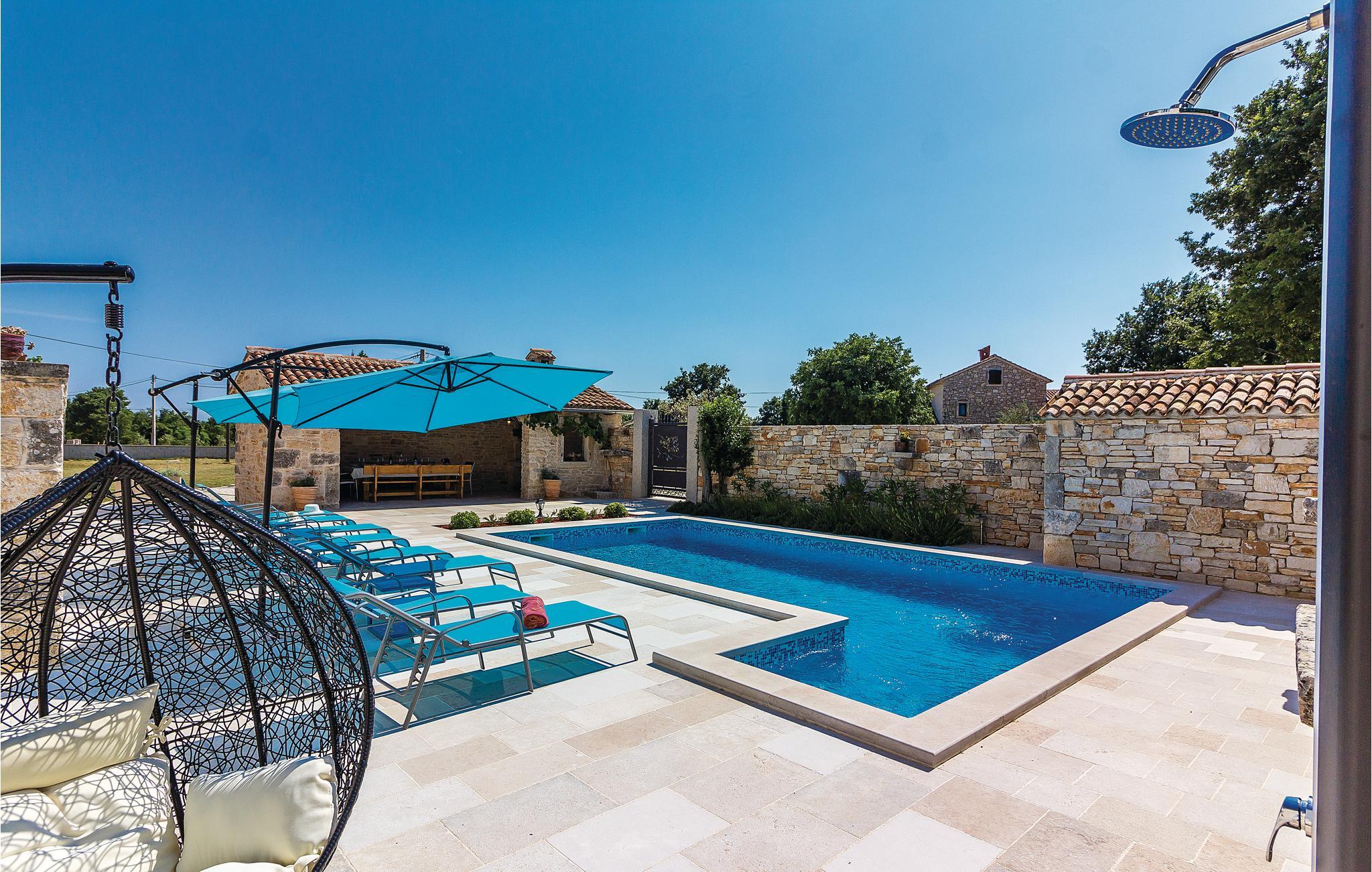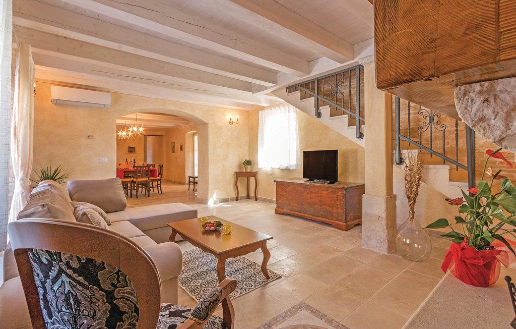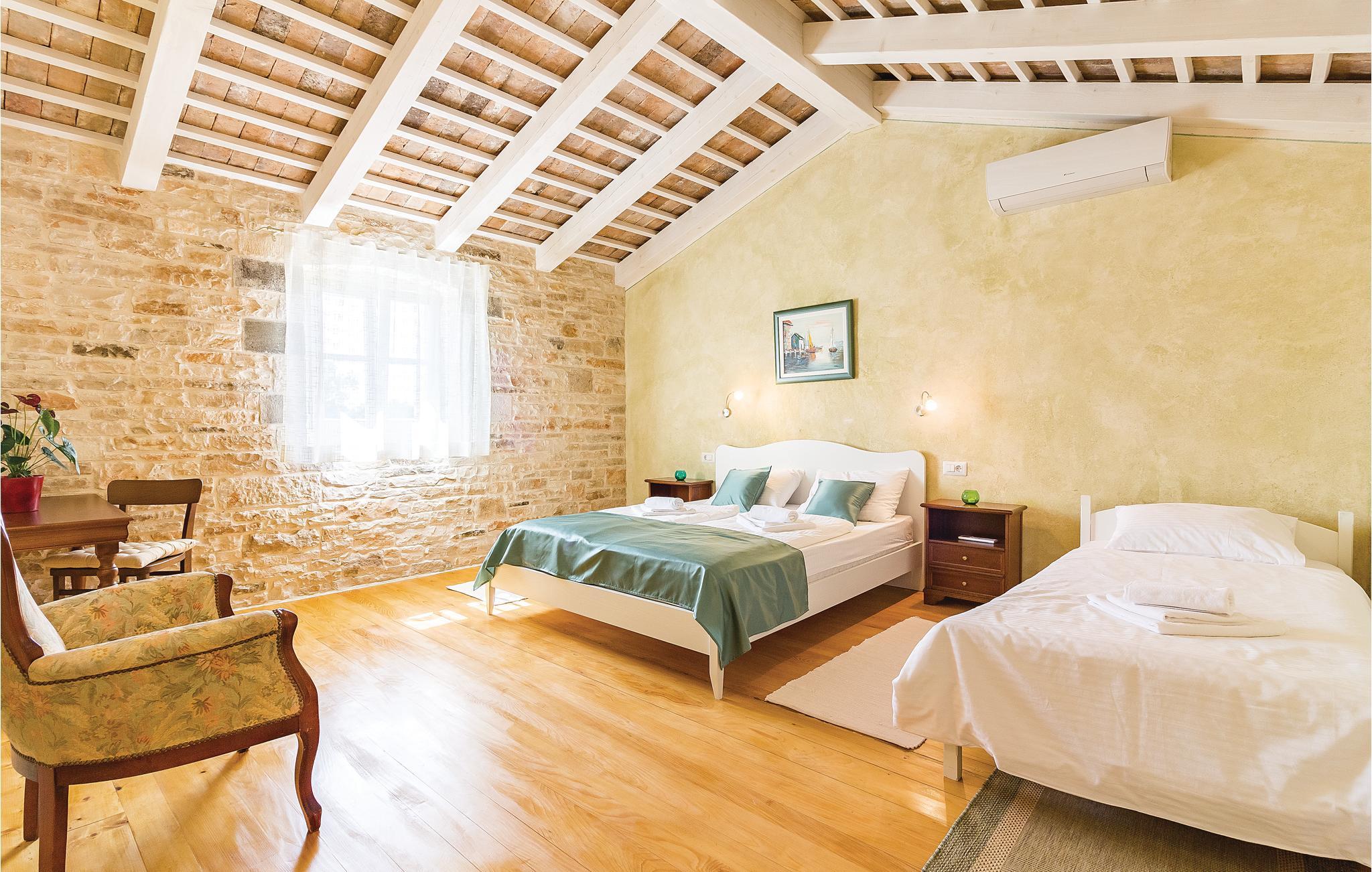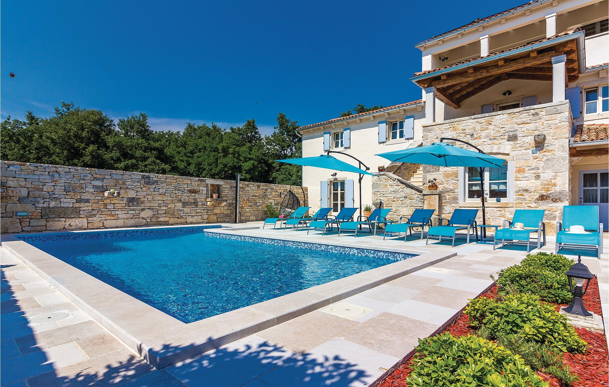 Den traditionelle sten- og trækonstruktion er kombineret med moderne møbler og tilbyder sine gæster maksimal komfort. I stueetagen er der et køkken med opholds- og spiseplads samt et soveværelse med badeværelse og egen adgang til poolområdet. Ovenpå er der tre soveværelser med badeværelser, mens øverste etage er det største soveværelse med badeværelse og egen terrasse, hvorfra der endda er en delvis havudsigt. Her kan du nyde udsigten over den smukke solnedgang. Ved siden af ??poolen er der en overdækket terrasse med en grill, og på græsplænen ved siden af ??er der et legeplads samt en volleyball- og badmintonbane. Foran er der en ekstra gårdhave-terrasse, hvor du kan drikke morgenkaffe og slappe af.