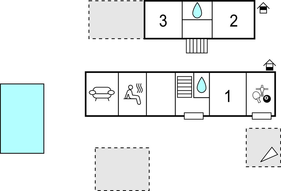 Interiøret består af en stueetage og en 1. sal, forbundet via en indvendig trappe. Her får I et rummeligt feriehus, med et underholdningsrum, der byder på bordfodboldbord, samt et tv-hjørne til afslappende aftener og en indendørssauna, der vil være lige sagen efter en lang dag på fødderne. På en af de mange terrasser kan I slappe af i havemøbler af høj kvalitet eller forberede en grillmiddag og bruge den udendørsjacuzzi, mens I beundrer landskabet. Der er også en udendørsswimmingpool med liggestole.