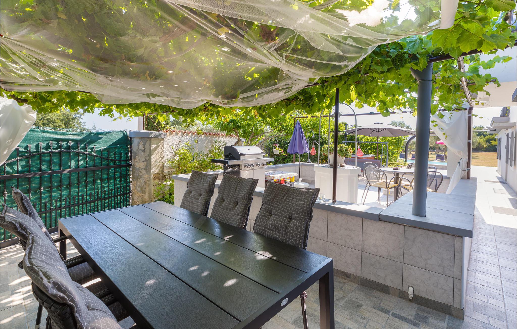 Vodnjan (6 km) er berømt for den smukke kirke St. Blasius, hvor I kan beundre de bevarede mumier, samt for produktionen af en af de bedste olivenolier. Supermarkeder og restauranter er i nærheden, samt en legeplads i en stor park. De nærmeste badestrande er i Peroj Beach og Barbargia eller Fažana, hvorfra I kan sejle med båd til Brijuni Nationalpark.