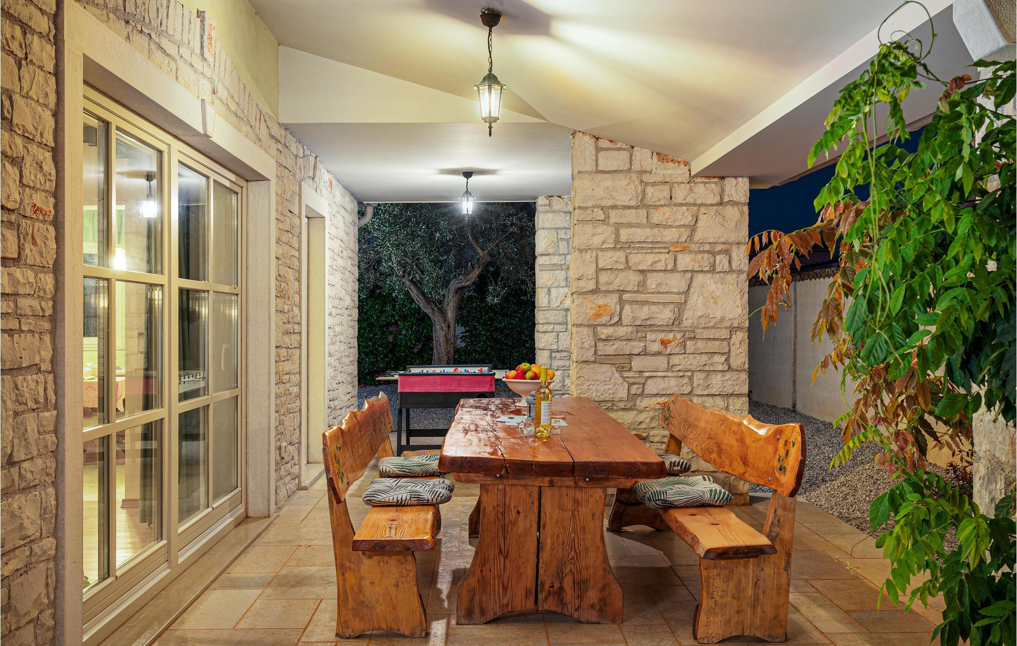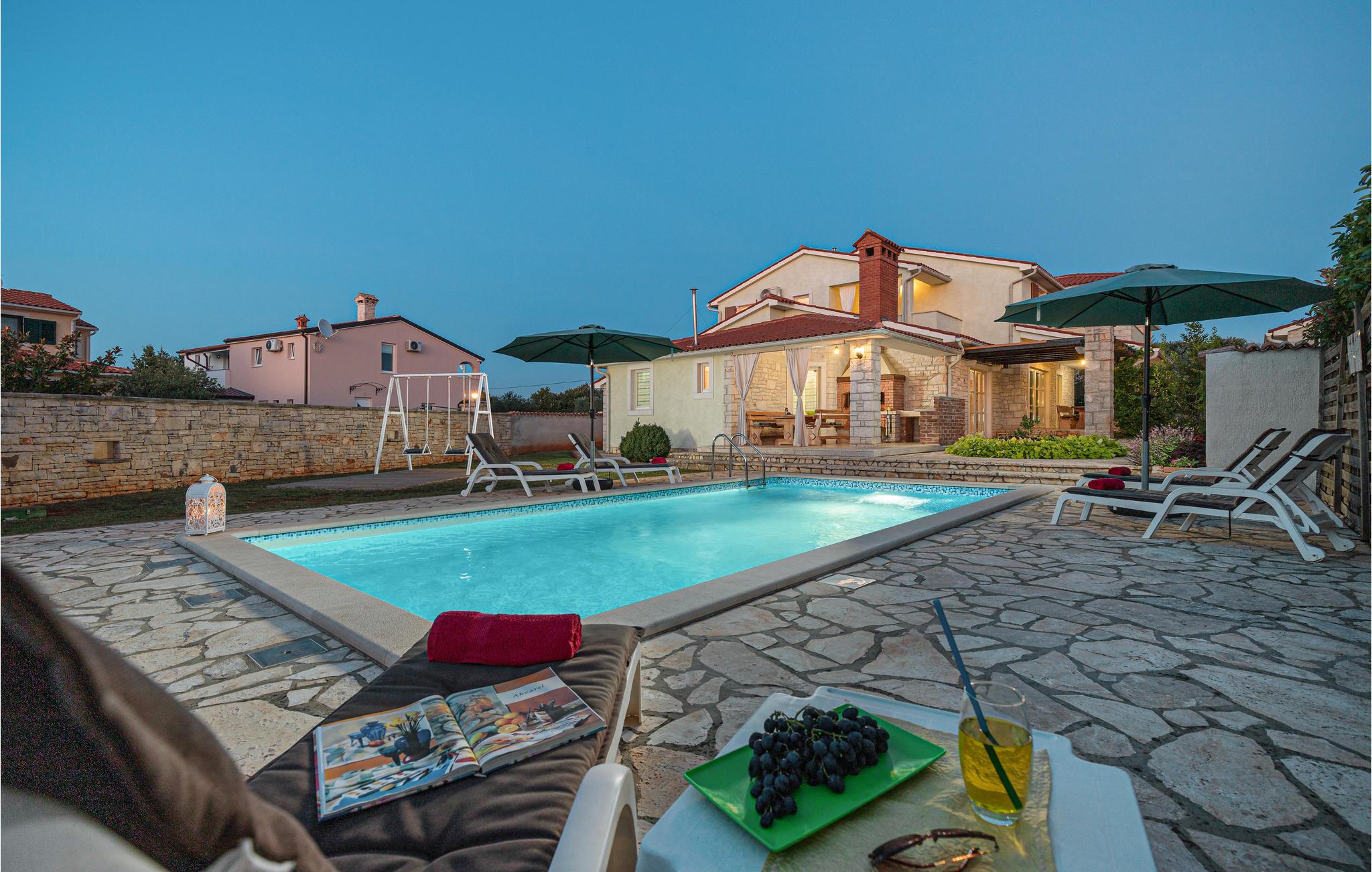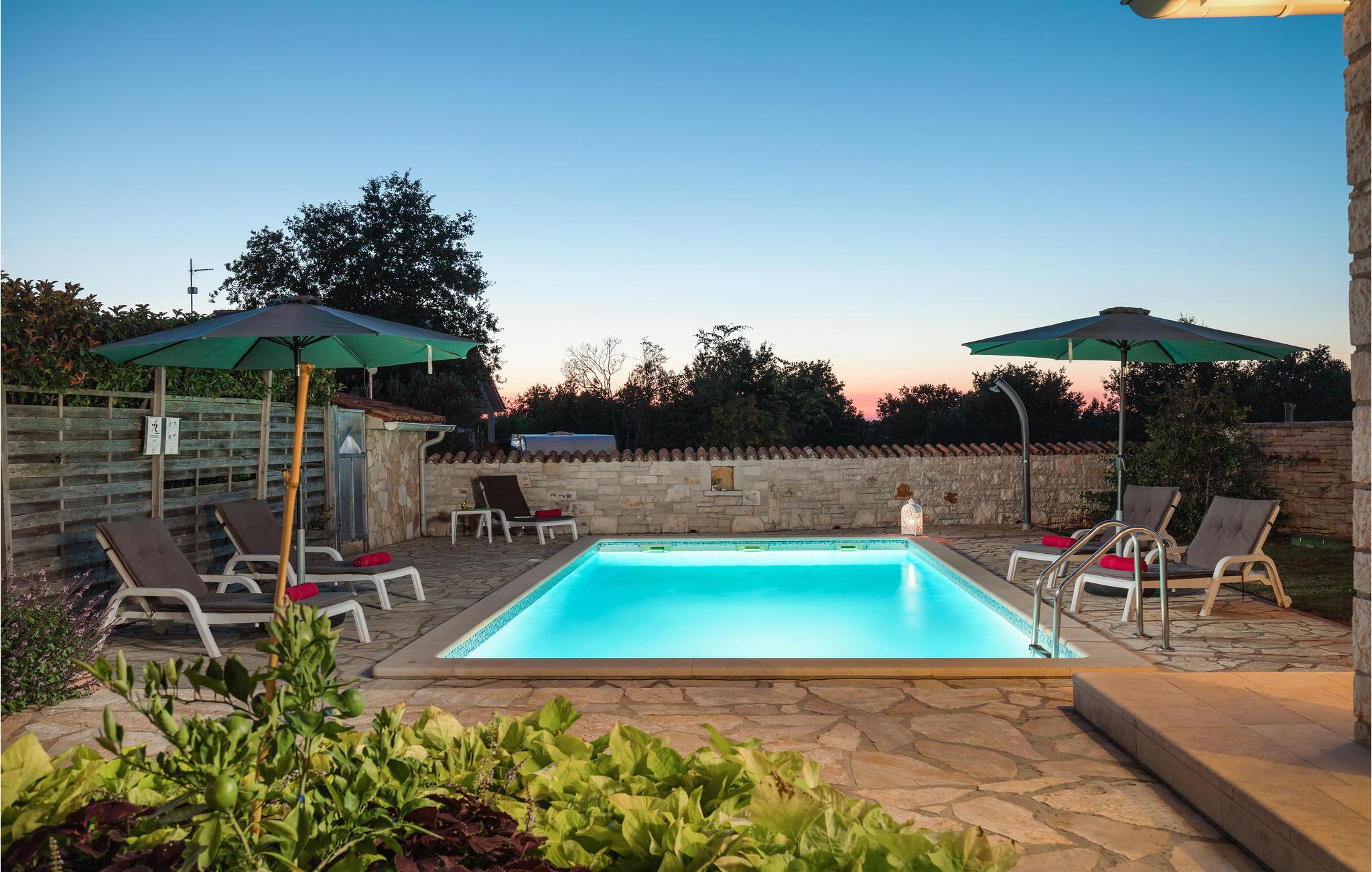Dette skønne feriehus, ligger i en pragtfuld have med grønt og blomster, som et helt ideelt valg til en vellykket ferie. Det ligger i den lille by Golubovo, ikke langt fra den maleriske fiskerby Fažana. Huset er moderne og godt udstyret med alt til en komfortabel og afslappet ferie. Svøm en tur i den skønne udendørs pool, lige når I har lyst på de varme sommerdage. Er ønsket det store hav og de dejlige kiesstrande, så er der et stort udvalg i Barbariga. I kan cykle ad velanlagte stier til Fazana, med et stort udvalg af fiskerestauranter hvor råvarerne er friske og vinene helt lokale. Gå en tur langs Fazanas kyst og nyd de skønne solnedgange bag Brijuniøerne.