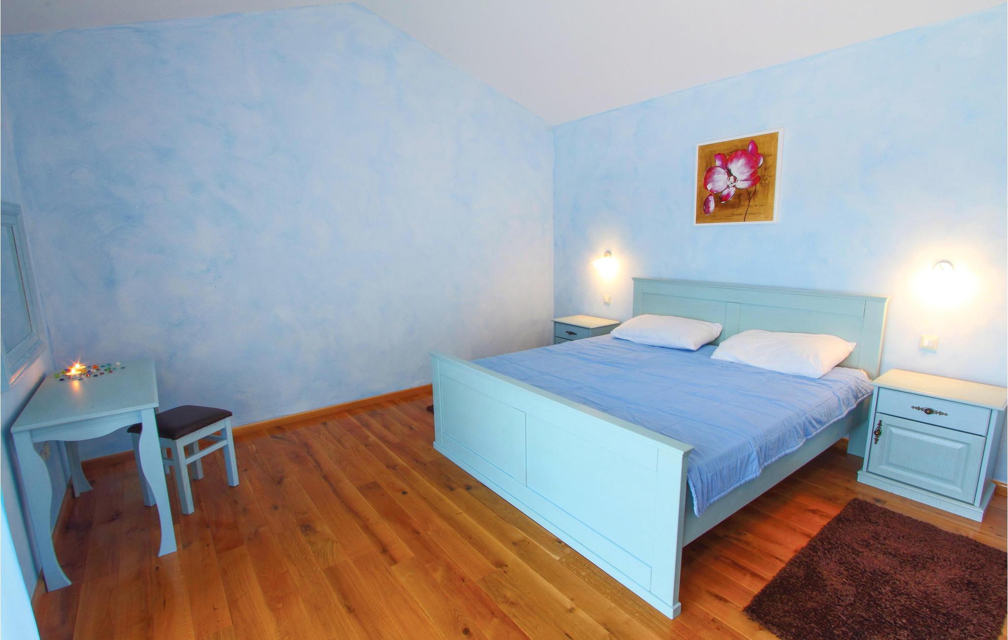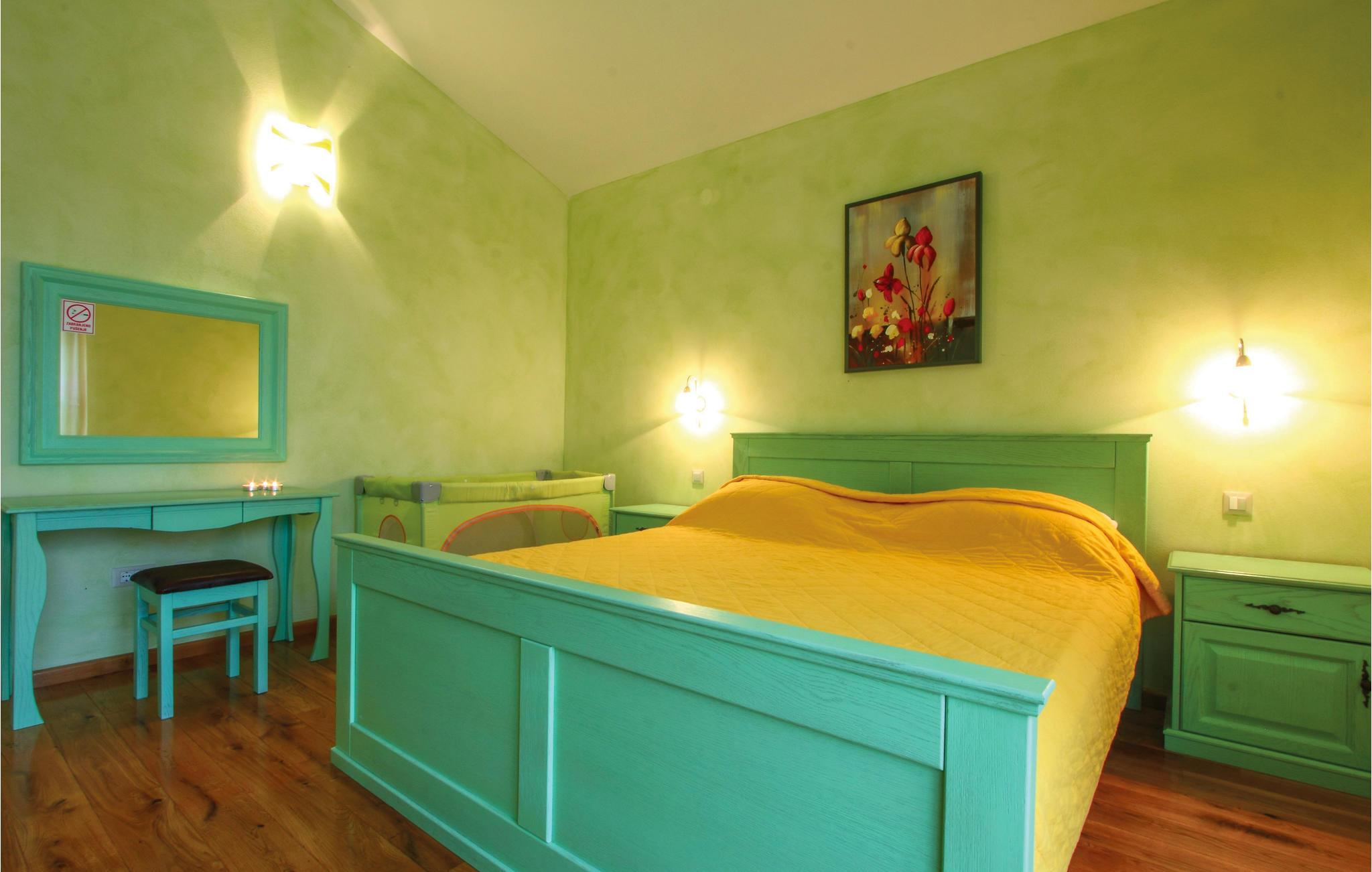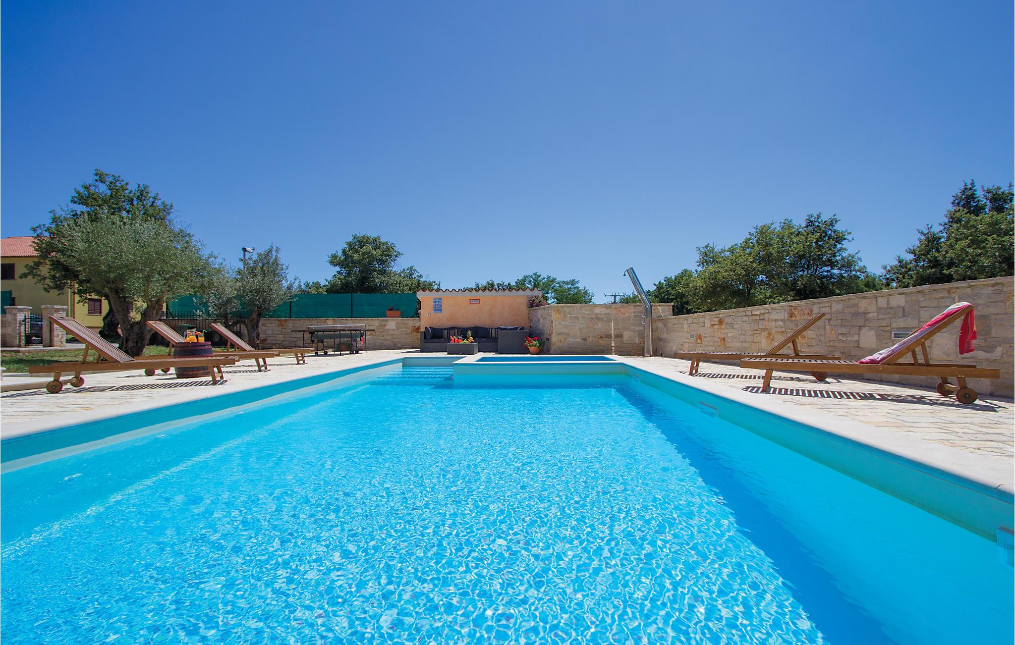 Kun få minutter i bil fra grusstrandene i Brijuni-øhavet ligger dette dejlige feriehus med pool. Med detaljer af sten og træ trylles Istriens autentiske miljø frem. Huset er komplet opvarmet og klimatiseret. Det trådløse internet holder jer underrettede om de sidste nyheder også i ferien. Vidunderligt flyder det indvendige og det udvendige område sammen til en enhed via den dejlige, overdækkede terrasse med adgang til den udendørs pool. Her er der også en whirlpool til 6 personer. Ejerne har anlagt haven godt til små børn, men der er også plads til Badminton eller volleyball. Bygningens stueetage består af en stor spisestue med kamin, spisestue og køkken, badeværelse med hydromassage-badekar til to personer og et soveværelse med eget bad (egen adgang til terrassen). I overetagen ligger tre yderligere soveværelser med deres egne terrasser og badeværelser en suite. Terrassen har havudsigt. I kun 7 km’s afstand når I Vodnjan, hvor I kan finde alle de nødvendige services og produkter.