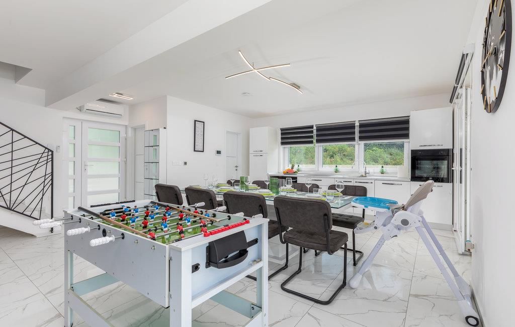 Kom til Istrien med venner eller familie i dette fantastiske feriehus til en skøn ferie på den smukke halvø, Istrien. Her bydes I velkommen i lyse og velindrettede rum med masser af komfort. I kommer bestemt heller ikke til at kede jer, der er nemlig masser af aktiviteter for hele familien. Tilbring mange gode timer ved den skønne pool, hvor I kan solbade på liggestolene, eller nyd det rummelige hus, som byder på mange aktiviteter såsom bordfodbold og dart. De små feriegæster kan også slå sig løs på den store græsplæne og trampolin.