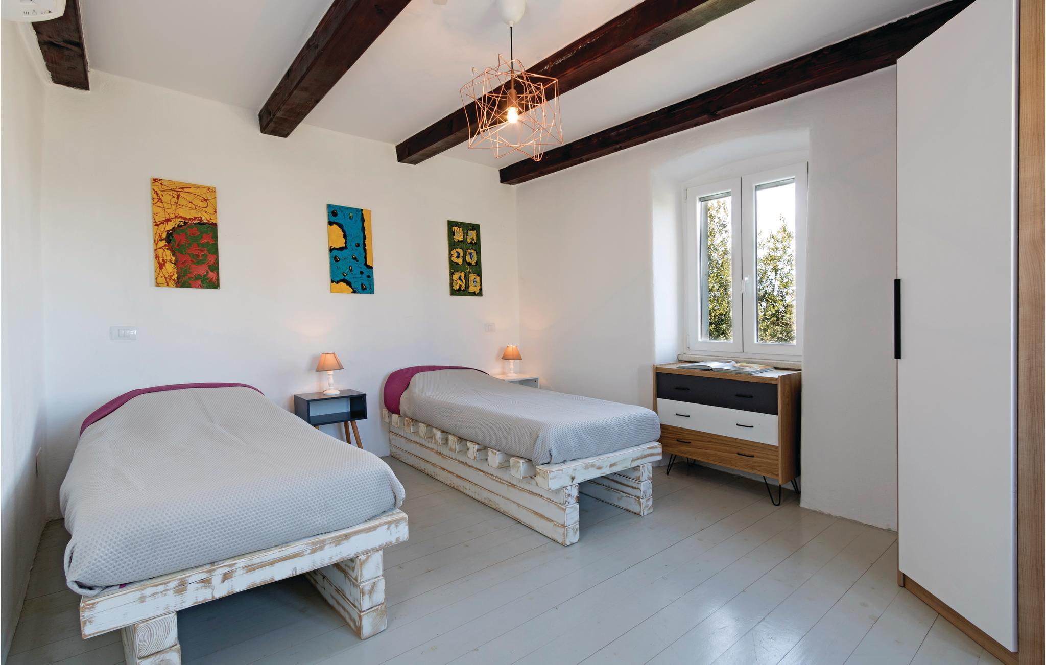 Det tager kun et kvarter at køre til den historiske by Pula, med sine mange bugter og strande. Laveste loftshøjde på øverste etage med skrå vægge er ca. 160 cm.