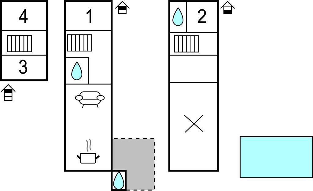 Soveværelse (nr. 3) - 1 Soveplads. (Enkeltseng(e)). 2 Sovepladser. (Dobbeltseng(e)).