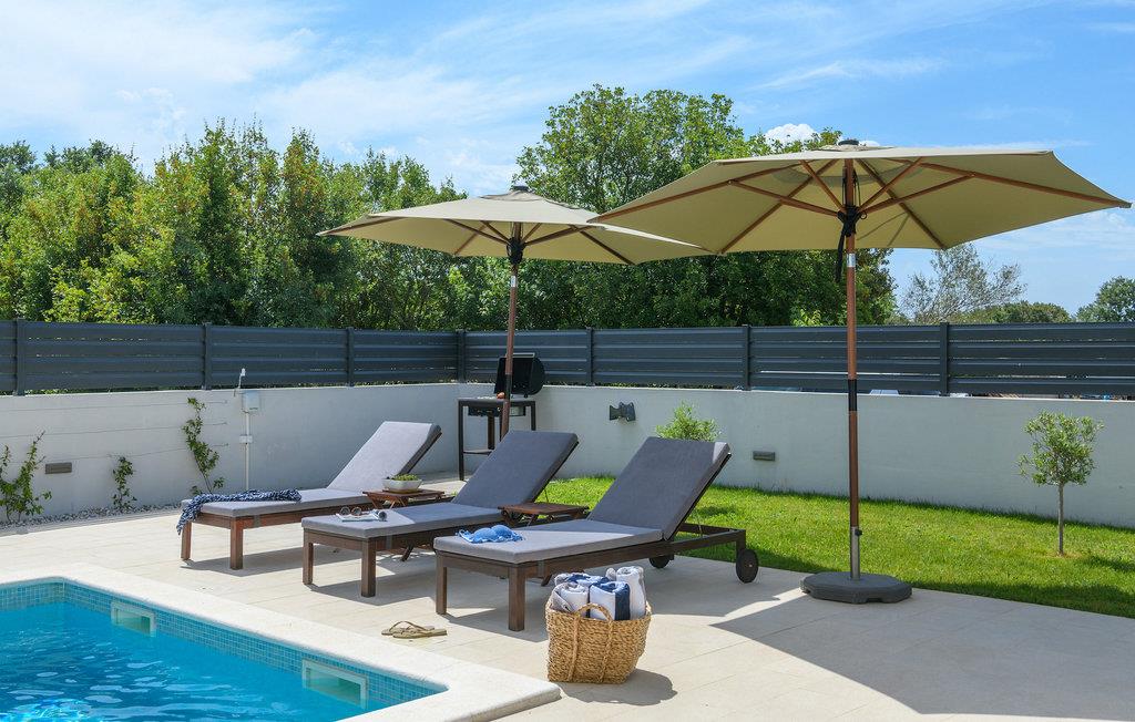 I den udvendige del af villaen finder du en privat pool, som vil give den nødvendige forfriskning på varme sommerdage. Slap af på liggestolene, der er til rådighed omkring poolen, og nyd den naturskønne udsigt over den istriske natur!