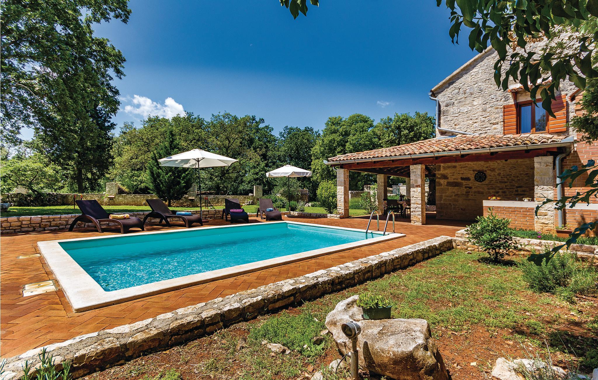 Hold ferie i denne lejlighed i den lille landsby Klarici, mellem Vodnjan og Svetvincenat. Dette feriehus, ideelt til en familie, er konciperet med megen omhu og nænsomhed. Fra den overdækkede terrasse har I en skøn udsigt over poolen. Lad hverdagen bag jer, og nyd duften af middelhavsplanterne, oliventræernes grønne farve og de originale mure. Smag istriske specialiteter i konobaen i nærheden, og se på den historiske by Pula. hele sommeren er der arrangementer i Pula, til de mest populære hører de under fri himmel på amfiteatret.