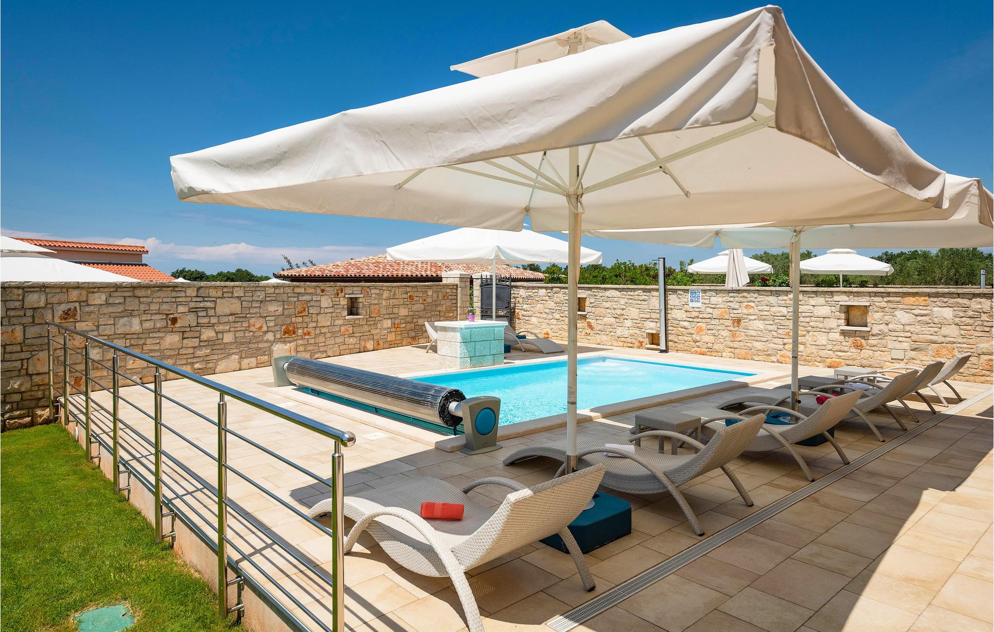 Rummene er stilfuldt udstyrede og har al nødvendig komfort, fx fjernsyn og klimaanlæg i alle værelser. Haven er omgivet af en typisk kroatisk stenmur og har en pool (der kan opvarmes) med vandfald, hydromassage og saltvand. Et badeværelse har badekar med vandmassage.