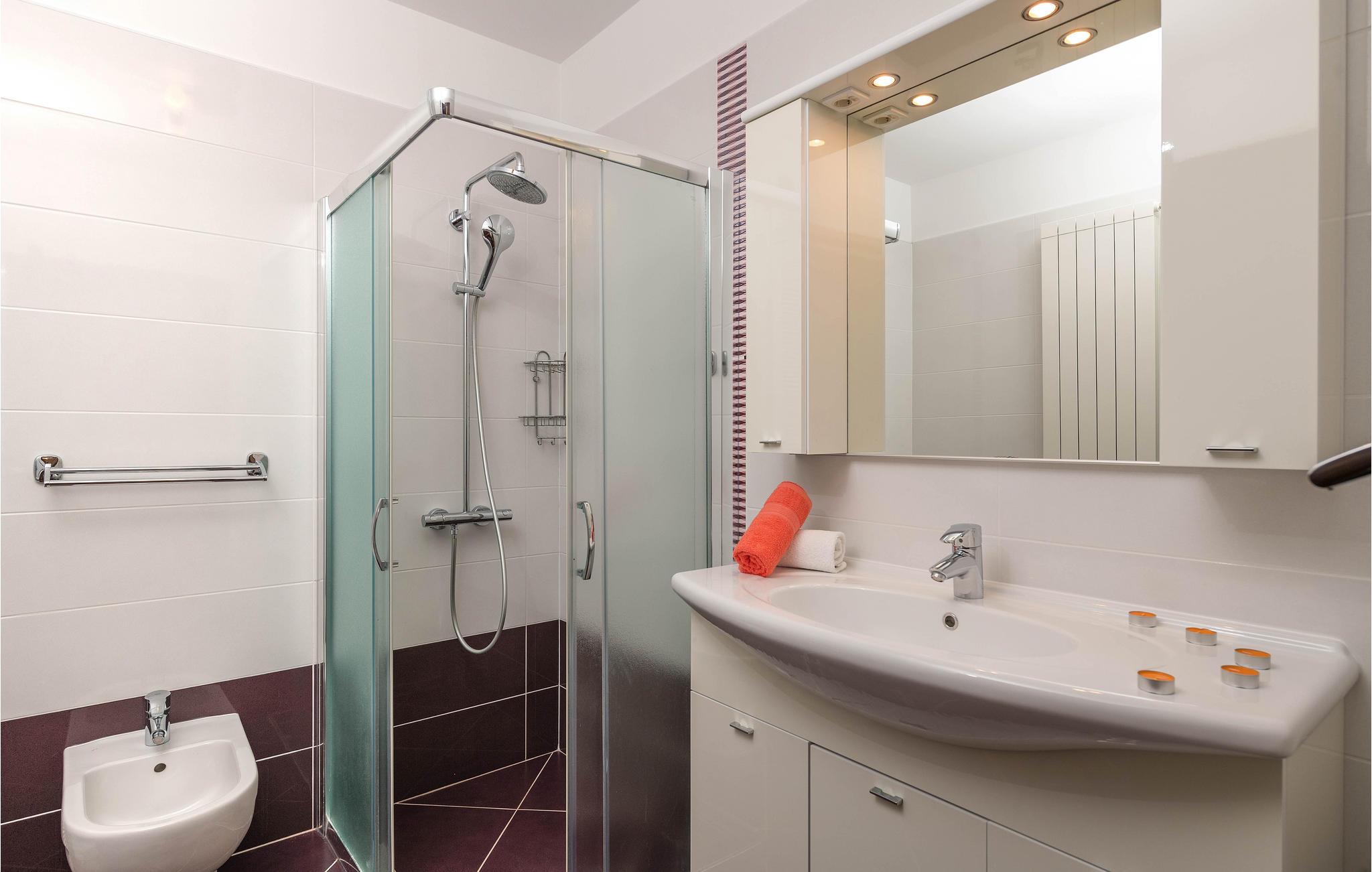Badeværelse (nr. 1) - WC. Varmt og koldt vand. Bruser og badekar