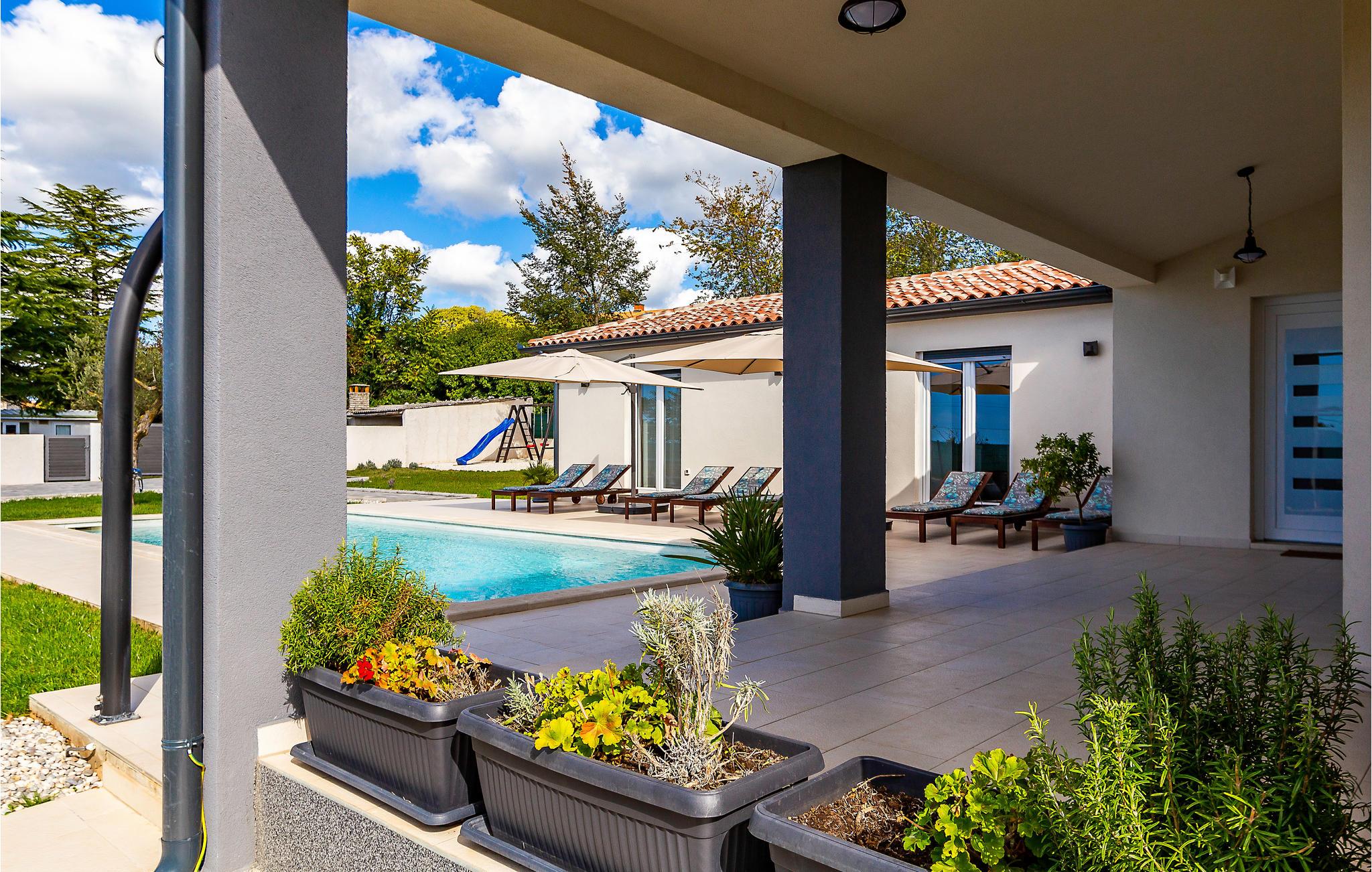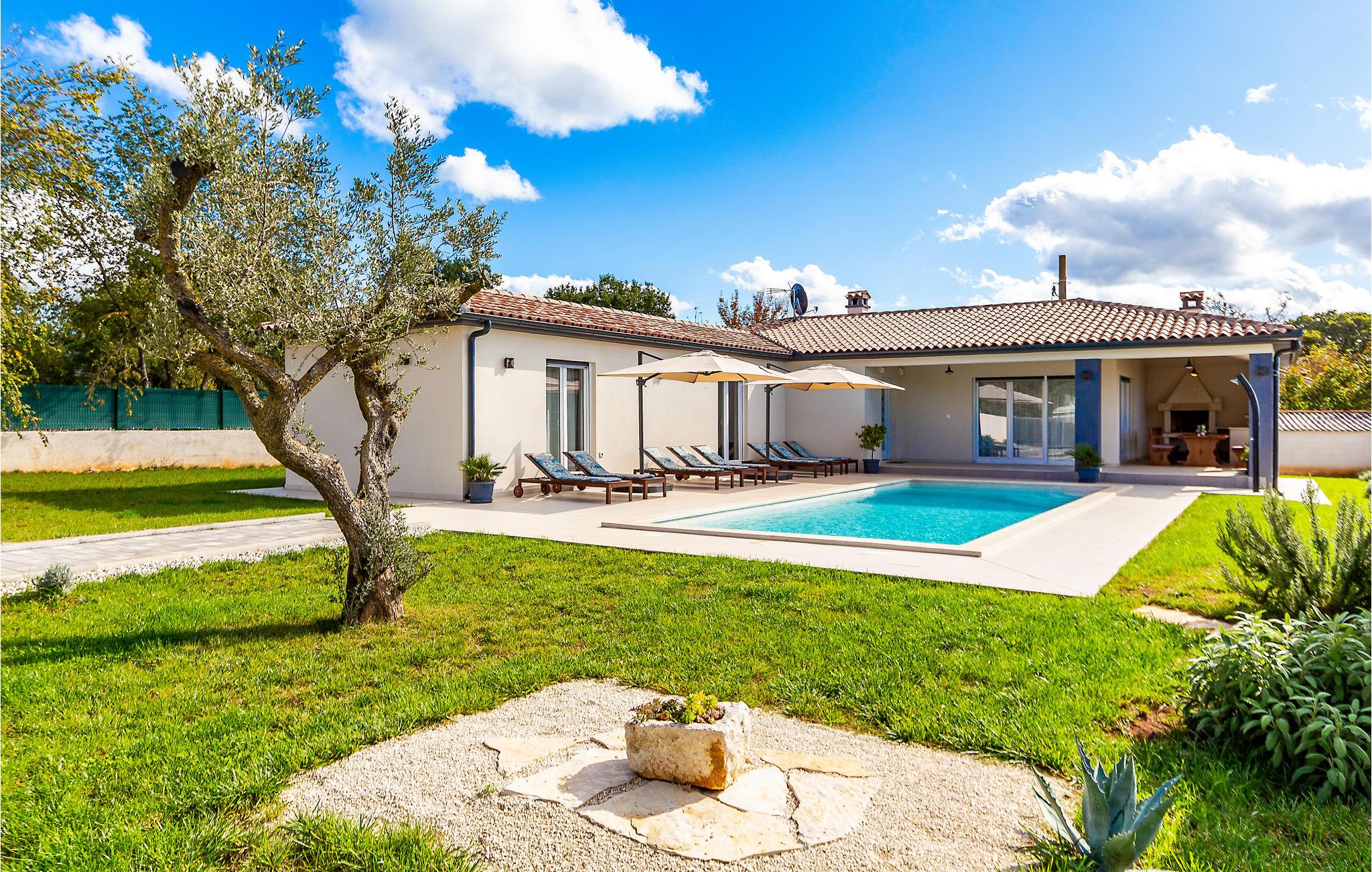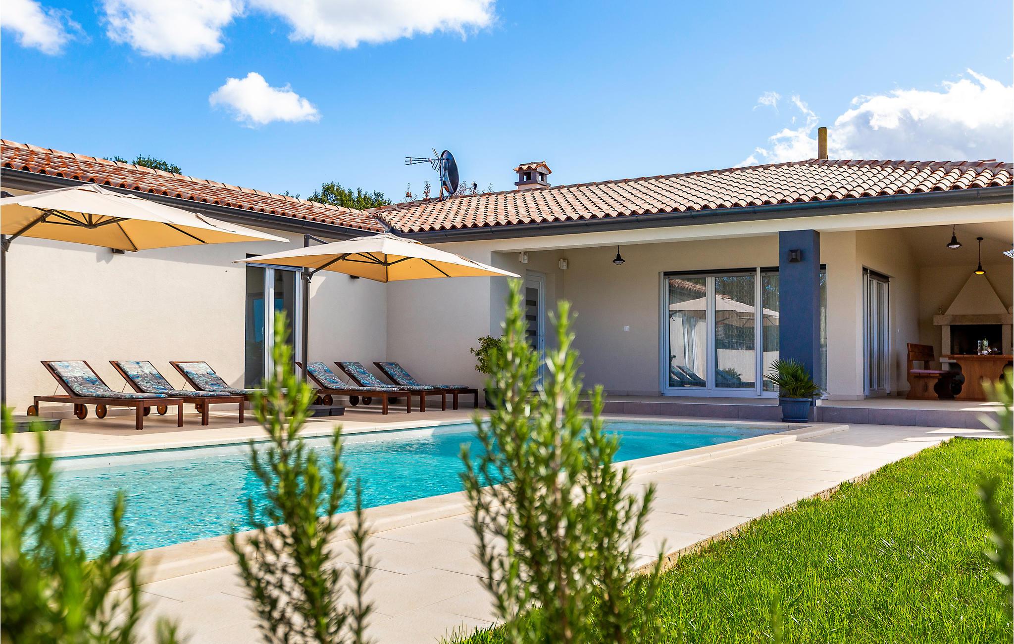Dette ekstraordinære feriehus med pool ligger i den lille by Smoljanci mellem de middelalderlige byer Svetvincenat og Bale.