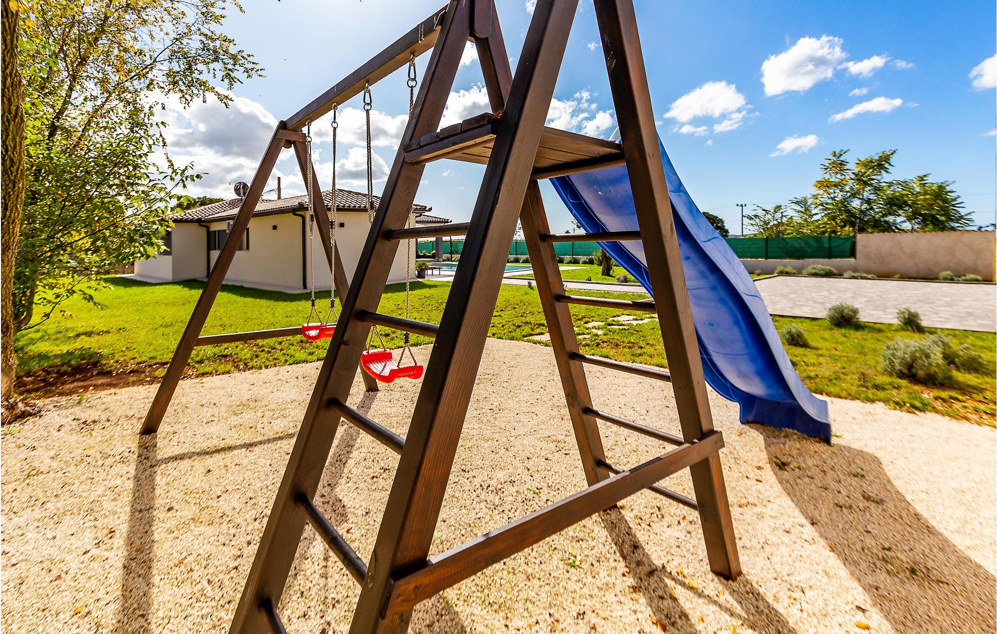 Slap af under sommerens sol, glem alt om travlhed, og oplev en afslappende ferie i dette hus med dets smagfulde interiør og velholdte udendørsarealer. Den indhegnede ejendom, legeredskaber til børn og sommerkøkken er yderligere pluspoint. Solbad ved den store pool og forkæl jer selv med en forfriskning, der nok skal være tiltrængt med området lune temperaturer.