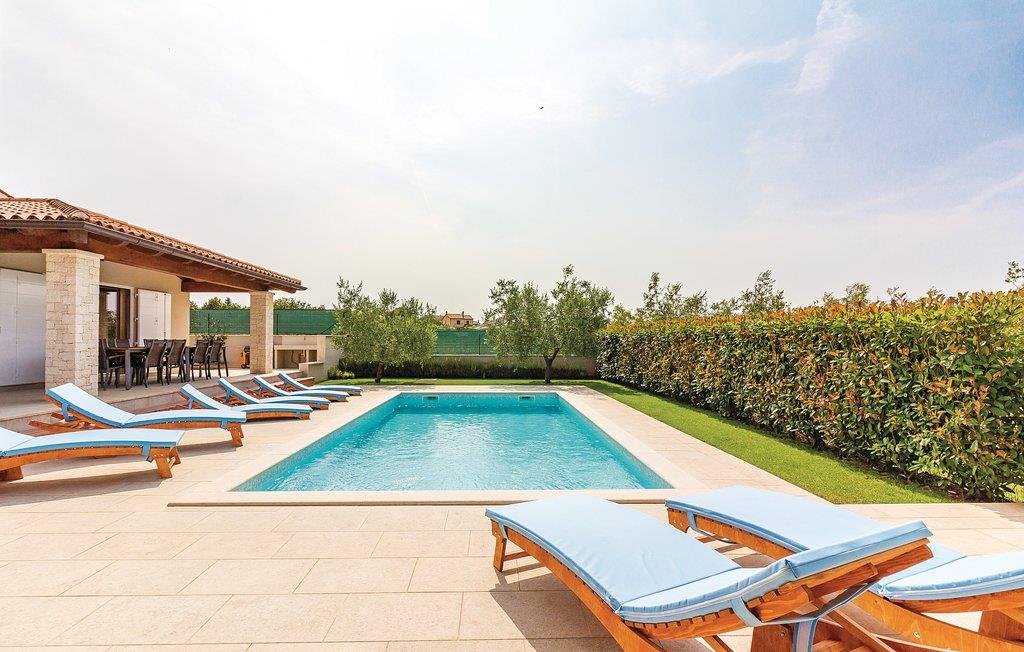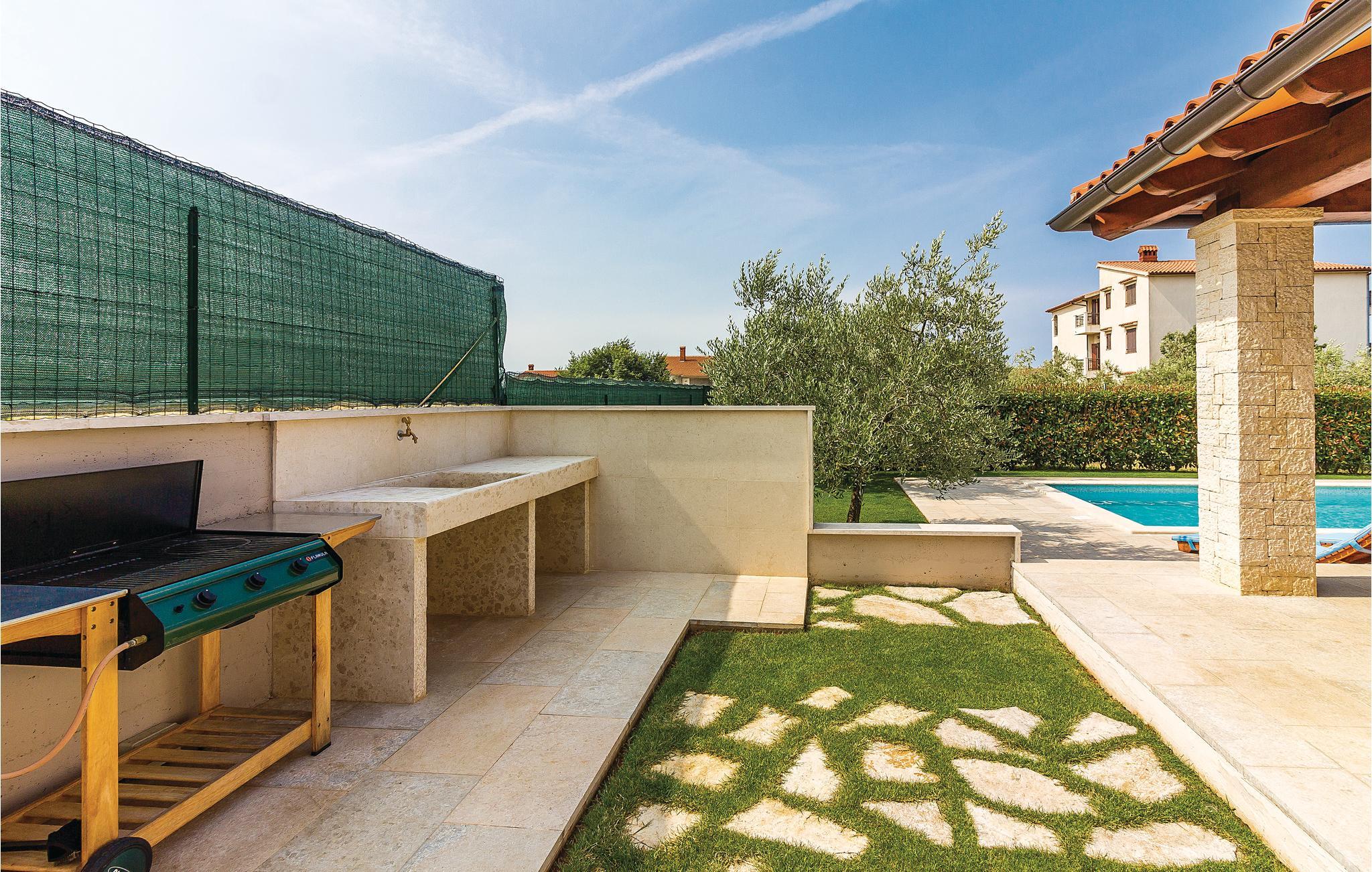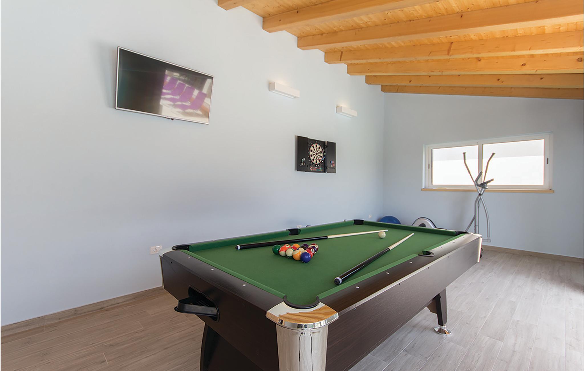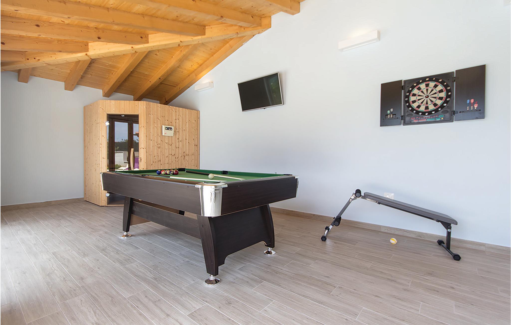 Vil I holde en luksuøs ferie i et komfortabelt feriehus, så har I fundet det her. Dette hus rummer fire soveværelser med badeværelse en suite, en spisestue, køkken og en rummelig stue med billardbord. Husets grund er komplet indhegnet af en mur, så her kan jeres børn lege trygt med de forskellige legeredskaber der er i haven. På husets grund er der både en dejlig pool samt en terrasse med et praktisk udendørs køkken og en grill. Her er også både fitnessrum og en sauna. Besøg nationalparken Brijuni, som i kan komme til med båd fra Fazana og se mumierne i St. Blasiuskirken i Vodnjan. Ved siden af huset ligger en tennisbane, en skaterpark samt forskellige former for udendørs sportsudstyr. I Glavani er en adrenalinpark.