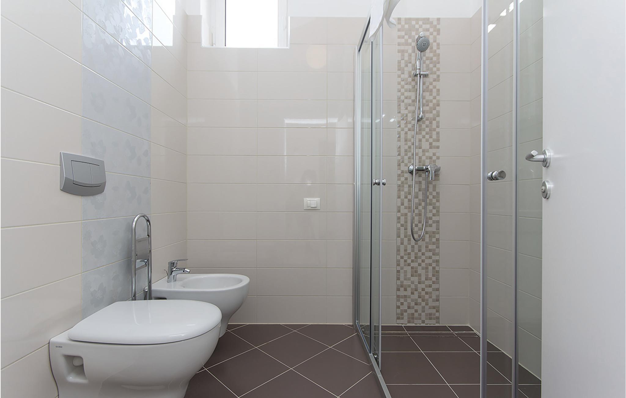 Badeværelse (nr. 1) - WC. Varmt og koldt vand. Bruser og badekar
