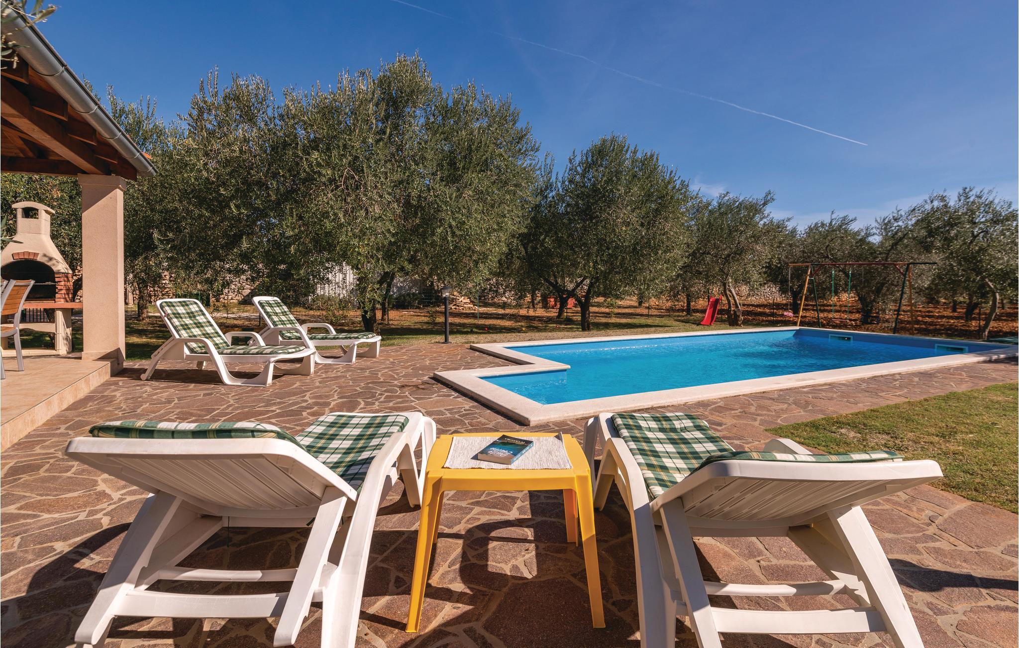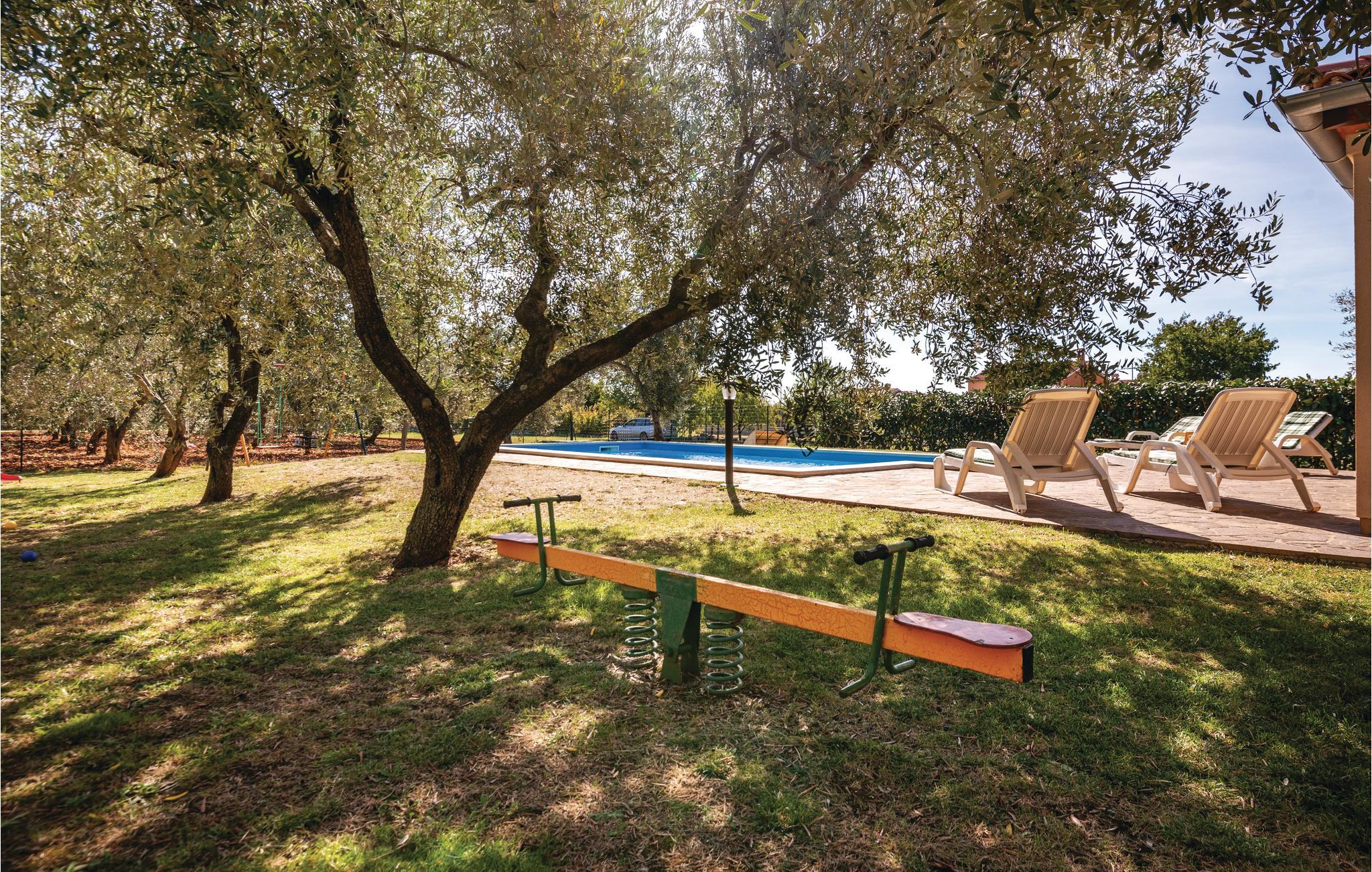 Dette yderst komfortable feriehus ligger på den sydlige del af halvøen. I huset er der et veludstyret køkken og en rummelig stue, med udgang til den store overdækkede terrasse. På de varme sommermåneder indbyder poolen til en forfriskende svømmetur. Husets egen olivenlund giver en charmerende stemning og huset er indrettet med komfortable møbler til en afslappet ferie. På den lukkede grund er der en overdækket parkeringsplads. Husets venlige ejer bor på nabogrunden. I området er der mange gode restauranter og kulturelle arrangementer.