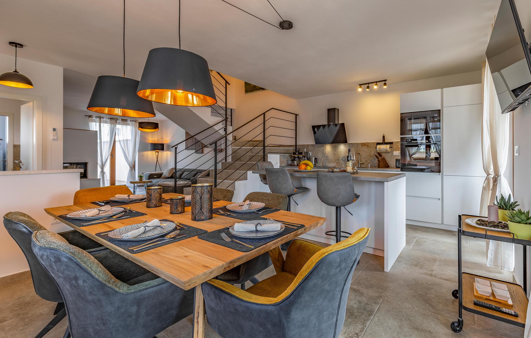 Velkommen til denne dejlige villa, hvor I får rigelig med kvadratmeter og komfort til en ferie med den udvidede familie eller en større venneflok. Huset er virkelig flot indrettet over to etager med materialer af høj kvalitet, bløde møbler og et moderne køkken, hvor familiens kokke kan kræse om madlavningen, mens andre daser i sofaen eller spiller på konsollen. Efter aftensmaden kan I hive brætspillene frem, smække en god film på tv'et og nyde en lækker snack, mens I lægger planer for de kommende dage.