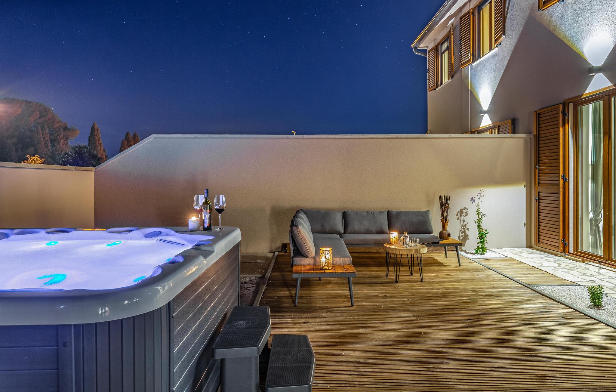 På de varme dage, og dem er der mange af her, kan I mødes i haven som det første til en lækker morgenmad inden dagens første tur i poolen. Fra altanen på første sal kan I nyde udsigten helt ud til havet, og ud på eftermiddagen kan I stege nogle saftige bøffer på grillen og nyde en kølig drink. Og måske I skal forkæle jer selv med lidt lækker wellness i saunaen eller spabadet?