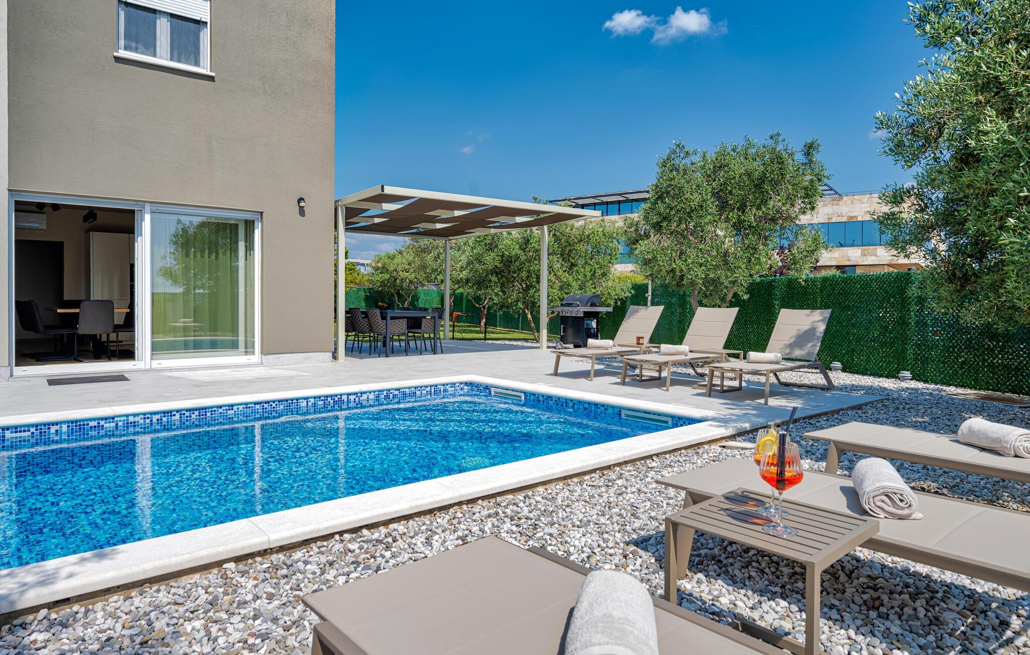 På de varme dage kan I nyde solen fra morgen til aften i den skønne have og køle jer dejligt af i poolen. Læg jer til tørre i en liggestol, lad børnene gå på opdagelse i de mange legeredskaber og tænd op i grillen, hvor I kan stege gode bøffer og nyde maden under den istriske aftensol.