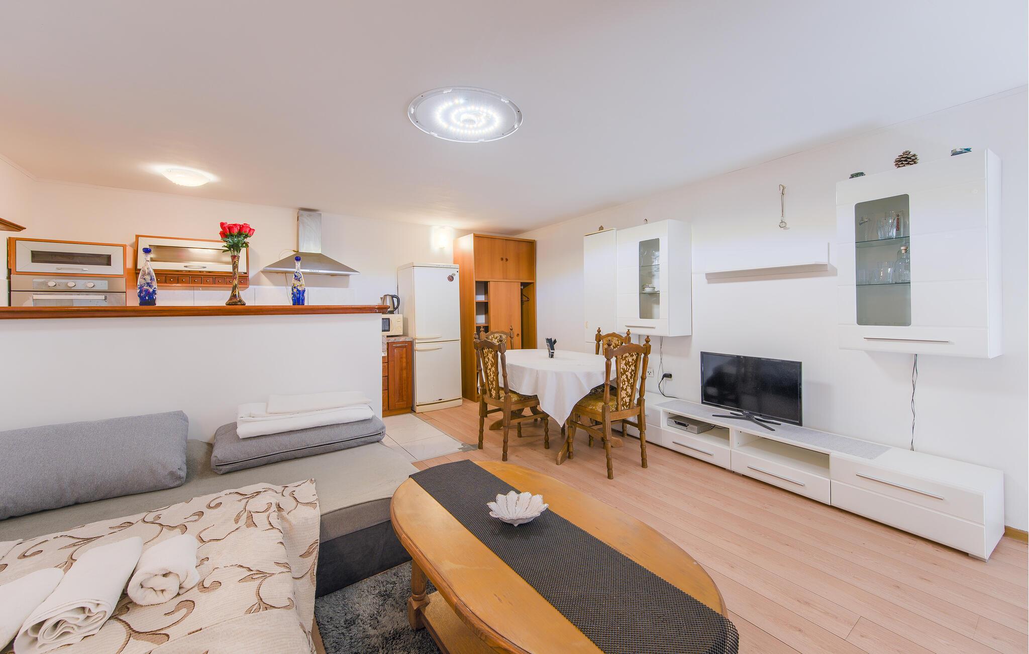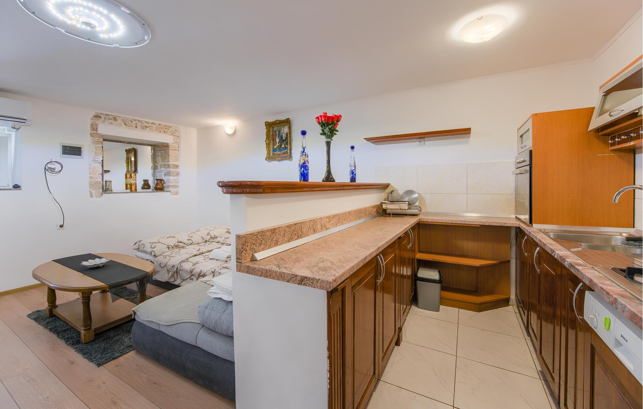 Glæd jer til en sjov ferie for to i denne charmerende ferielejlighed. Denne praktisk indrettede lejlighed i stueetagen tilbyder et hyggeligt tilflugtssted i hjertet af Vodnjan, mens I bytter hverdagen ud med spændende udflugter gennem den charmerende region. Her kan I trylle lækre retter frem med friske råvarer fra markedet, planlægge jeres aktiviteter over afslappede måltider og slappe af efter en lang dag med et brætspil eller en god bog. Udforsk nabolaget på en morgentur og fyld op med lækre ingredienser til morgenmad. Om aftenen kan I finde et hyggeligt sted i den gamle bydel for at absorbere den livlige atmosfære med et glas vin. Besøg de venetianske paladser og den imponerende Sankt Blasiuskirke, tag på cykelture gennem maleriske olivenlunde, besøg berømte vingårde og prøv lokale specialiteter direkte fra producenten. Beundre det imponerende romerske amfiteater i Pula, svøm på strandene i Fažana eller tag en bådtur til Brijuni Nationalpark.