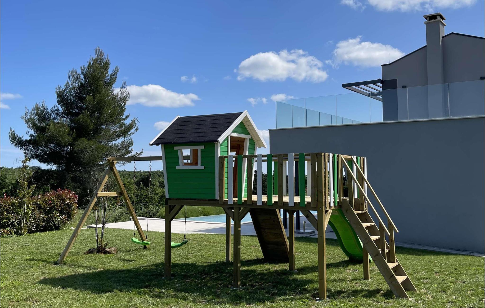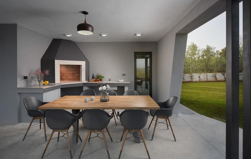 Den moderne Villa Infinity ligger i den istriske landsby Majmajola nær Vodnjan og Pula. Villaens fantastiske beliggenhed gør den til det perfekte valg for dem, der har desperat brug for en pause fra deres travle livsstil, men samtidig har talrige aktivitets- og underholdningsmuligheder inden for rækkevidde. Den fuldt klimatiserede byvilla Infinity med gulvvarme og et boligareal på 250 m2 har 4 rummelige soveværelser, hvoraf 3 har dobbeltsenge og et med to enkeltsenge. Alle værelser har også et fjernsyn. Villaen har desuden 5 veludstyrede badeværelser med bruseniche og separat toilet. Et fuldt udstyret moderne køkken med spiseplads og en stue med sofa gør denne villa ideel til 8 gæster. Villaens rummelige overdækkede terrasse har et udendørs spisebord med udsigt over den imponerende og storslåede infinity-pool (68 m²), hvor du kan nyde en forfriskende svømmetur i fuldstændig privatliv på ethvert tidspunkt af dagen eller natten. For dem, der søger afslapning, er en Xbox-konsol inkluderet i villaens underholdningstilbud, mens du kan slappe af og slappe af i saunaen. Den fuldt indhegnede 1800 m2 gård byder på 3 private parkeringspladser. Vælg Villa Infinity til din ferie og fordyb dig i skønheden i Majmajola og byen Vodnjan, hvis middelalderlige kerne er fuld af charmerende gyder, stenfacader og talrige kirker med slående detaljer i renæssancestil, gotisk-venetiansk og barokstil. Forskellige arrangementer finder sted i Vodnjan i sommersæsonen. Cykling, ridning, golf, beachvolley, tennis og dykning er blot nogle af de mange aktiviteter, du kan nyde under dit ophold. Byerne Pula og Rovinj, der ligger nær Vodnjan, vil også glæde dig med deres rige turist- og gastronomiske tilbud. Kom og se selv! Kæledyr er tilladt på denne ejendom efter ejerens skøn eller mod et gebyr. Bemærk venligst, at denne ejendom kun accepterer ungdomsgrupper eller polterabender mod betaling af et refunderbart depositum. En ungdomsgruppe på denne ejendom består af personer på 21 år eller derunder. Er I en ungdomsgruppe eller et polterabend, vil I blive bedt om at betale depositum ved ankomst. Ethvert beløb, der er nødvendigt for at reparere eventuelle skader på ejendommen forårsaget af dig under dit ophold, vil blive trukket fra depositumet og efterfølgende returneret til dig.