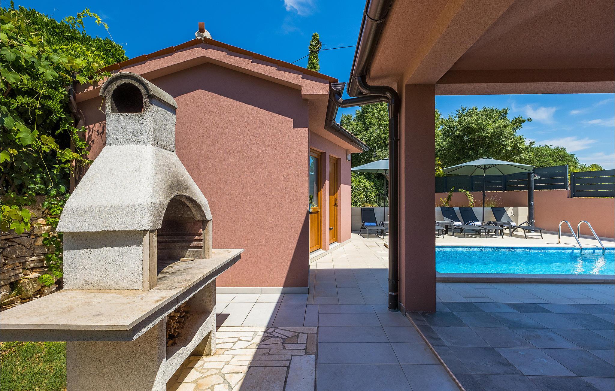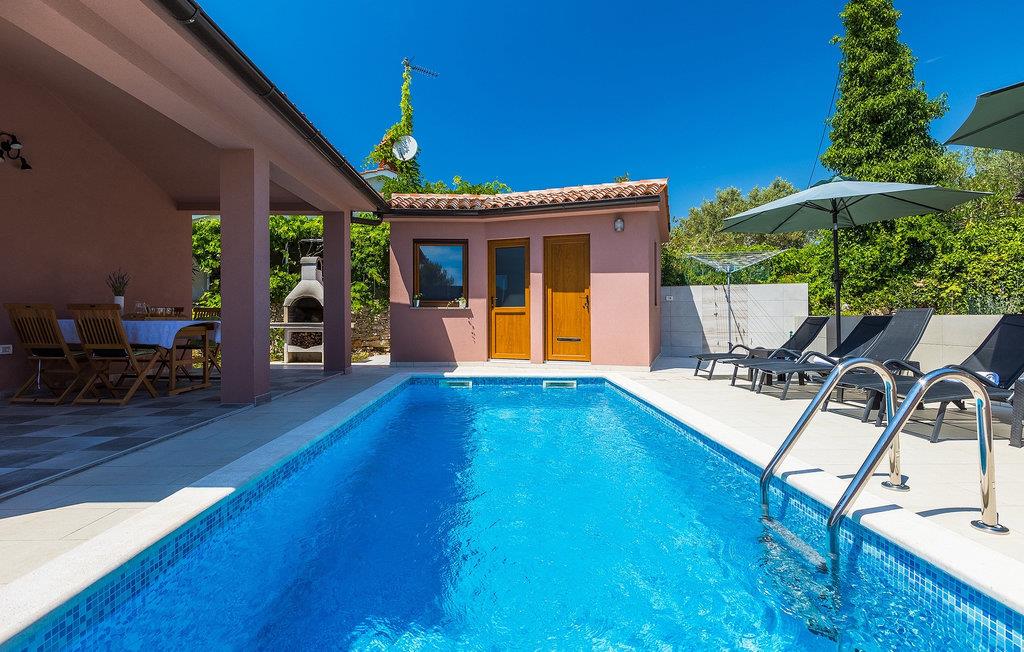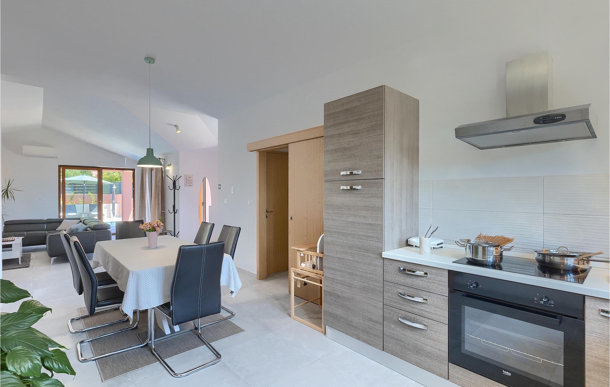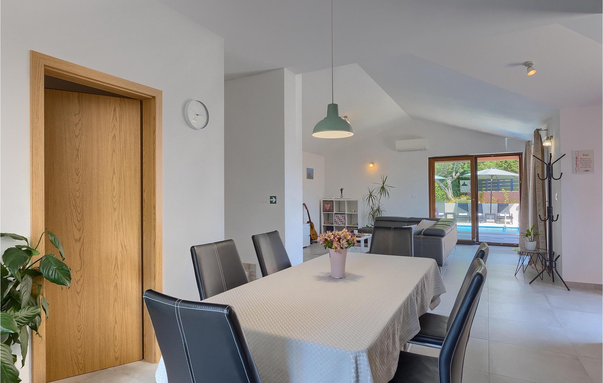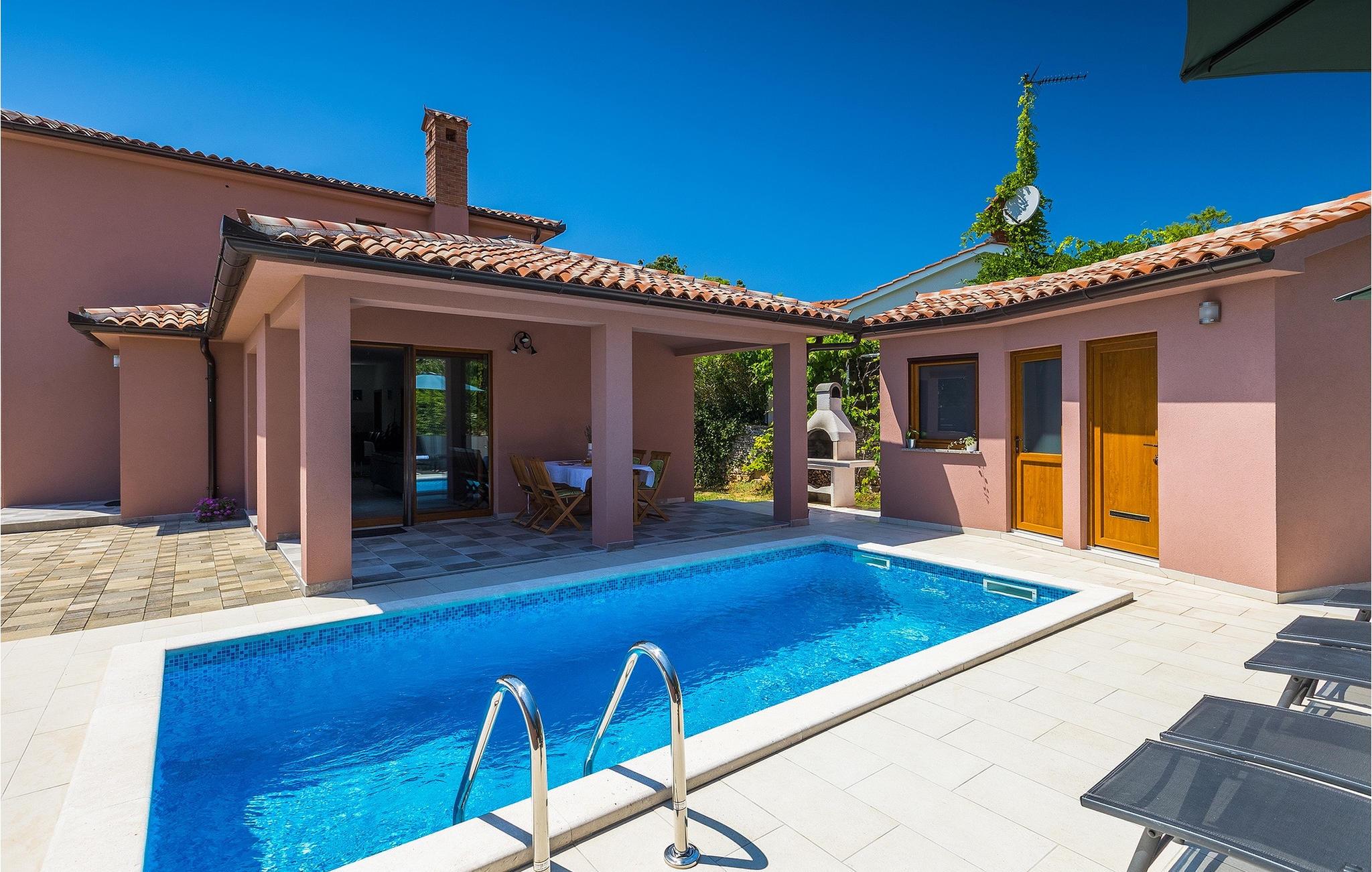 Denne dejlige 3-værelses villa ligger i et lille sted Peroj, ikke engang en kilometer væk fra den nærmeste stenstrand og i nærheden af Pula og dets berømte amfiteater. Det tilbyder overnatning til 6 gæster og har en privat pool til at friske op på solrige dage. Når du træder ind i villaen fra poolsiden og den overdækkede terrasse, finder du et åbent rum opdelt i en stue med SAT-TV, en spiseplads og et veludstyret køkken, der giver alt til at tilberede dine måltider under dit ophold. Hvert soveværelse har en dobbeltseng, tv, aircondition og et ensuite badeværelse, som tilbyder komfort, der gør opholdet meget mere bekvemt og ubekymret. Villaen er helt lukket og har 2 private parkeringspladser.