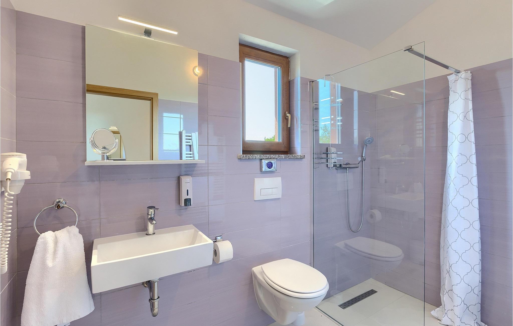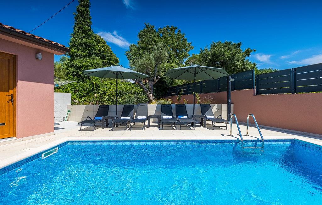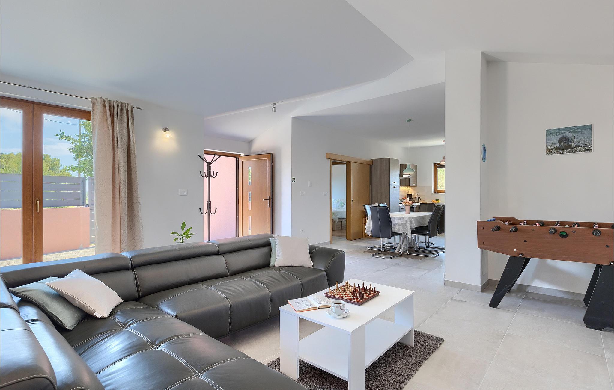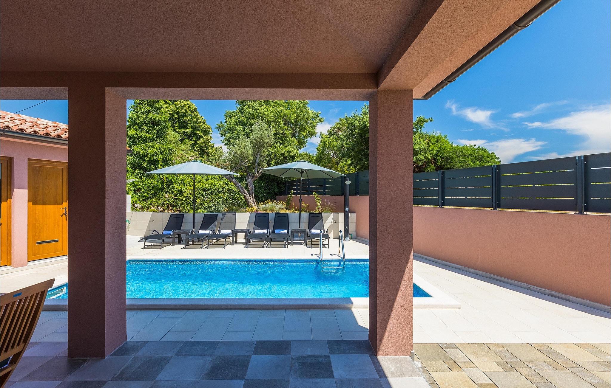 Denne dejlige 3-værelses villa ligger i et lille sted Peroj, ikke engang en kilometer væk fra den nærmeste stenstrand og i nærheden af Pula og dets berømte amfiteater. Det tilbyder overnatning til 6 gæster og har en privat pool til at friske op på solrige dage. Når du træder ind i villaen fra poolsiden og den overdækkede terrasse, finder du et åbent rum opdelt i en stue med SAT-TV, en spiseplads og et veludstyret køkken, der giver alt til at tilberede dine måltider under dit ophold. Hvert soveværelse har en dobbeltseng, tv, aircondition og et ensuite badeværelse, som tilbyder komfort, der gør opholdet meget mere bekvemt og ubekymret. Villaen er helt lukket og har 2 private parkeringspladser.