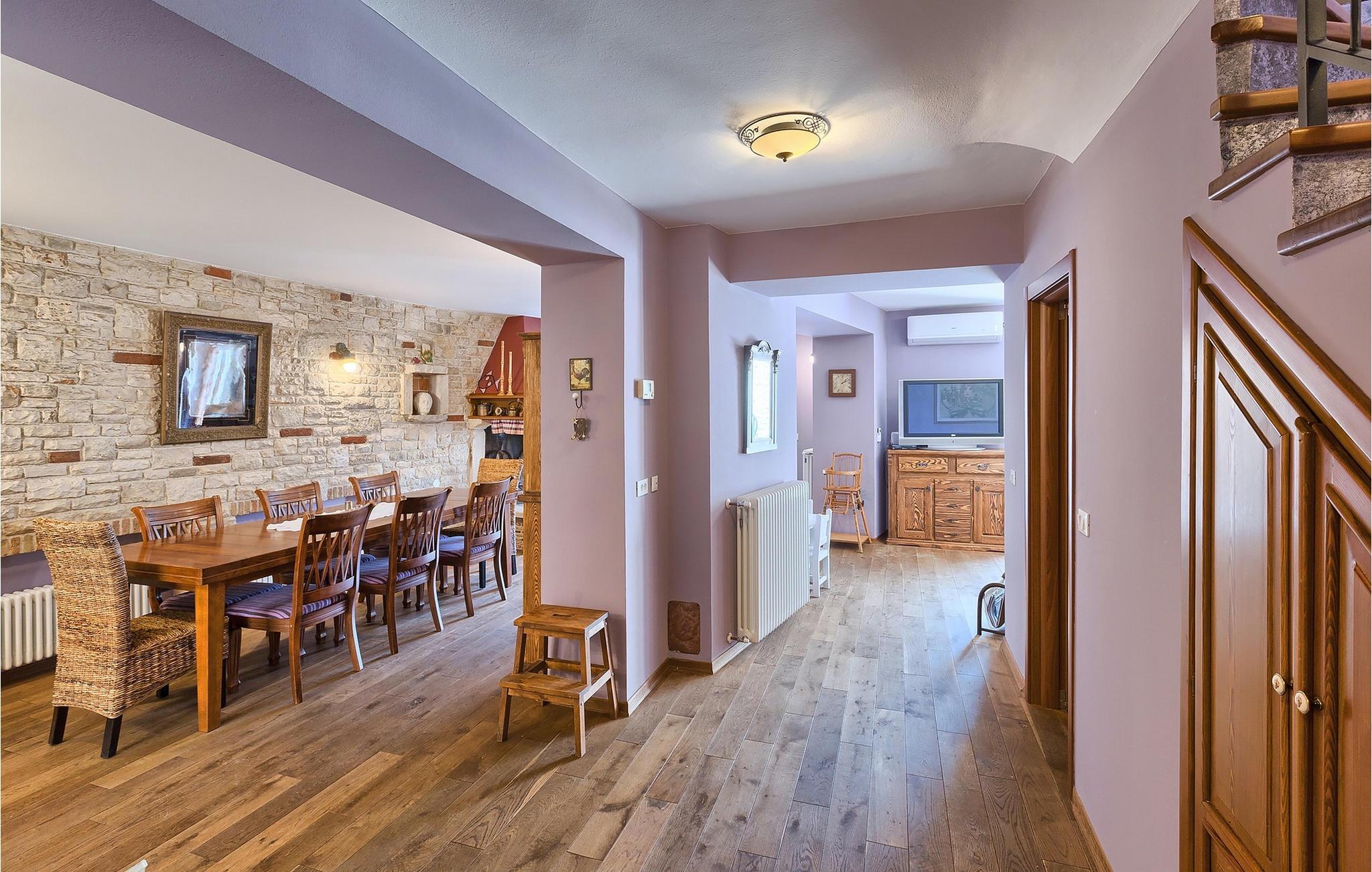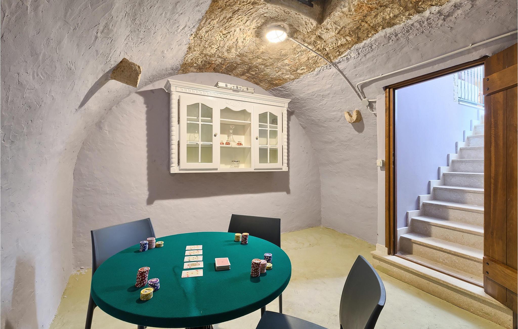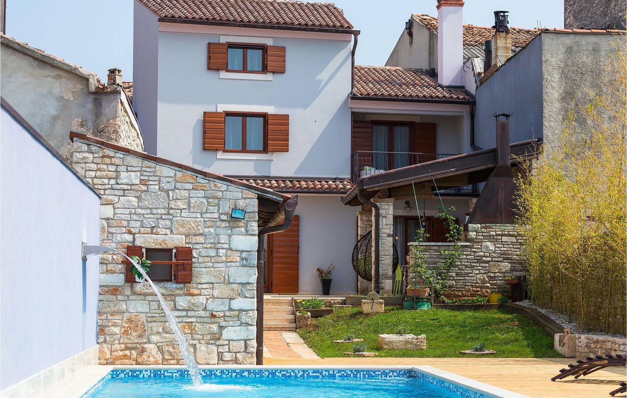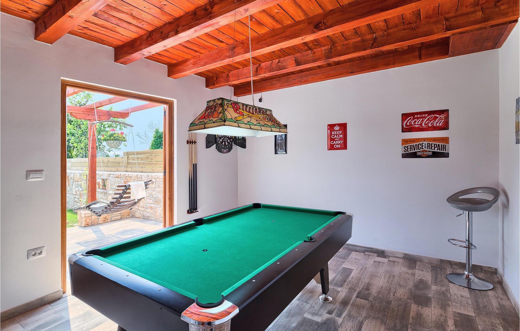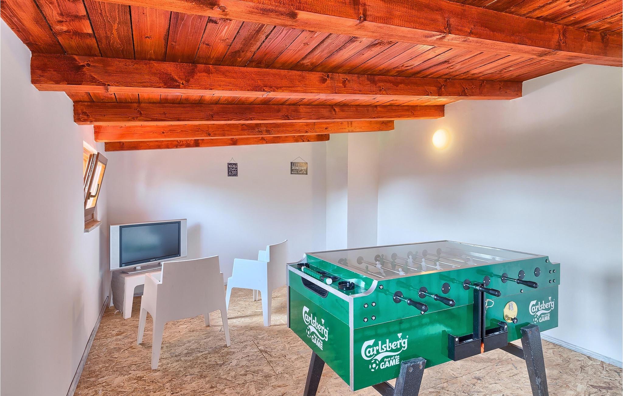 Den charmerende Villa San Rocco ligger i centrum af den lille historiske by Vodnjan, kun få minutter fra den største by i Istrien, Pula. Villaen er en perfekt blanding af rustikke og moderne elementer, der vil give dig en følelse af hjem. Med i alt 270 kvadratmeter boligareal byder den på plads til op til 8 personer og et kærligt møbleret interiør. Villa San Rocco er et restaureret traditionelt istrisk hus opdelt i 3 etager. Stueetagen består af et charmerende veludstyret køkken, en stor spiseplads med en kulgrill, en komfortabel stue og et badeværelse. Går du nedenunder finder du et spillerum med et pokerbord og en bordfodbold. Fire charmerende indrettede soveværelser har en dobbeltseng. 3 soveværelser er på 1. sal, et andet er på 2. sal. Villaens udendørs vil efterlade dig målløs. Foran villaen er der en stor terrasse med overdækket alfresco spiseplads og kulgrill, en udendørs jacuzzi og en indbydende privat pool. Lige rundt om hjørnet er en stor græsplæne, hvor du kan slappe af i hængekøjen, mens du læser din yndlingsbog. Derfra kan du også komme ind i villaen, hvor du finder et poolbord. Villaen er perfekt til familier, der søger en afslappende ferie fyldt med mange aktiviteter. Så gå ikke glip af denne mulighed og book Villa San Rocco. Villa San Rocco ligger i den lille charmerende by Vodnjan, kun en kort køretur fra den storslåede Pula. Smukke Vodnjan er en typisk middelalderby med interessant arkitektur. Hovedtorvet har en fantastisk barokkirke. Der er også flere restauranter og caféer. Udforsk de smalle gader med mange gallerier og atelierer. For nylig er Vodnjan blevet en af de vigtigste kulturbyer i Istrien, med begivenheder, der finder sted hver weekend. De nærmeste strande er Fazana og Medulin. Besøg også byen Pula, som er berømt for sit romerske amfiteater og mange andre kulturelle seværdigheder. Hvis du vil tilbringe din ferie i naturen, så sørg for at besøge Istriens bagland med dets mange cykel- og vandrestier eller tage en tur til Brijuni Nationalpark, som du kan nå med båd fra den lille fiskerlandsby Fazana. Sørg for at prøve traditionelle istriske retter såsom hjemmelavet pasta med trøfler, istrisk oksekød kaldet boskarin, ledsaget af et glas af det bedste Malvasia. Bemærk venligst, at denne ejendom kan acceptere ungdomsgrupper efter anmodning. Kontakt os venligst for at tjekke. En ungdomsgruppe på denne ejendom er en gruppe bestående af personer på 25 år eller derunder. Hvis du er en ungdomsgruppe [eller planlægger et polterabend], kan du blive bedt om at betale et ekstra depositum ved ankomst. Eventuelle beløb, der kræves for at reparere skader forårsaget af ejendommen af dig, vil blive trukket fra sikkerhedsdepositummet.
