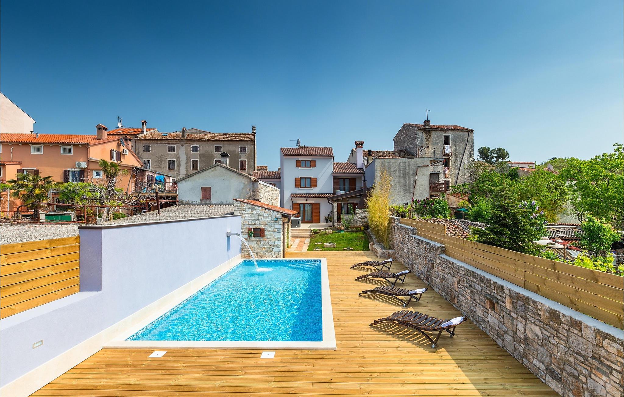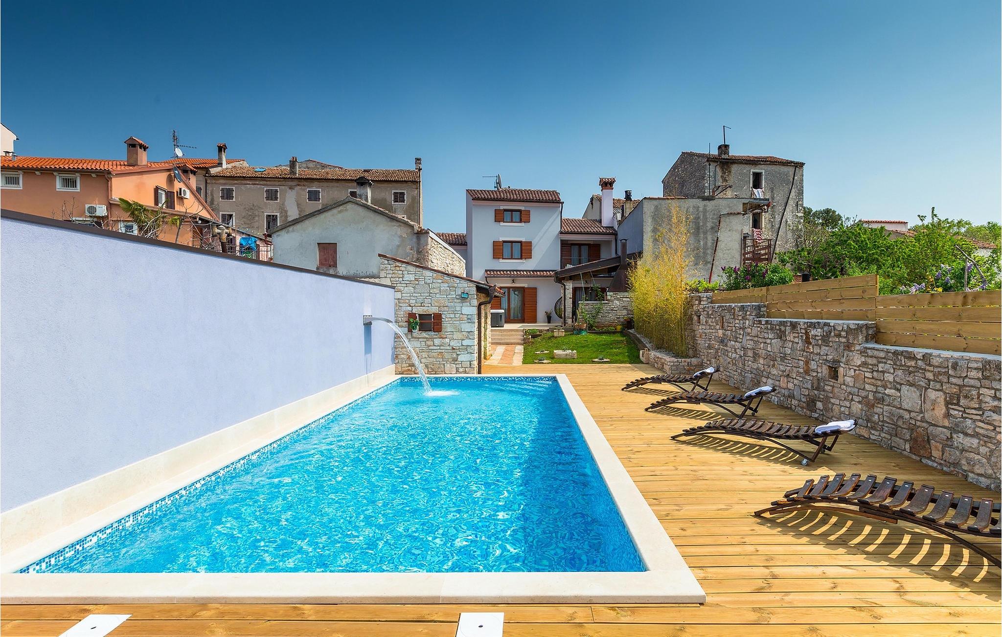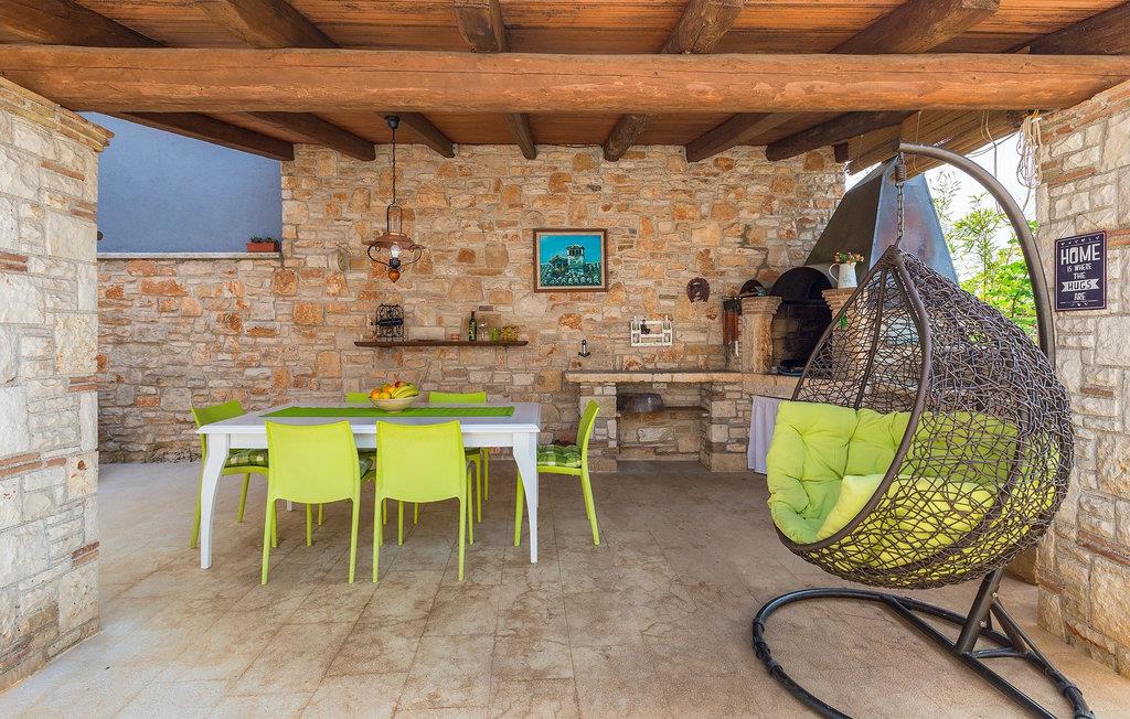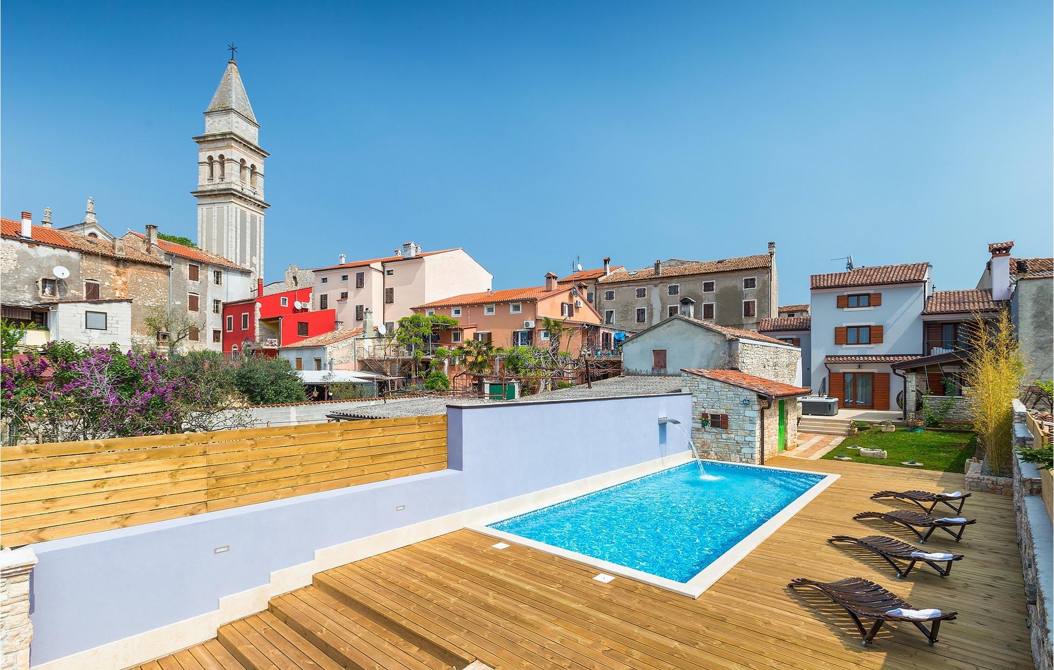 Den charmerende Villa San Rocco ligger i centrum af den lille historiske by Vodnjan, kun få minutter fra den største by i Istrien, Pula. Villaen er en perfekt blanding af rustikke og moderne elementer, der vil give dig en følelse af hjem. Med i alt 270 kvadratmeter boligareal byder den på plads til op til 8 personer og et kærligt møbleret interiør. Villa San Rocco er et restaureret traditionelt istrisk hus opdelt i 3 etager. Stueetagen består af et charmerende veludstyret køkken, en stor spiseplads med en kulgrill, en komfortabel stue og et badeværelse. Går du nedenunder finder du et spillerum med et pokerbord og en bordfodbold. Fire charmerende indrettede soveværelser har en dobbeltseng. 3 soveværelser er på 1. sal, et andet er på 2. sal. Villaens udendørs vil efterlade dig målløs. Foran villaen er der en stor terrasse med overdækket alfresco spiseplads og kulgrill, en udendørs jacuzzi og en indbydende privat pool. Lige rundt om hjørnet er en stor græsplæne, hvor du kan slappe af i hængekøjen, mens du læser din yndlingsbog. Derfra kan du også komme ind i villaen, hvor du finder et poolbord. Villaen er perfekt til familier, der søger en afslappende ferie fyldt med mange aktiviteter. Så gå ikke glip af denne mulighed og book Villa San Rocco. Villa San Rocco ligger i den lille charmerende by Vodnjan, kun en kort køretur fra den storslåede Pula. Smukke Vodnjan er en typisk middelalderby med interessant arkitektur. Hovedtorvet har en fantastisk barokkirke. Der er også flere restauranter og caféer. Udforsk de smalle gader med mange gallerier og atelierer. For nylig er Vodnjan blevet en af de vigtigste kulturbyer i Istrien, med begivenheder, der finder sted hver weekend. De nærmeste strande er Fazana og Medulin. Besøg også byen Pula, som er berømt for sit romerske amfiteater og mange andre kulturelle seværdigheder. Hvis du vil tilbringe din ferie i naturen, så sørg for at besøge Istriens bagland med dets mange cykel- og vandrestier eller tage en tur til Brijuni Nationalpark, som du kan nå med båd fra den lille fiskerlandsby Fazana. Sørg for at prøve traditionelle istriske retter såsom hjemmelavet pasta med trøfler, istrisk oksekød kaldet boskarin, ledsaget af et glas af det bedste Malvasia. Bemærk venligst, at denne ejendom kan acceptere ungdomsgrupper efter anmodning. Kontakt os venligst for at tjekke. En ungdomsgruppe på denne ejendom er en gruppe bestående af personer på 25 år eller derunder. Hvis du er en ungdomsgruppe [eller planlægger et polterabend], kan du blive bedt om at betale et ekstra depositum ved ankomst. Eventuelle beløb, der kræves for at reparere skader forårsaget af ejendommen af dig, vil blive trukket fra sikkerhedsdepositummet.