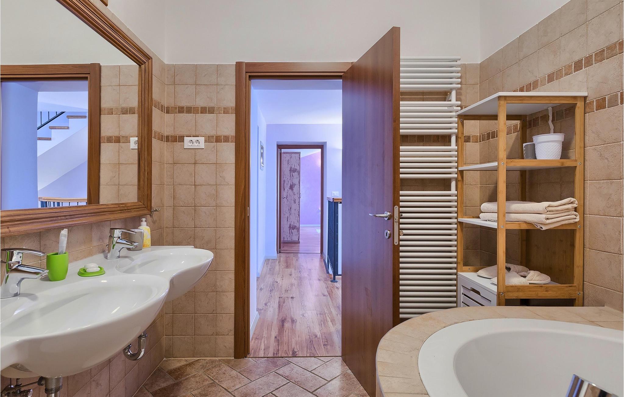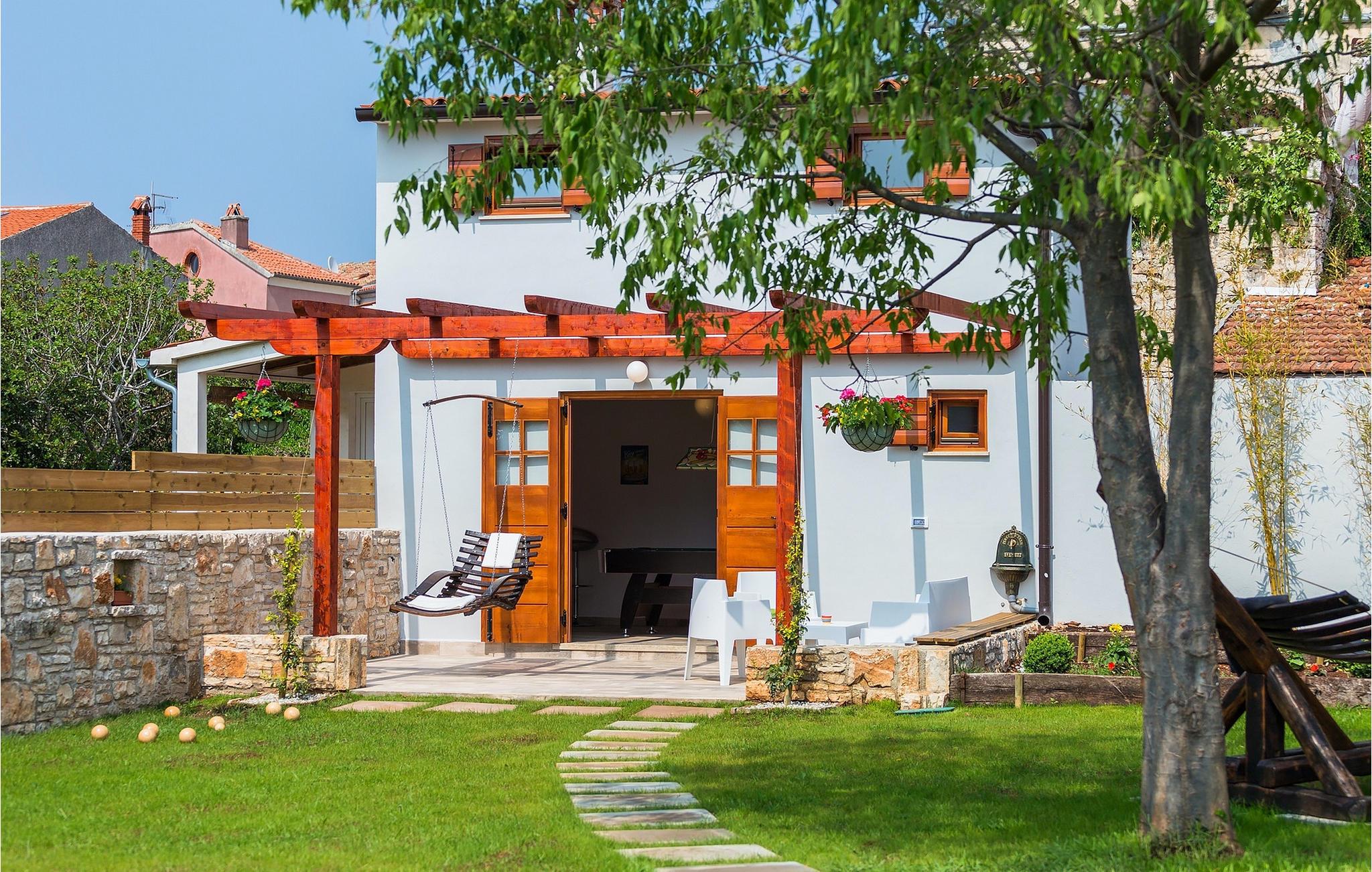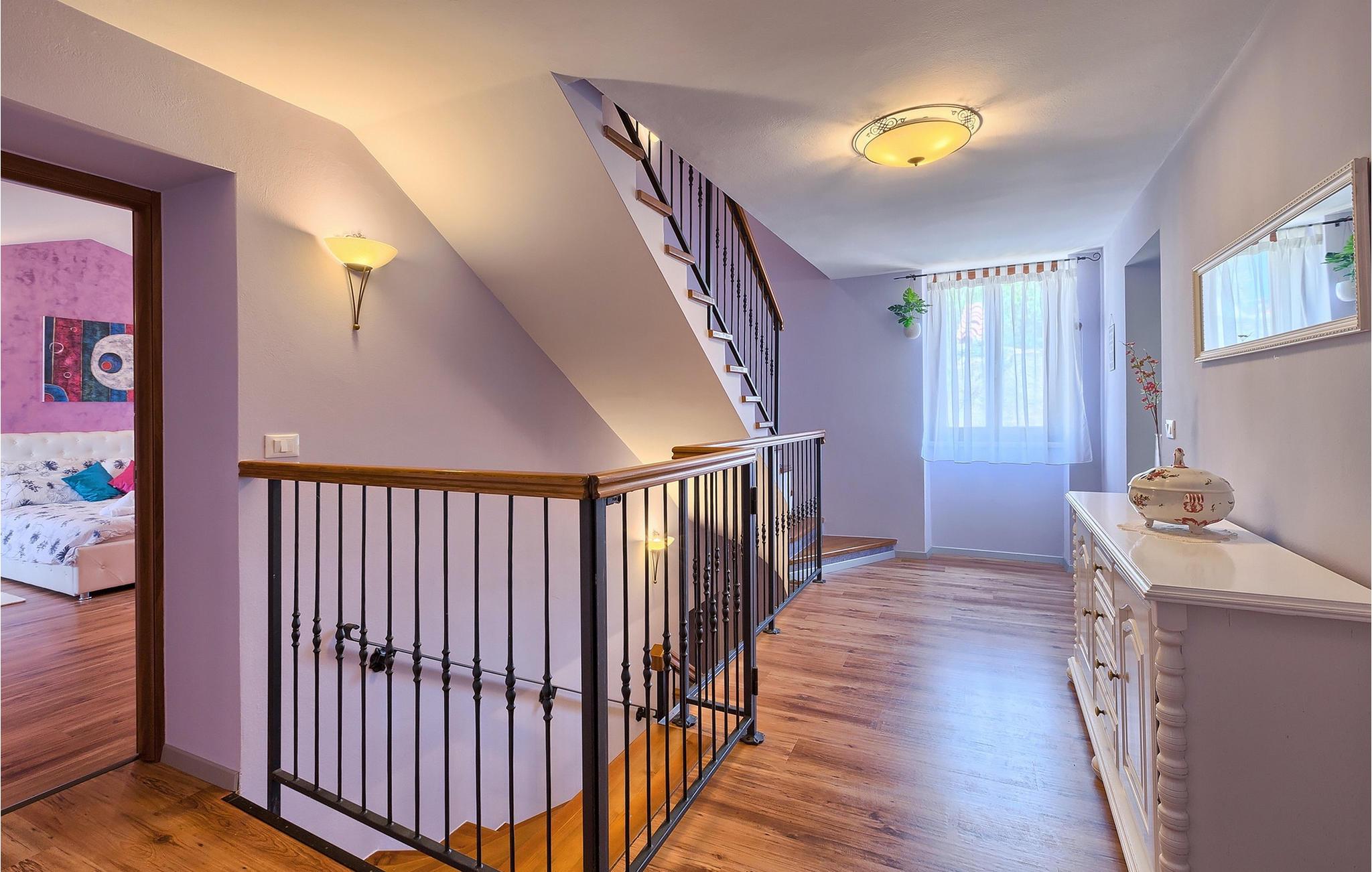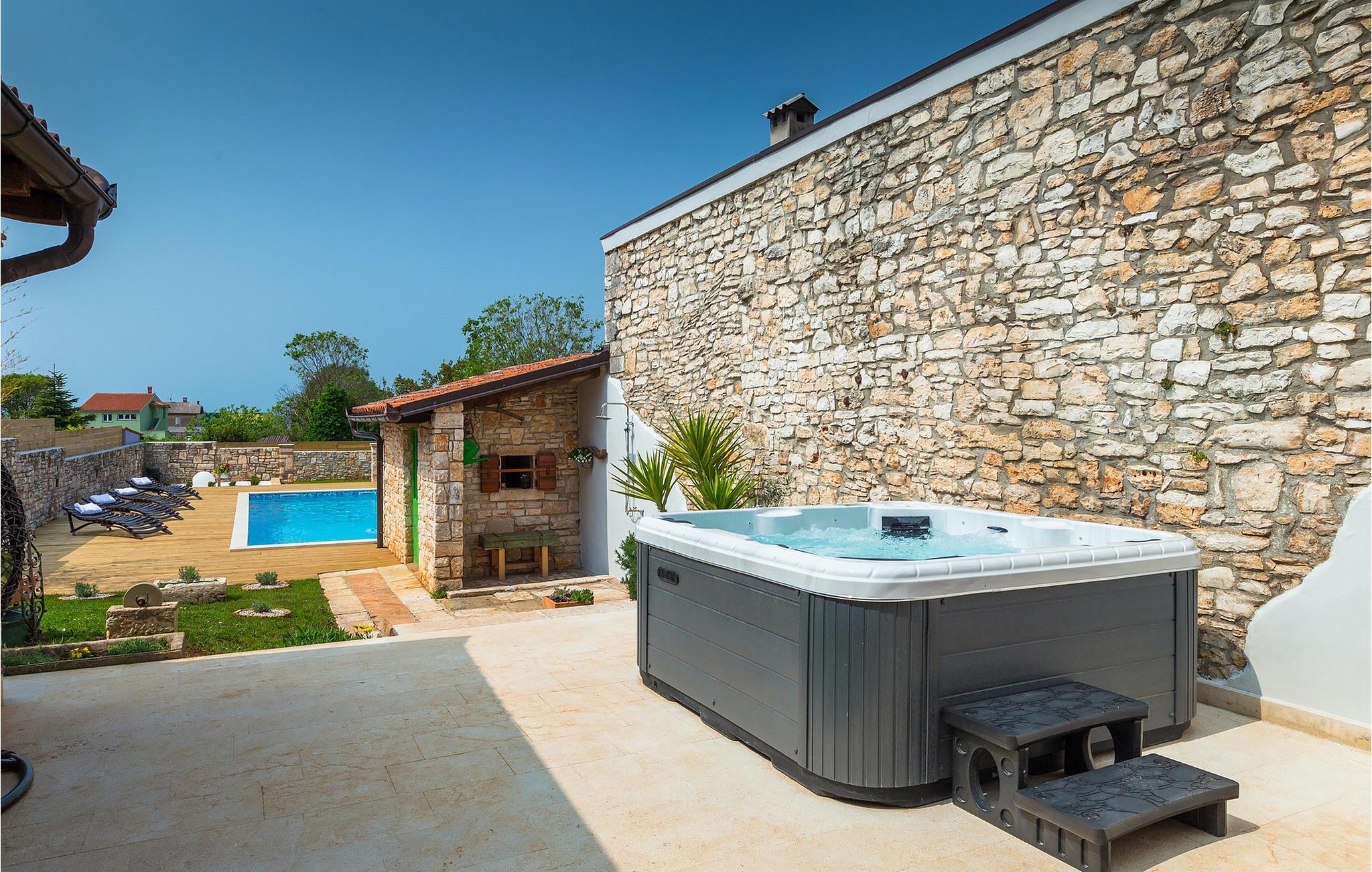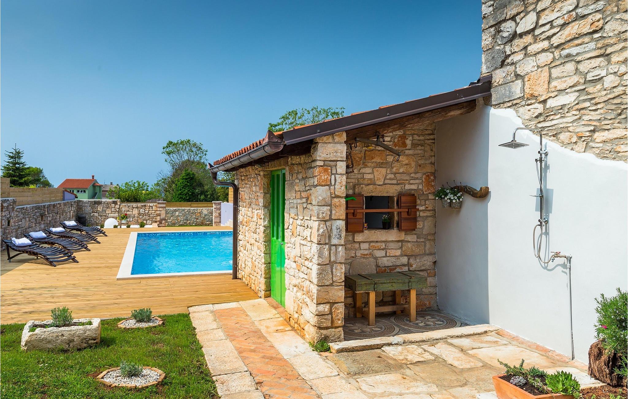 Den charmerende Villa San Rocco ligger i centrum af den lille historiske by Vodnjan, kun få minutter fra den største by i Istrien, Pula. Villaen er en perfekt blanding af rustikke og moderne elementer, der vil give dig en følelse af hjem. Med i alt 270 kvadratmeter boligareal byder den på plads til op til 8 personer og et kærligt møbleret interiør. Villa San Rocco er et restaureret traditionelt istrisk hus opdelt i 3 etager. Stueetagen består af et charmerende veludstyret køkken, en stor spiseplads med en kulgrill, en komfortabel stue og et badeværelse. Går du nedenunder finder du et spillerum med et pokerbord og en bordfodbold. Fire charmerende indrettede soveværelser har en dobbeltseng. 3 soveværelser er på 1. sal, et andet er på 2. sal. Villaens udendørs vil efterlade dig målløs. Foran villaen er der en stor terrasse med overdækket alfresco spiseplads og kulgrill, en udendørs jacuzzi og en indbydende privat pool. Lige rundt om hjørnet er en stor græsplæne, hvor du kan slappe af i hængekøjen, mens du læser din yndlingsbog. Derfra kan du også komme ind i villaen, hvor du finder et poolbord. Villaen er perfekt til familier, der søger en afslappende ferie fyldt med mange aktiviteter. Så gå ikke glip af denne mulighed og book Villa San Rocco. Villa San Rocco ligger i den lille charmerende by Vodnjan, kun en kort køretur fra den storslåede Pula. Smukke Vodnjan er en typisk middelalderby med interessant arkitektur. Hovedtorvet har en fantastisk barokkirke. Der er også flere restauranter og caféer. Udforsk de smalle gader med mange gallerier og atelierer. For nylig er Vodnjan blevet en af de vigtigste kulturbyer i Istrien, med begivenheder, der finder sted hver weekend. De nærmeste strande er Fazana og Medulin. Besøg også byen Pula, som er berømt for sit romerske amfiteater og mange andre kulturelle seværdigheder. Hvis du vil tilbringe din ferie i naturen, så sørg for at besøge Istriens bagland med dets mange cykel- og vandrestier eller tage en tur til Brijuni Nationalpark, som du kan nå med båd fra den lille fiskerlandsby Fazana. Sørg for at prøve traditionelle istriske retter såsom hjemmelavet pasta med trøfler, istrisk oksekød kaldet boskarin, ledsaget af et glas af det bedste Malvasia. Bemærk venligst, at denne ejendom kan acceptere ungdomsgrupper efter anmodning. Kontakt os venligst for at tjekke. En ungdomsgruppe på denne ejendom er en gruppe bestående af personer på 25 år eller derunder. Hvis du er en ungdomsgruppe [eller planlægger et polterabend], kan du blive bedt om at betale et ekstra depositum ved ankomst. Eventuelle beløb, der kræves for at reparere skader forårsaget af ejendommen af dig, vil blive trukket fra sikkerhedsdepositummet.