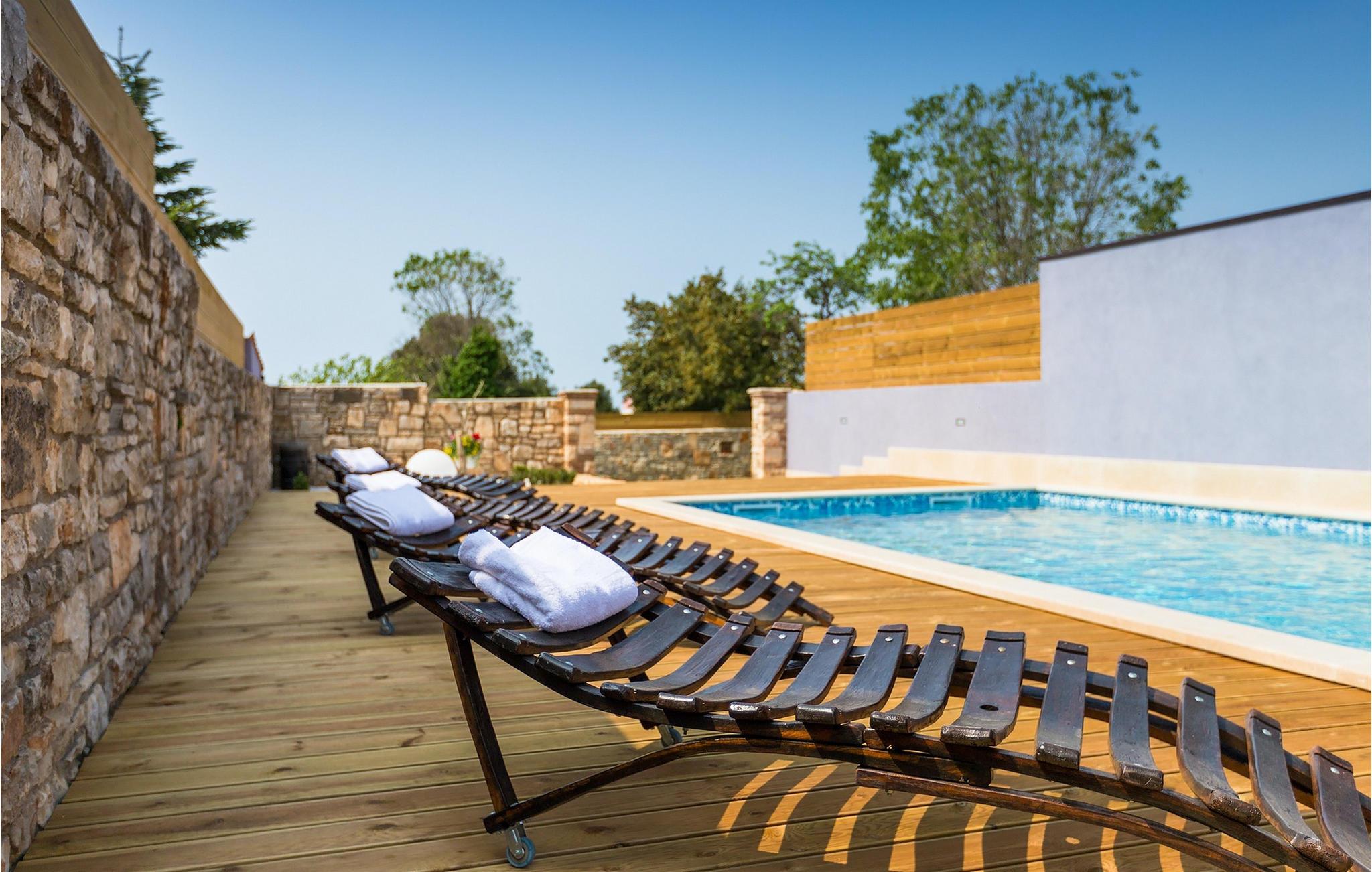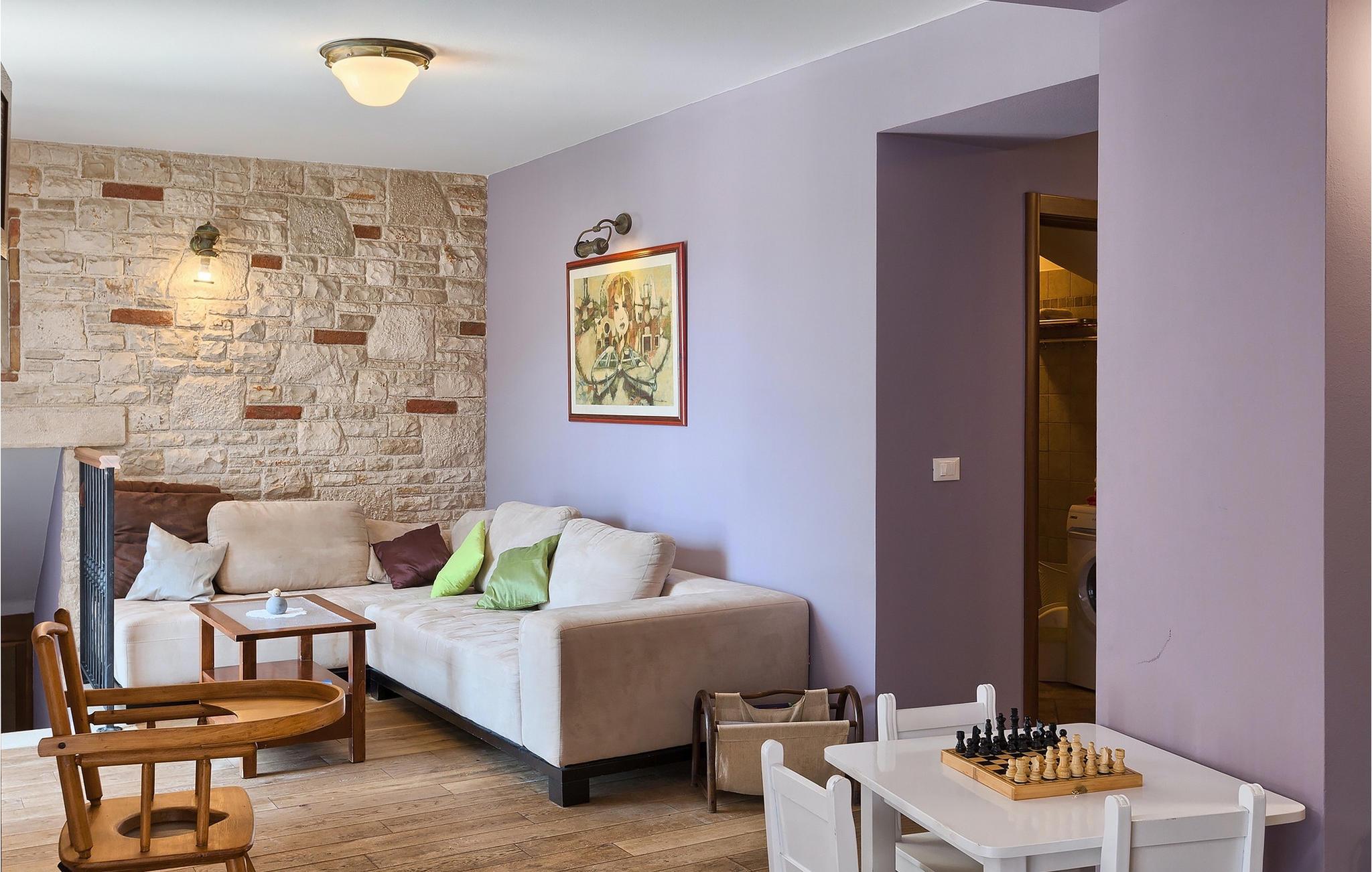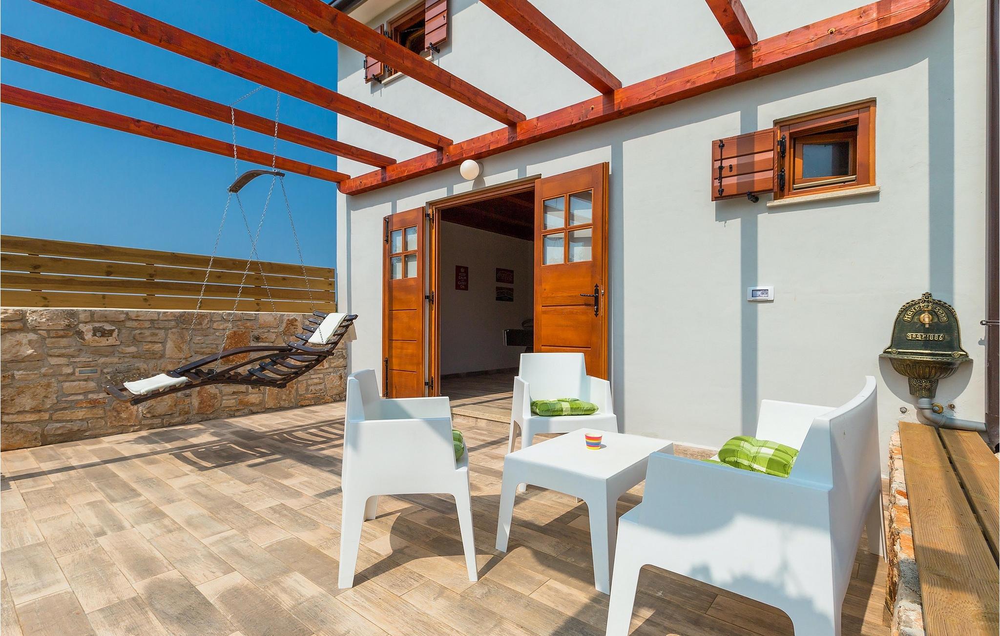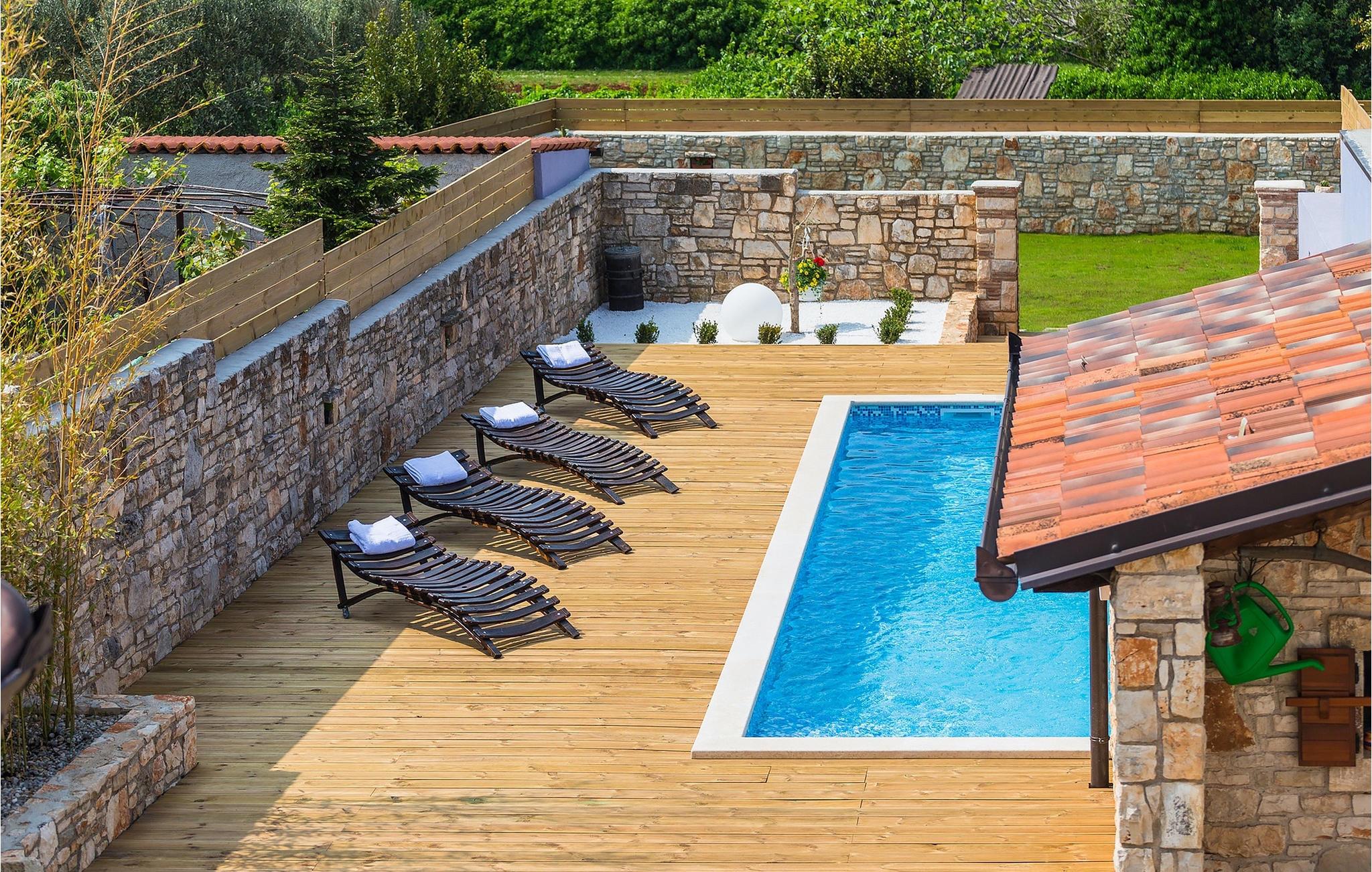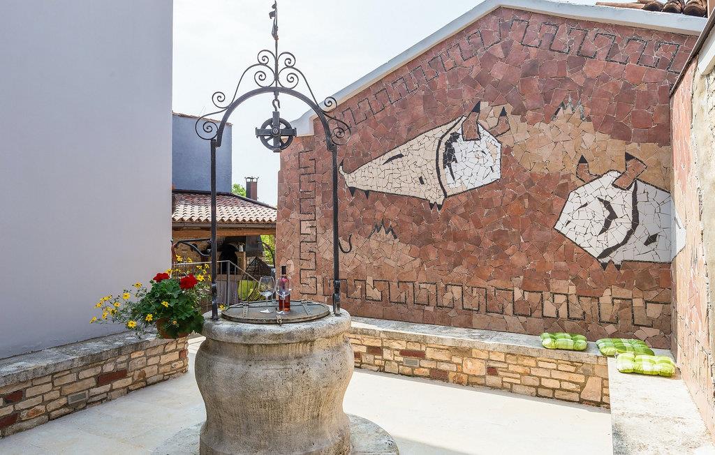 Den charmerende Villa San Rocco ligger i centrum af den lille historiske by Vodnjan, kun få minutter fra den største by i Istrien, Pula. Villaen er en perfekt blanding af rustikke og moderne elementer, der vil give dig en følelse af hjem. Med i alt 270 kvadratmeter boligareal byder den på plads til op til 8 personer og et kærligt møbleret interiør. Villa San Rocco er et restaureret traditionelt istrisk hus opdelt i 3 etager. Stueetagen består af et charmerende veludstyret køkken, en stor spiseplads med en kulgrill, en komfortabel stue og et badeværelse. Går du nedenunder finder du et spillerum med et pokerbord og en bordfodbold. Fire charmerende indrettede soveværelser har en dobbeltseng. 3 soveværelser er på 1. sal, et andet er på 2. sal. Villaens udendørs vil efterlade dig målløs. Foran villaen er der en stor terrasse med overdækket alfresco spiseplads og kulgrill, en udendørs jacuzzi og en indbydende privat pool. Lige rundt om hjørnet er en stor græsplæne, hvor du kan slappe af i hængekøjen, mens du læser din yndlingsbog. Derfra kan du også komme ind i villaen, hvor du finder et poolbord. Villaen er perfekt til familier, der søger en afslappende ferie fyldt med mange aktiviteter. Så gå ikke glip af denne mulighed og book Villa San Rocco. Villa San Rocco ligger i den lille charmerende by Vodnjan, kun en kort køretur fra den storslåede Pula. Smukke Vodnjan er en typisk middelalderby med interessant arkitektur. Hovedtorvet har en fantastisk barokkirke. Der er også flere restauranter og caféer. Udforsk de smalle gader med mange gallerier og atelierer. For nylig er Vodnjan blevet en af de vigtigste kulturbyer i Istrien, med begivenheder, der finder sted hver weekend. De nærmeste strande er Fazana og Medulin. Besøg også byen Pula, som er berømt for sit romerske amfiteater og mange andre kulturelle seværdigheder. Hvis du vil tilbringe din ferie i naturen, så sørg for at besøge Istriens bagland med dets mange cykel- og vandrestier eller tage en tur til Brijuni Nationalpark, som du kan nå med båd fra den lille fiskerlandsby Fazana. Sørg for at prøve traditionelle istriske retter såsom hjemmelavet pasta med trøfler, istrisk oksekød kaldet boskarin, ledsaget af et glas af det bedste Malvasia. Bemærk venligst, at denne ejendom kan acceptere ungdomsgrupper efter anmodning. Kontakt os venligst for at tjekke. En ungdomsgruppe på denne ejendom er en gruppe bestående af personer på 25 år eller derunder. Hvis du er en ungdomsgruppe [eller planlægger et polterabend], kan du blive bedt om at betale et ekstra depositum ved ankomst. Eventuelle beløb, der kræves for at reparere skader forårsaget af ejendommen af dig, vil blive trukket fra sikkerhedsdepositummet.