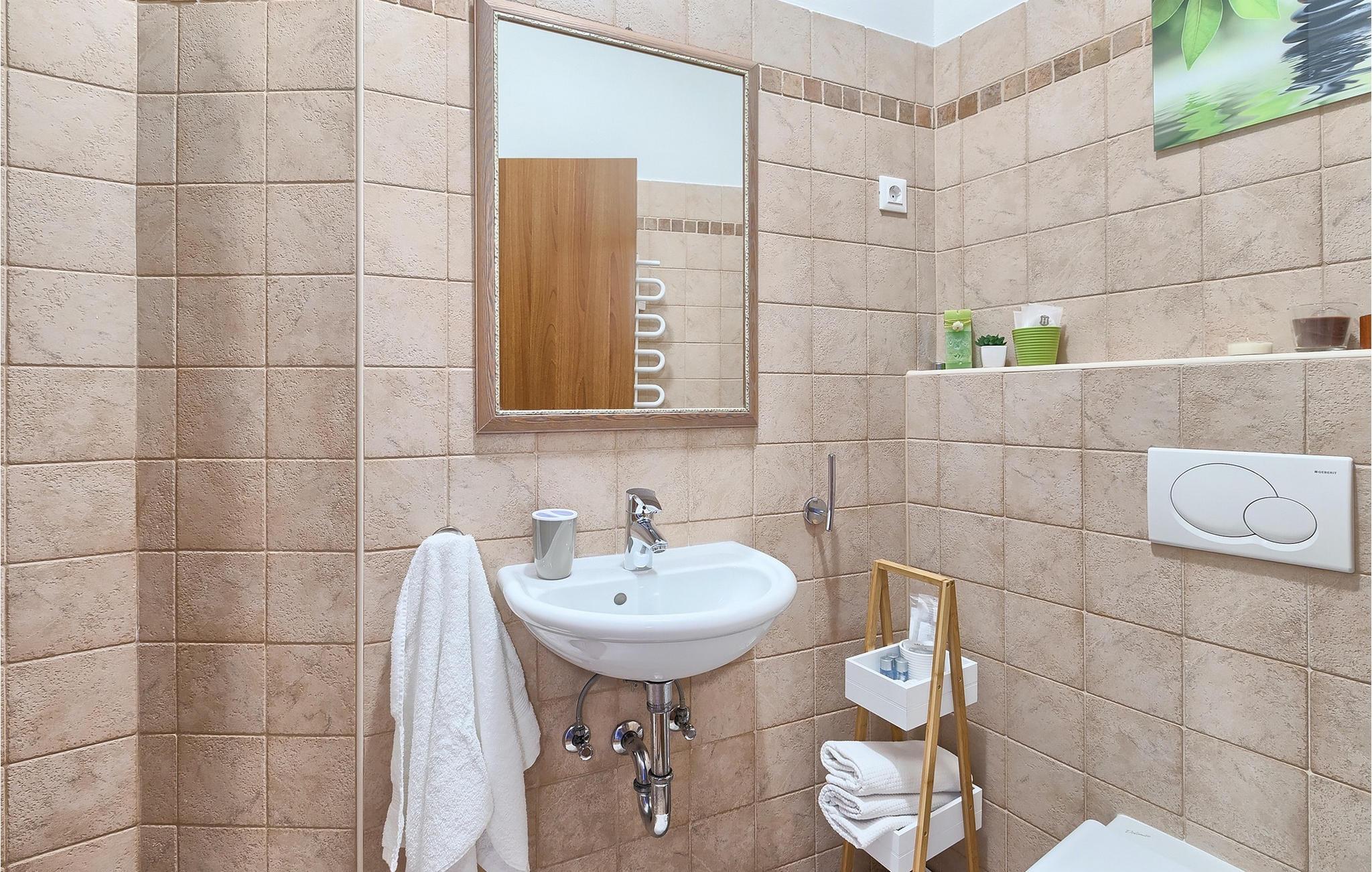 Badeværelse (nr. 1) - WC. Varmt og koldt vand. Bruser