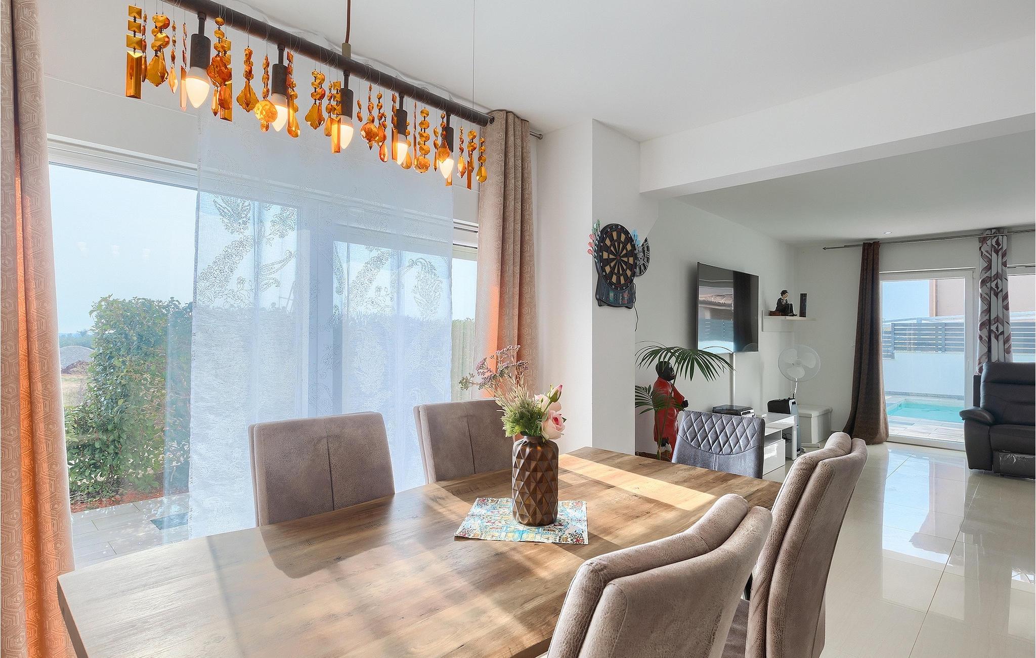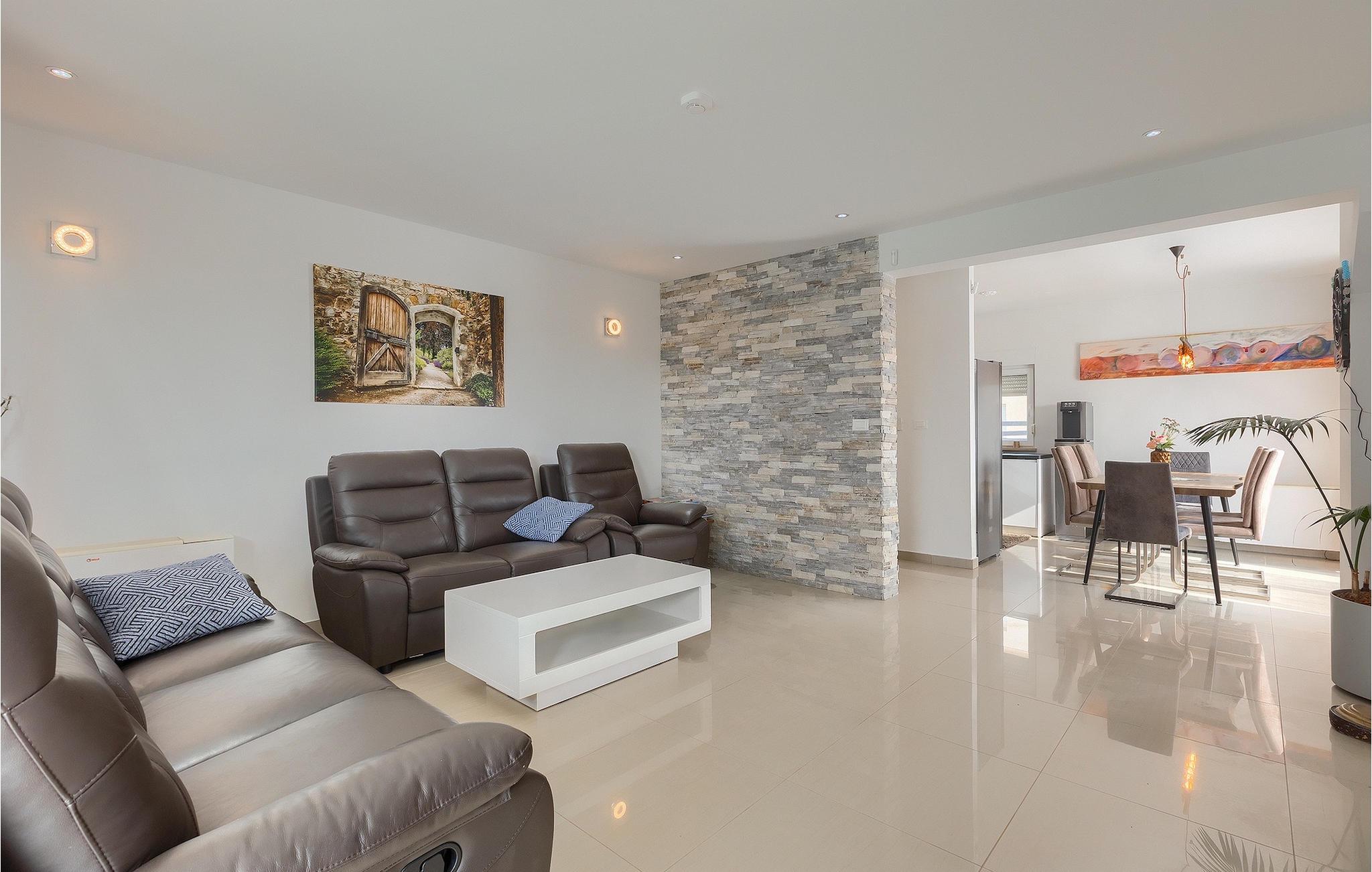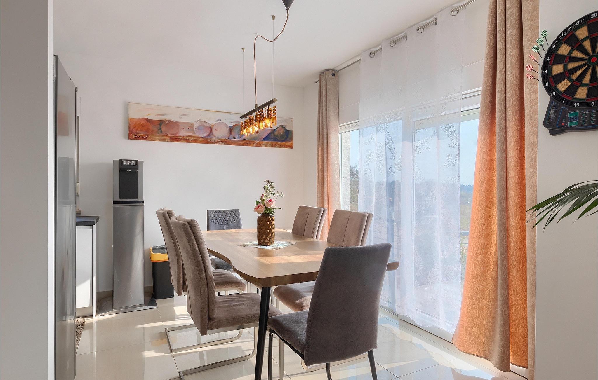 Hvis du leder efter en villa, hvor du kan tilbringe en uforglemmelig og afslappende ferie, er dette stedet for dig! Udover en fantastisk beliggenhed kan denne charmerende Villa Gusto rumme op til 8 personer i 4 soveværelser. Poolen med hydromassage vil tilbyde din krop velfortjent afslapning og forfriskning på varme sommerdage. Efter svømning kan du slappe af på liggestolene, som er placeret rundt om poolen. Der er også en grill på udendørsområdet for at tilberede lækre måltider til dine kære. Til de yngste gæster byder villaen på en trampolin og en gynge. I villaens stueetage er der en stue med udgang til terrassen, en spisestue og et fuldt udstyret køkken. På samme etage er der soveværelse og badeværelse. Går du op ad trappen, kommer du til tre komfortable soveværelser samt 2 badeværelser. Soveværelserne ovenpå har egen udgang til altan. Det perfekte sted at få din morgenkaffe! Huset ligger i en bygd, der er under opførelse.Villa Gusto ligger i Vodnjan. Vodnjan er en gammel by med meget at opdage, og alt nødvendigt er i gåafstand fra villaen. Kun en kort køretur væk ligger Istriens største perle - byen Pula. Denne historiske by er kendt for sit berømte amfiteater fra det 1. århundrede. Amfiteatret ligger i byens centrum og er et vartegn, som du bestemt bør udforske. Her afholdes også mange begivenheder, lige fra koncerter og film til sportsbegivenheder. Udover kulturelle og historiske skønheder tilbyder Istrien et unikt gastronomisk tilbud. Hjemmelavet istrisk prosciutto, vin og istrisk pasta er blot nogle af de mange gastronomiske lækkerier, Istrien har at byde på for en ægte middelhavsatmosfære af lokalt køkken. Uspoleret natur, smukke strande og middelhavsklima gør dette sted til en meget attraktiv destination for havelskere.