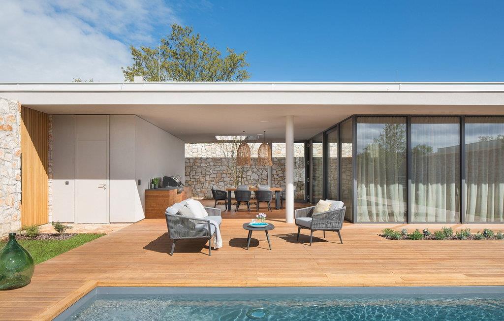 I kan træde direkte fra stuen ud på terrassen om morgenen og hoppe i poolen. Og ellers kan I bare slappe af i en liggestol og nyde freden og roen.