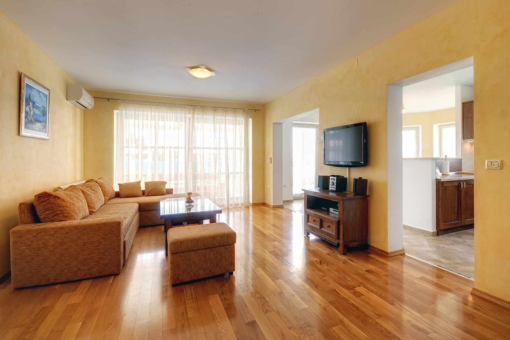 Midt i et roligt miljø vil du ikke blive afskåret helt i to-etagers villa i Golubovo - internetadgang er til rådighed. Så nyd ved poolen på komfortable lounge stole under parasol, spil en lille volleyball eller hold dig i form med at spille bordtennis - i hvert fald vil du ikke gå glip af noget under dit ophold i denne smukke villa. Minimalistisk indretning, men varmt og komfortabelt interiør, samt rummelig udendørs areal, vil tilfredsstille alle dine behov. Hovedindgangen til villaen har en mursten asfalteret sti og en rummelig parkeringsplads.