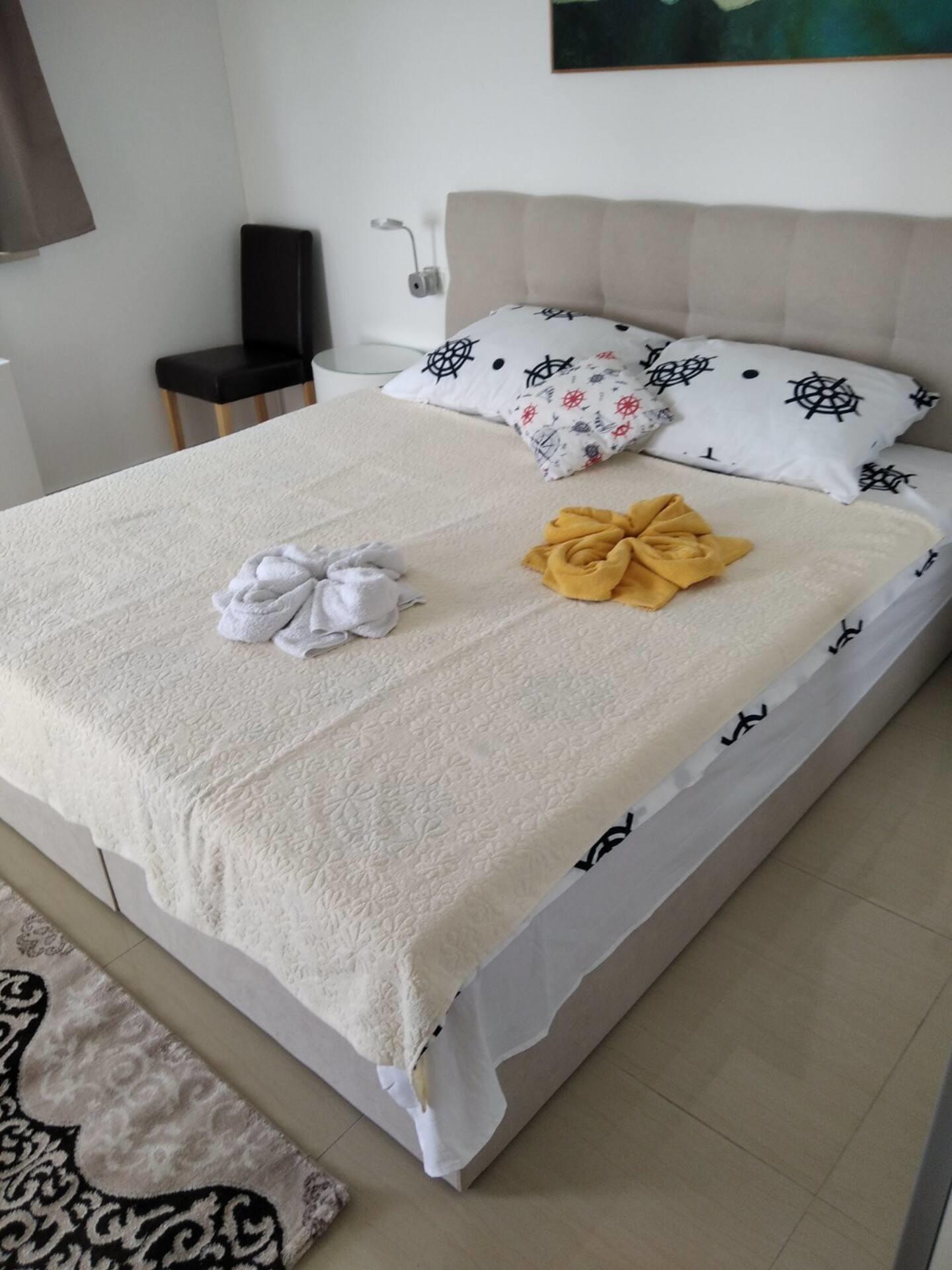 1.OG:3 Schlafzimmer,2 davon mit Flat TV,2xWC,1x mit Dusche und 1x mit der Whirlpool Badewanne.Grosse Terasse mit Meerblick.Blick aufs Meer,Brioni Inseln,Fazana und Pula.